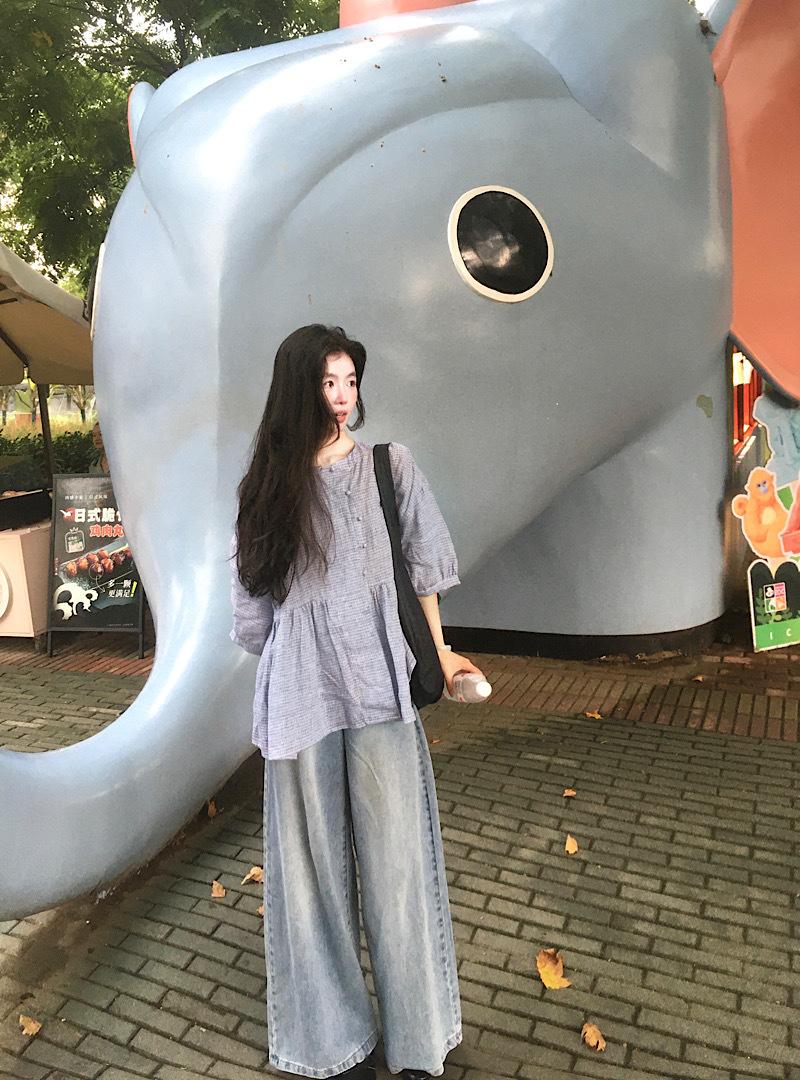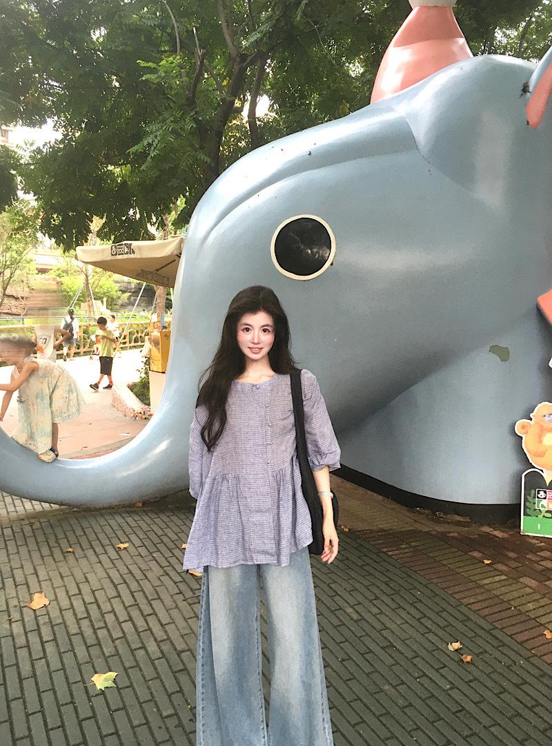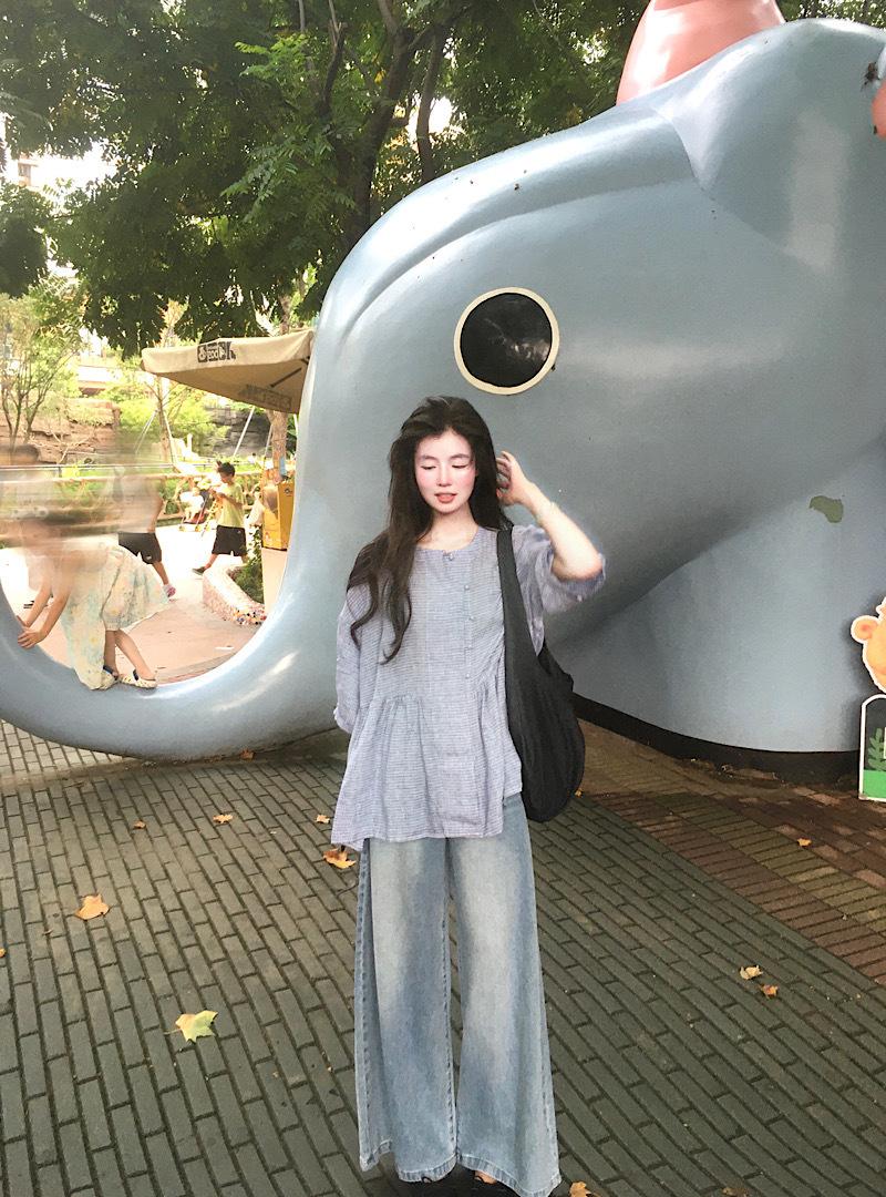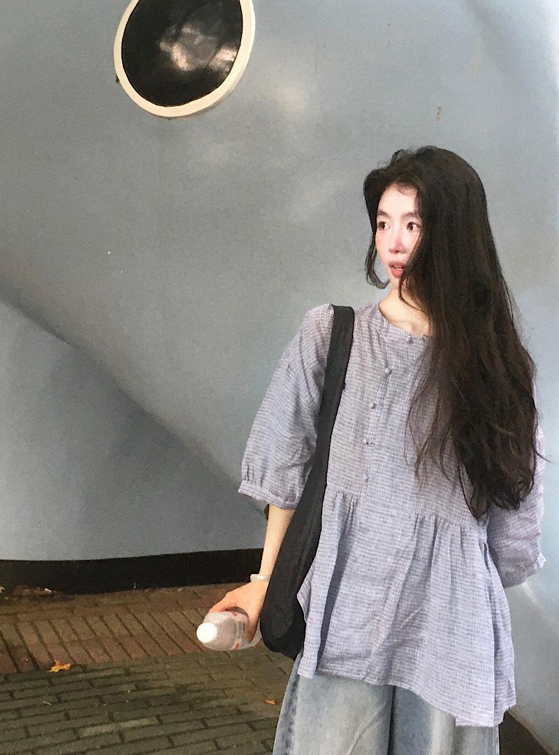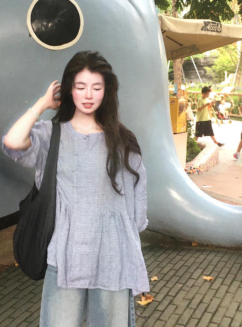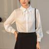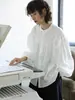 2025 Otoño Nuevo Sentido de Diseño Coreano Versátil Holgado Solapa Sencilla Manga Linterna Cuello Redondo Camisa Manga Larga Mujer