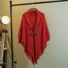 Otoño e invierno capa irregular chal para mujer comercio exterior Europa y Estados Unidos nuevo cuadros borla cuello alto suéter de punto