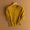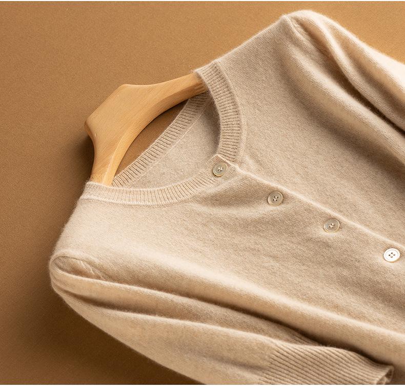 Cárdigan de Cachemira 100% Pura para Mujer de Cuello Redondo Color Sólido Holgado Casual Estilo Suave Simple Otoño e Invierno Nuevo Suéter Tejido