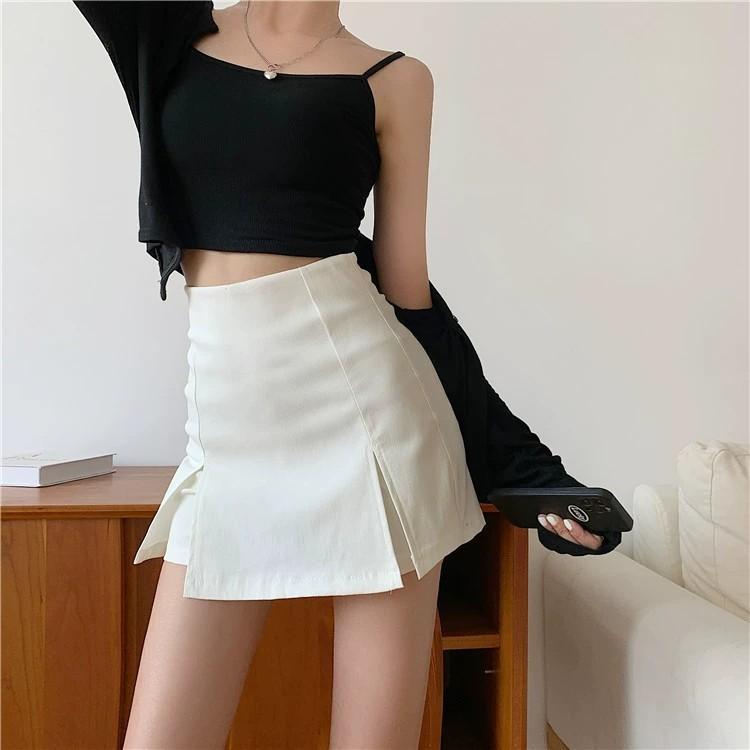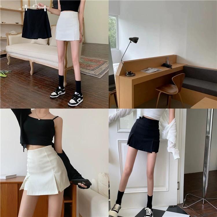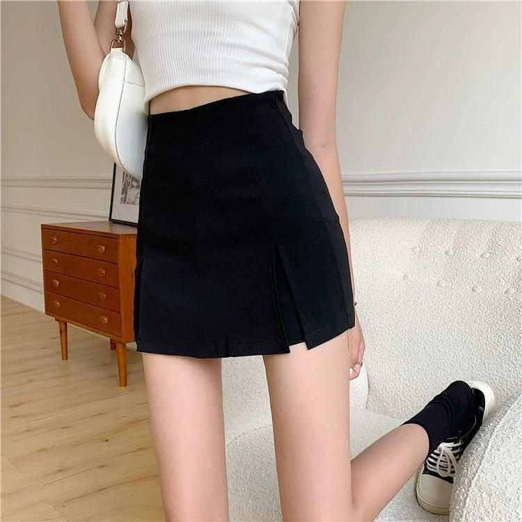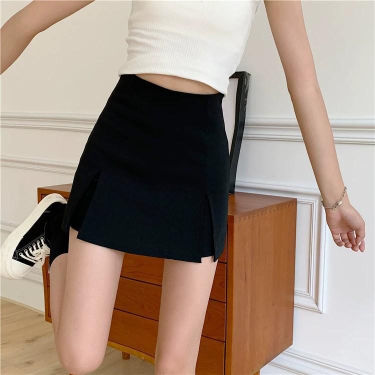 Falda Midi Negra con Abertura para Mujer Verano Cintura Alta Línea A Falda Corta Pantalones 2025 Nuevo Petite Bodycon Falda de Un Paso
