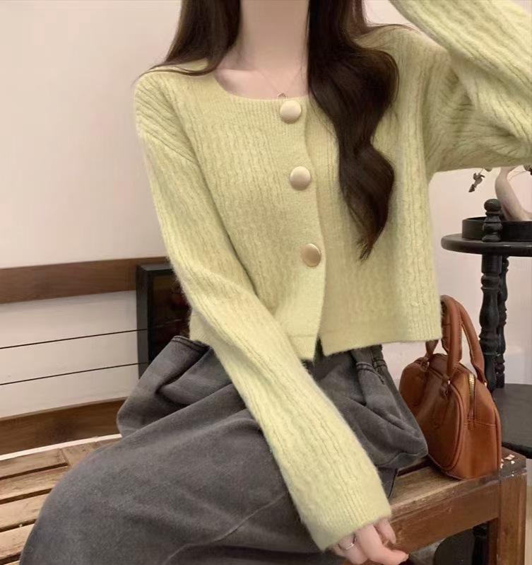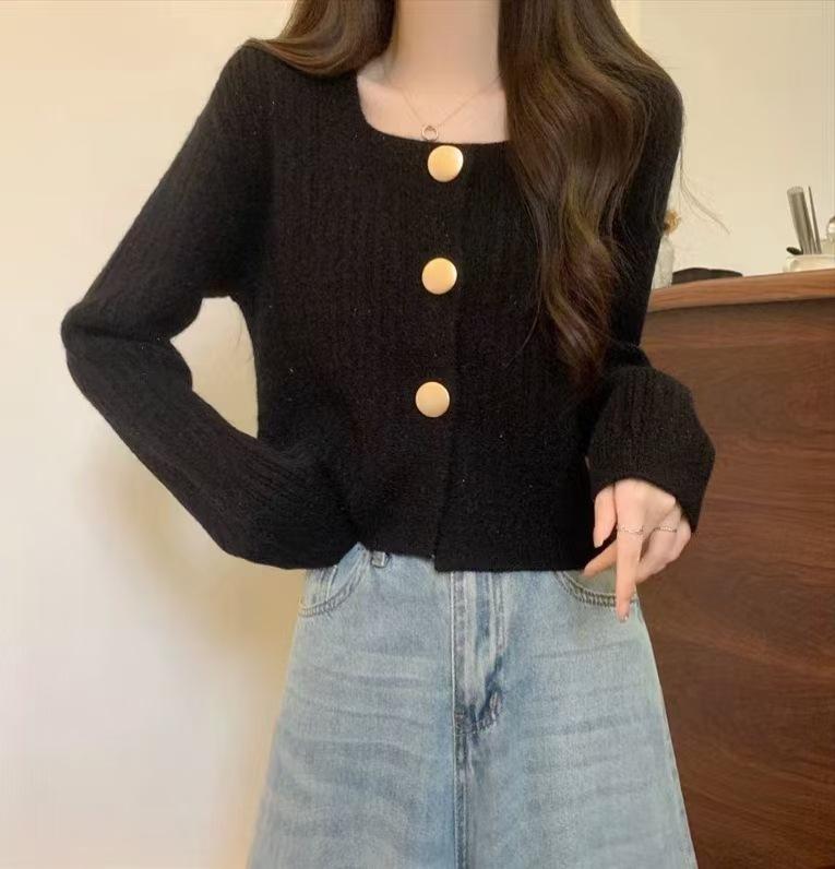 Suéter Suéter Tejido Base Top Interior Otoño Temprano Invierno 2024 Nuevo Cárdigan para Mujer Ajustado Adelgazante Corto Primavera