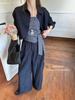 Moda Otoño 2025 Versátil Chaqueta Corta Retro con Chaleco a Cuadros + Pantalones de Pierna Ancha Conjunto de Tres Piezas de Tendencia