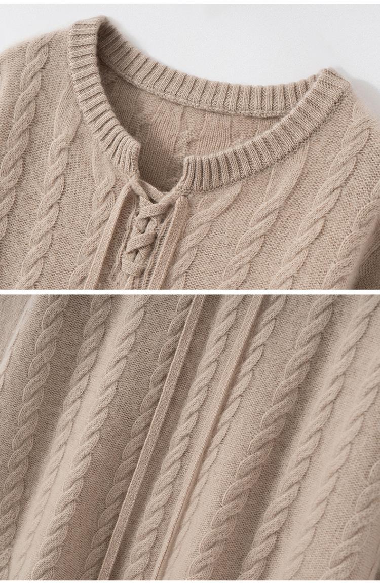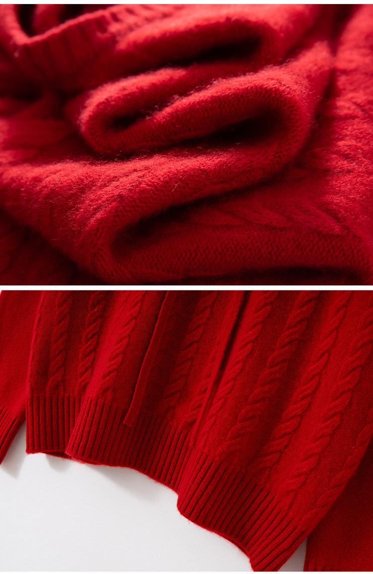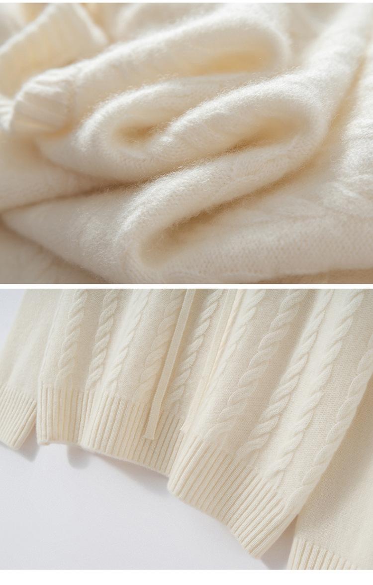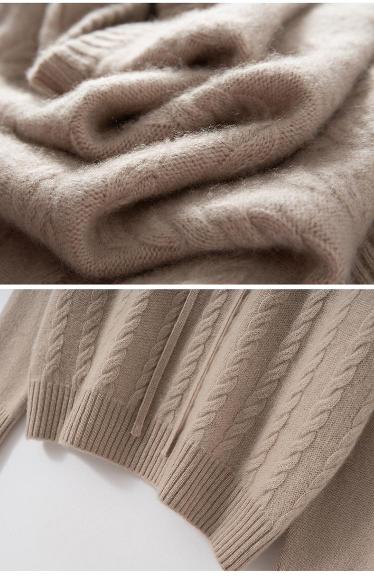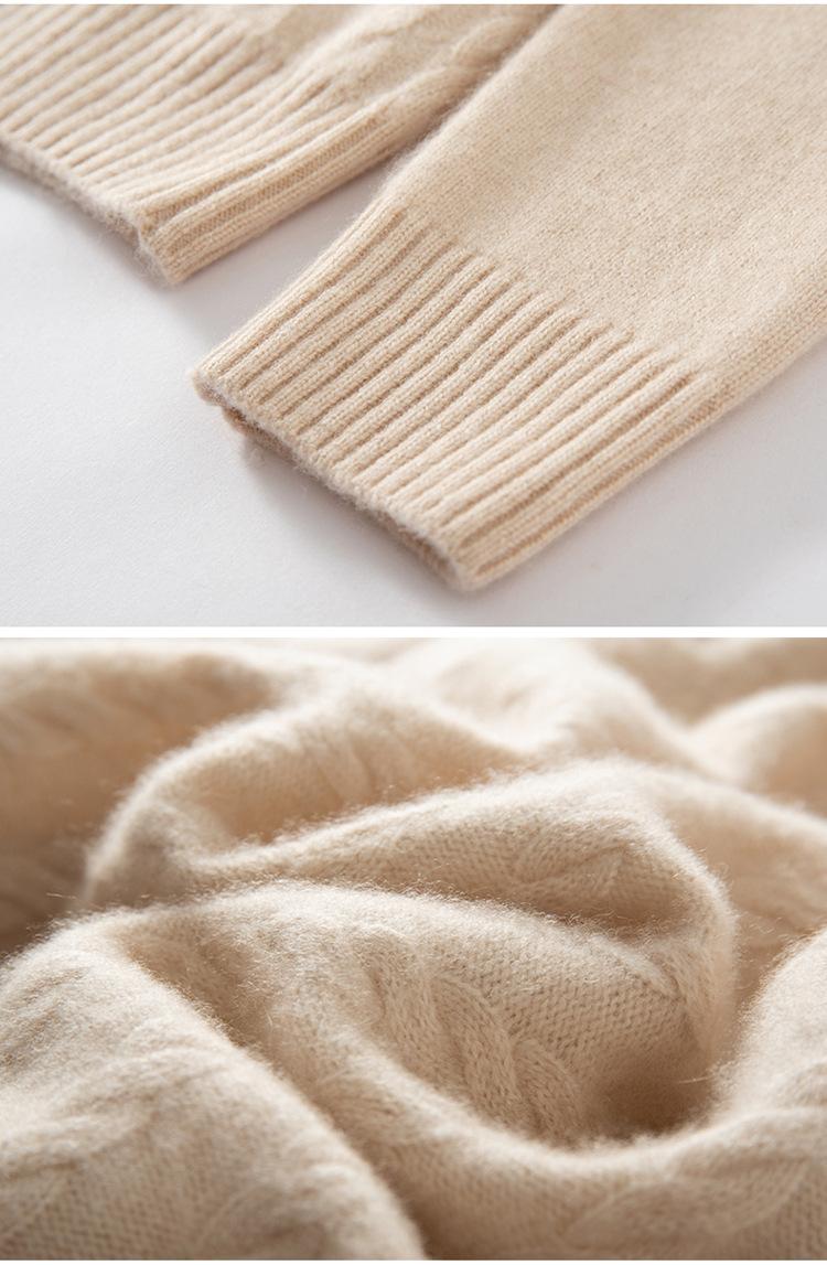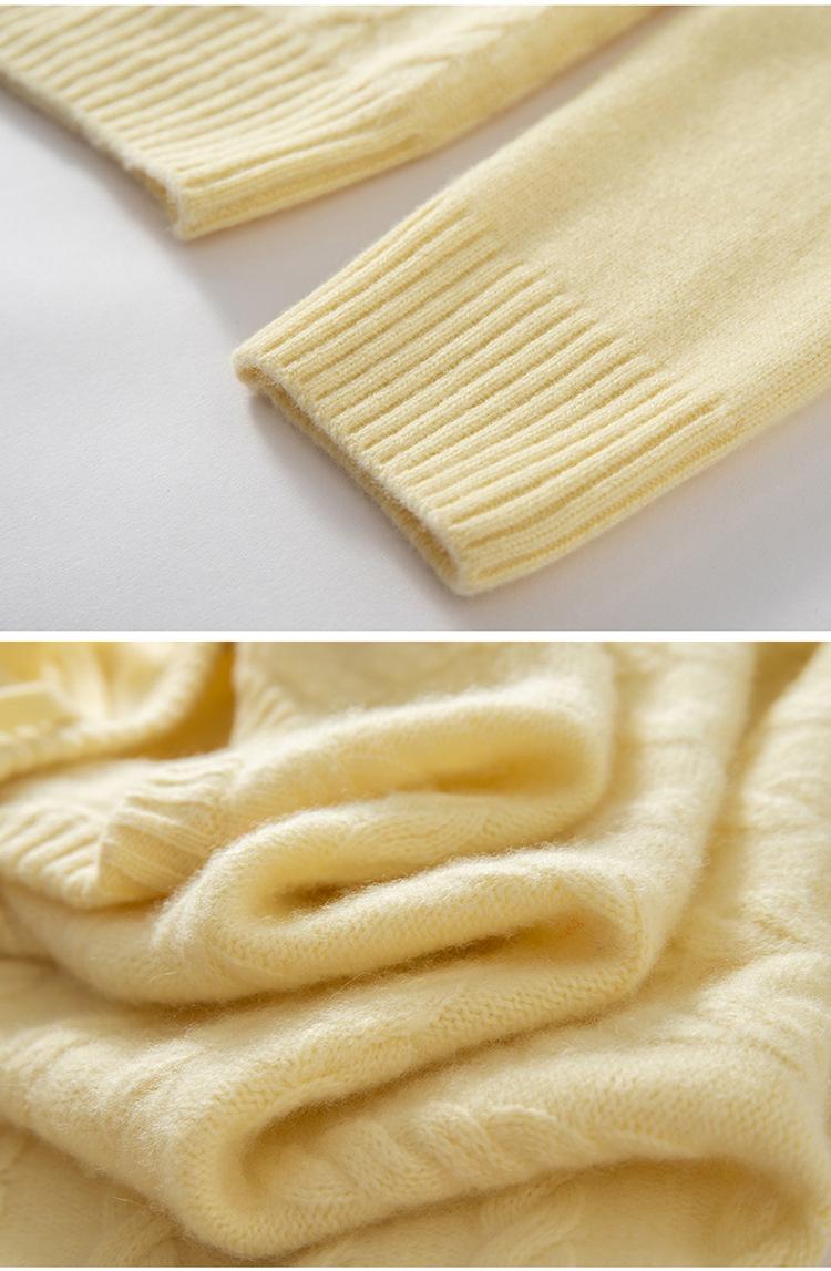 Nueva Capa Base de Punto de Cachemira Otoño/Invierno Suave Cómoda Holgada Adelgazante Cuello Cisne Anudable Tejido de Cable para Mujer