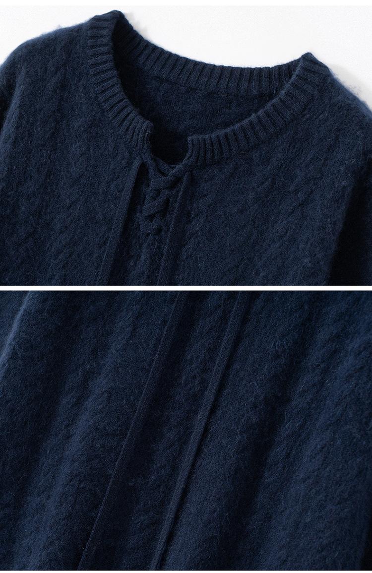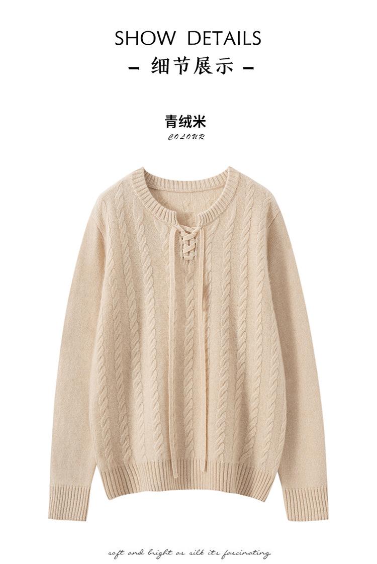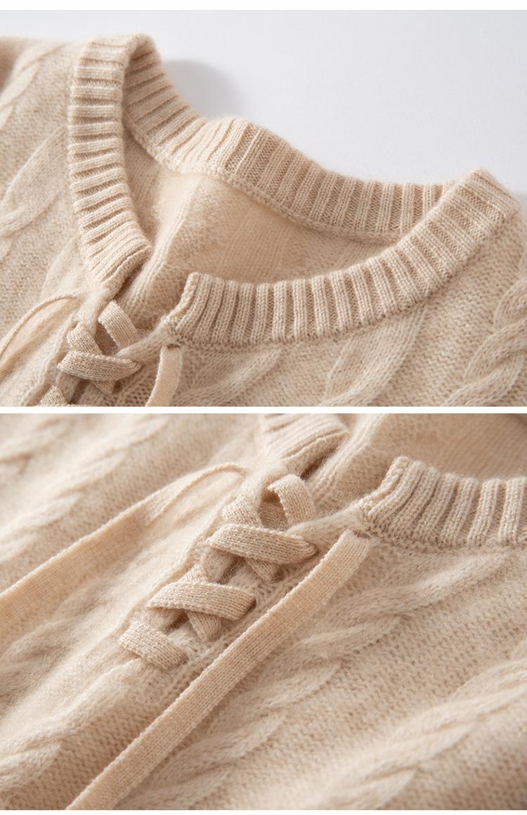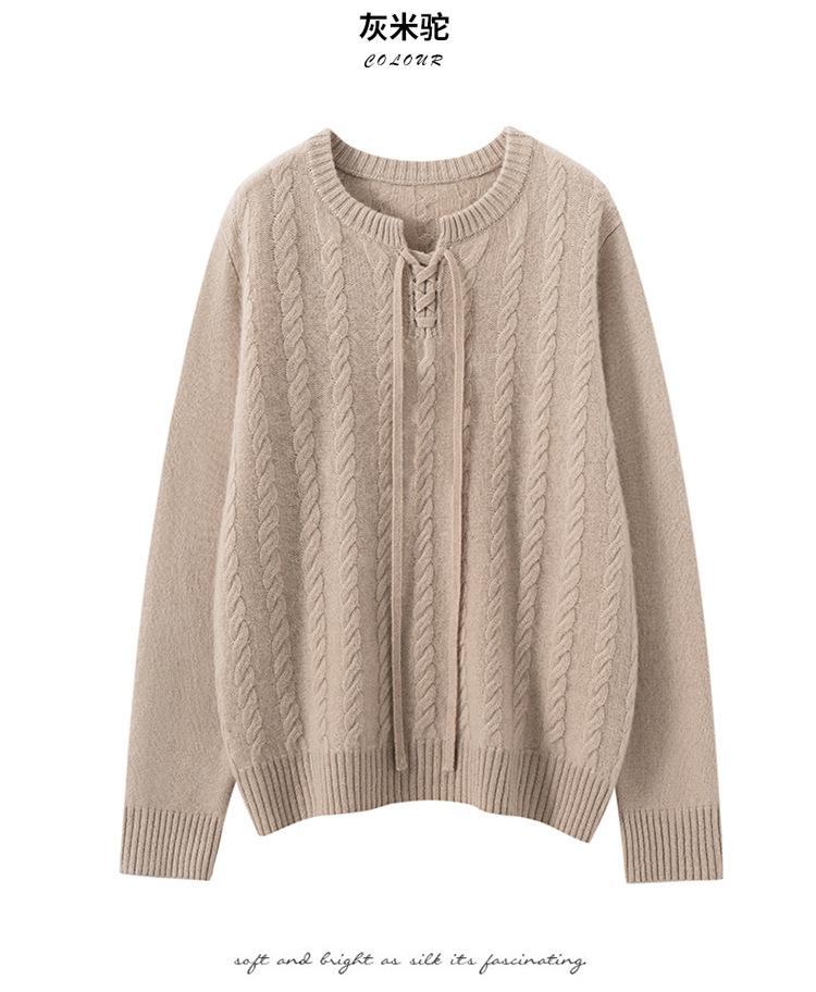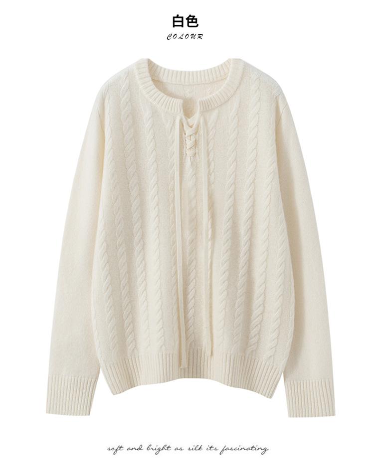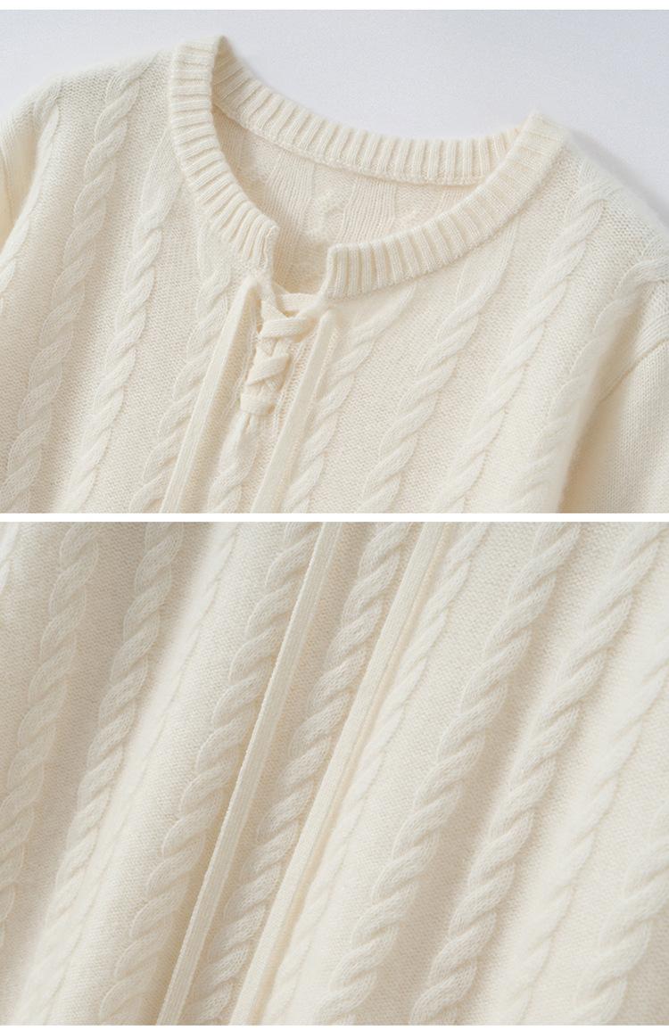 Nueva Capa Base de Punto de Cachemira Otoño/Invierno Suave Cómoda Holgada Adelgazante Cuello Cisne Anudable Tejido de Cable para Mujer