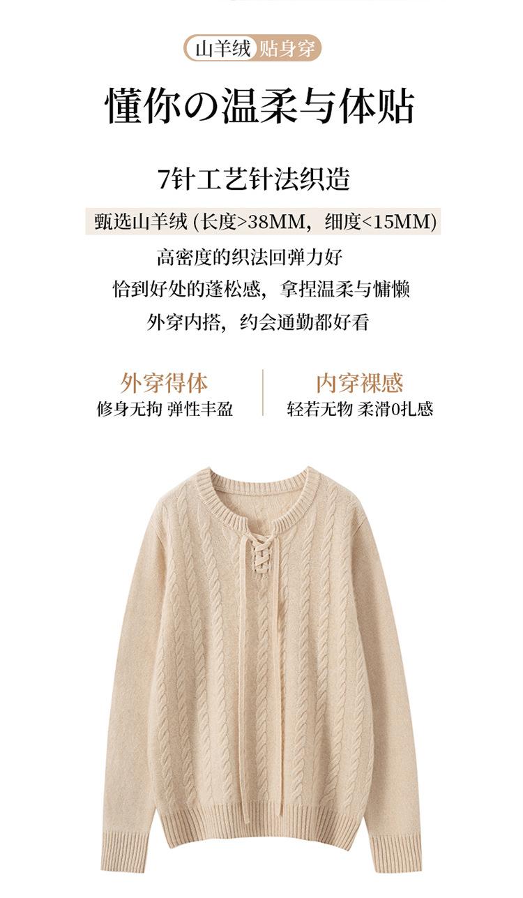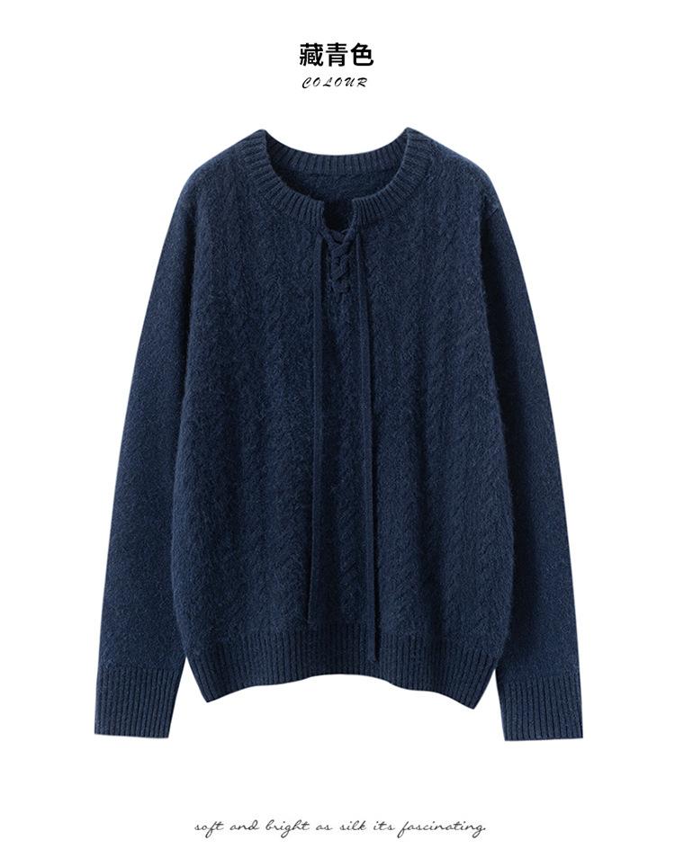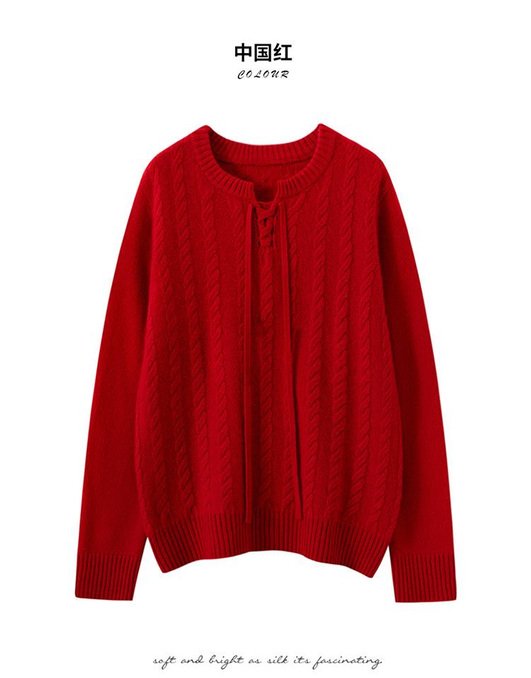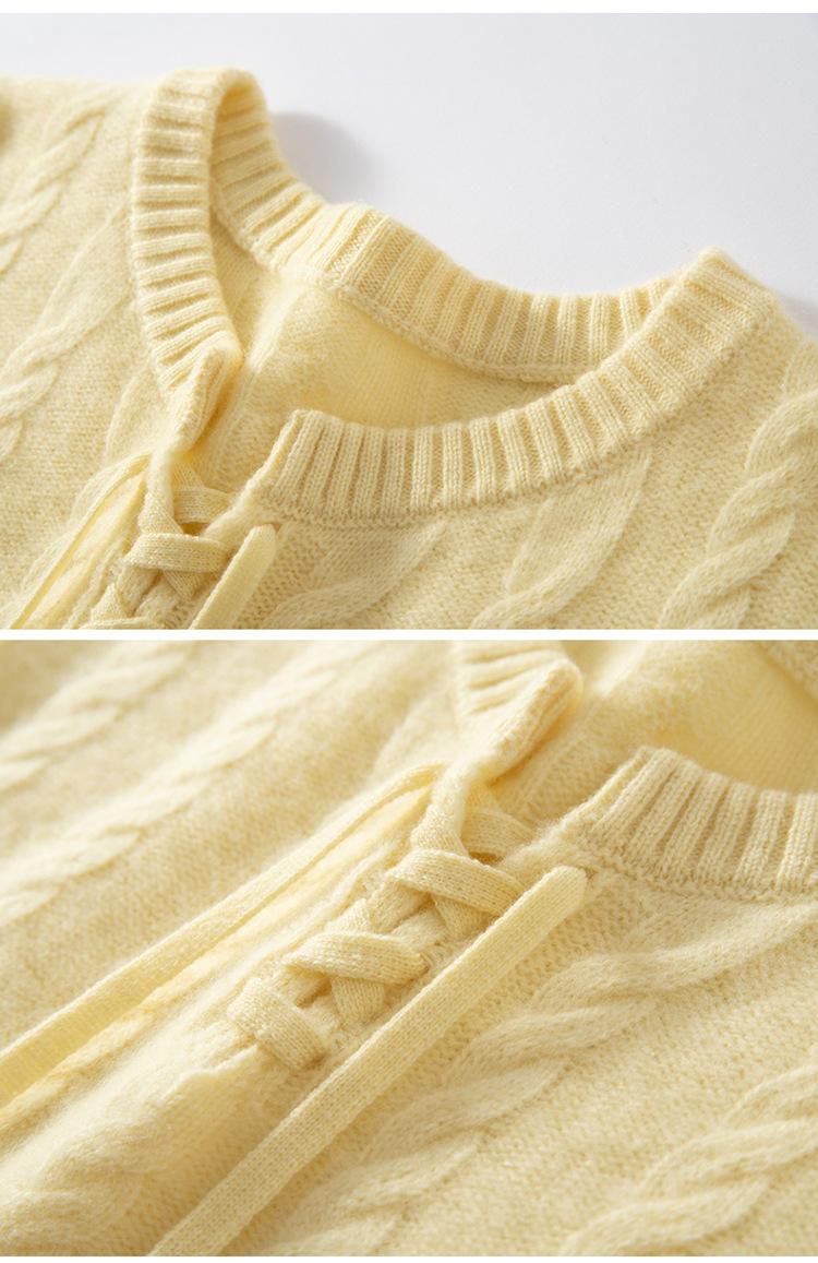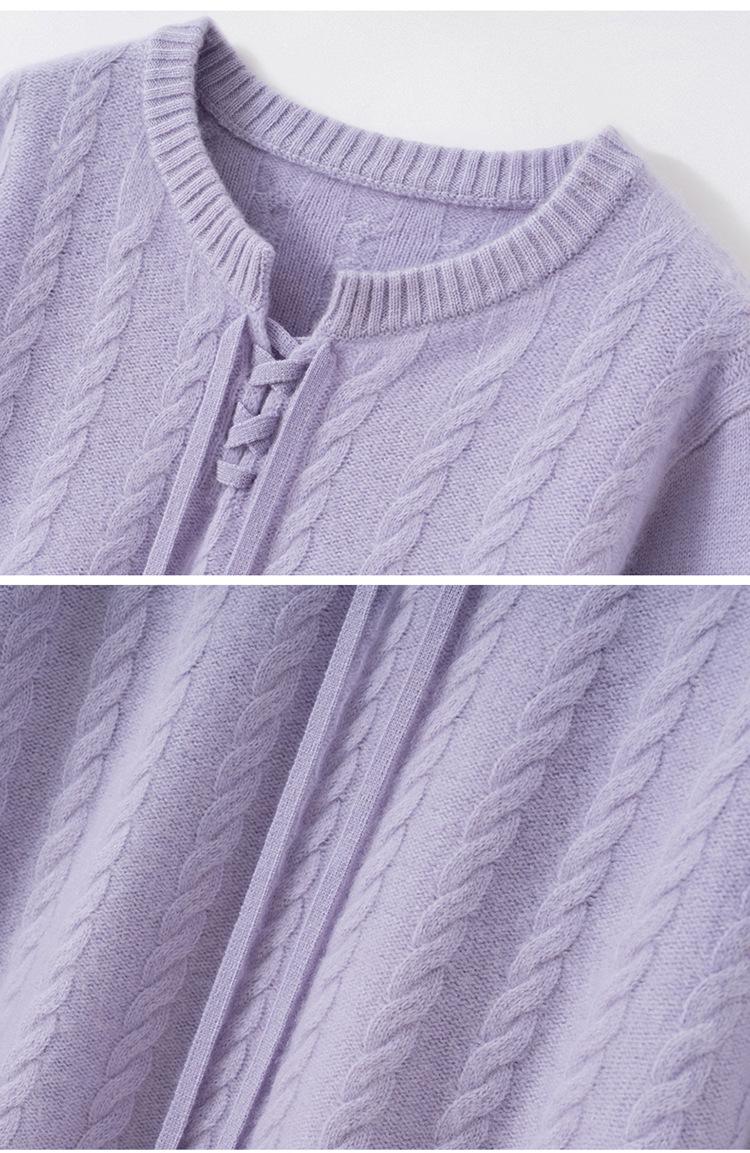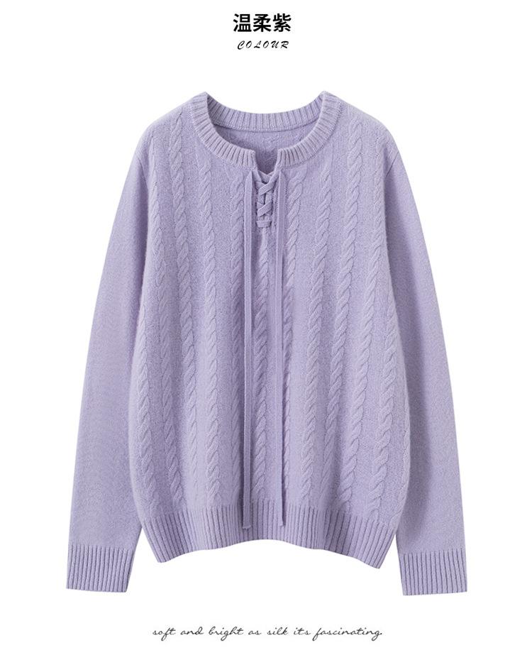 Nueva Capa Base de Punto de Cachemira Otoño/Invierno Suave Cómoda Holgada Adelgazante Cuello Cisne Anudable Tejido de Cable para Mujer