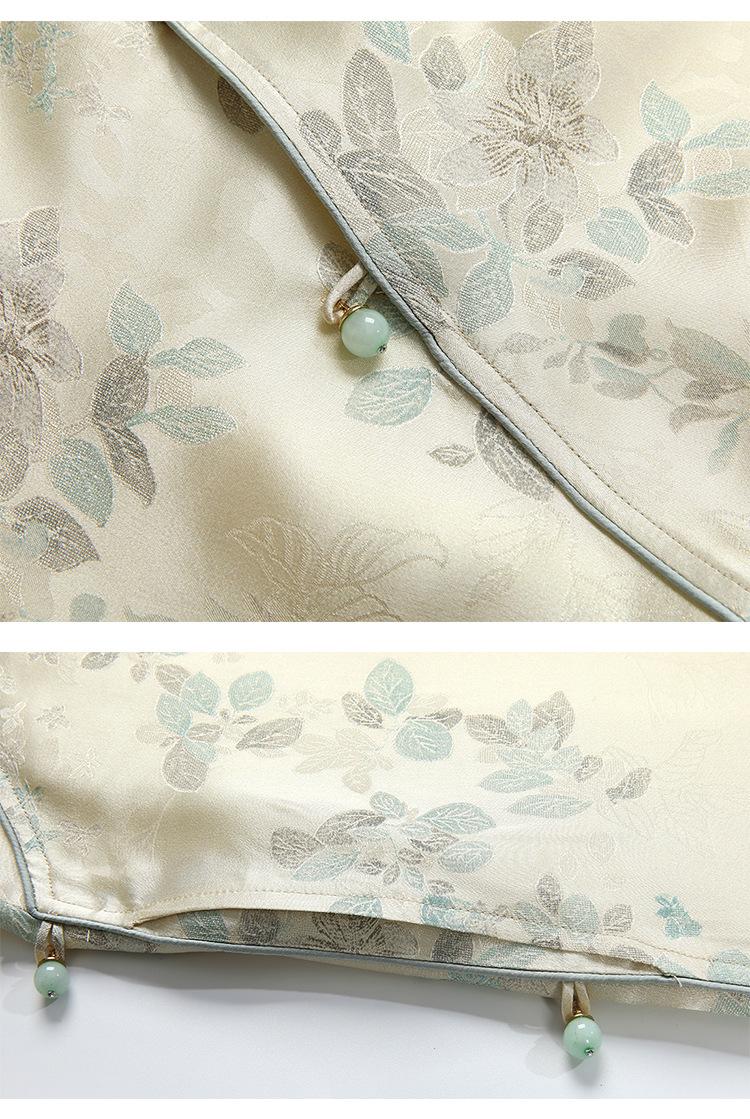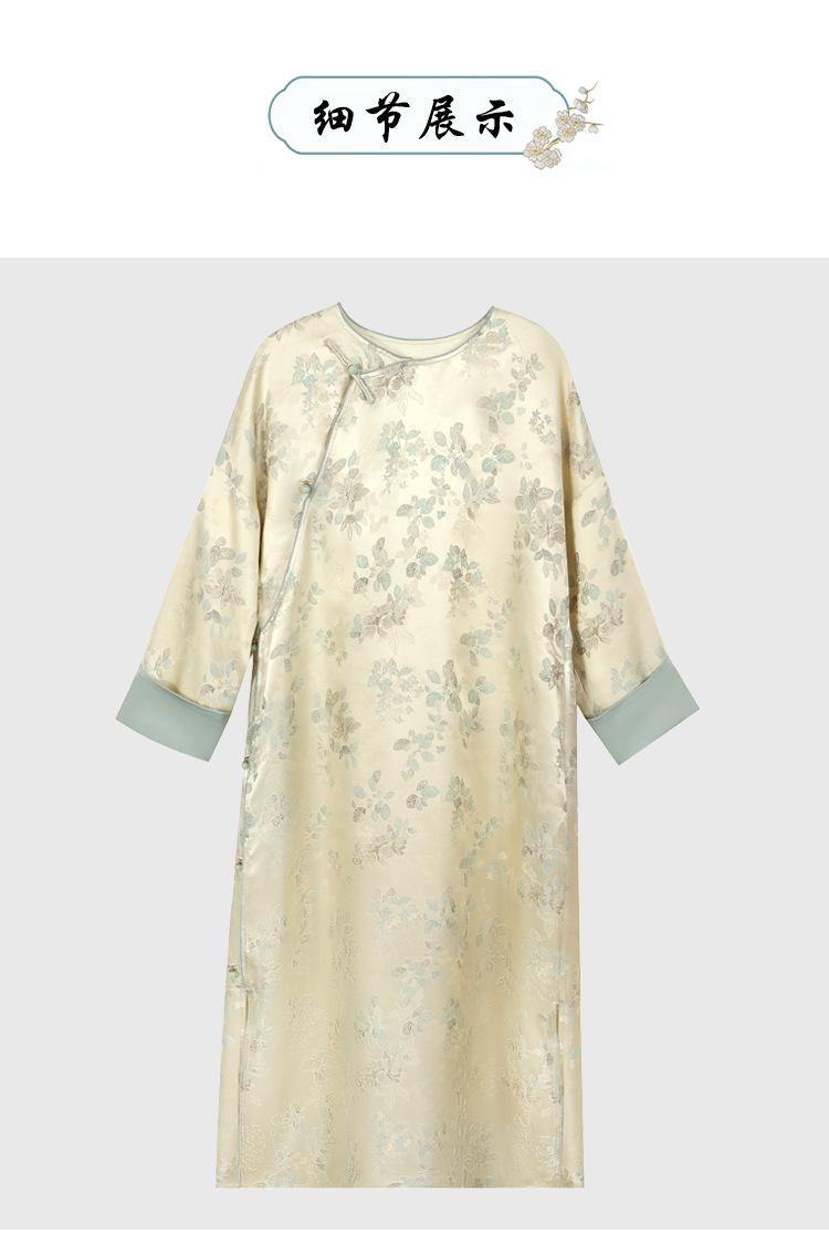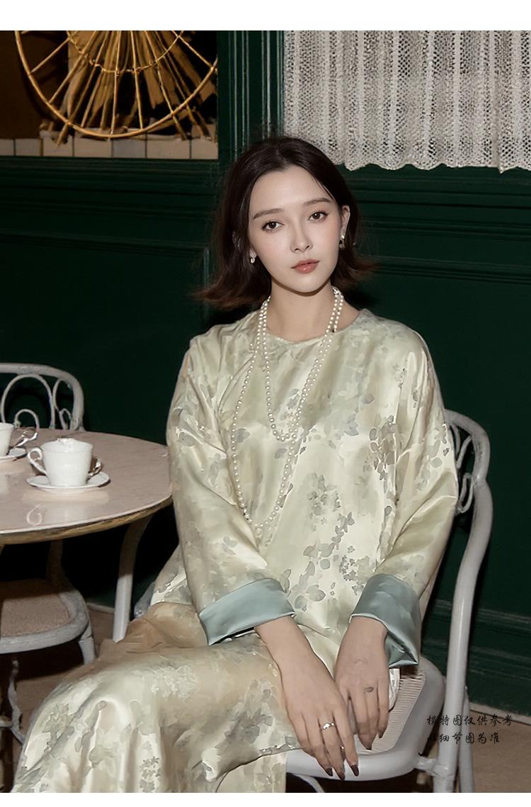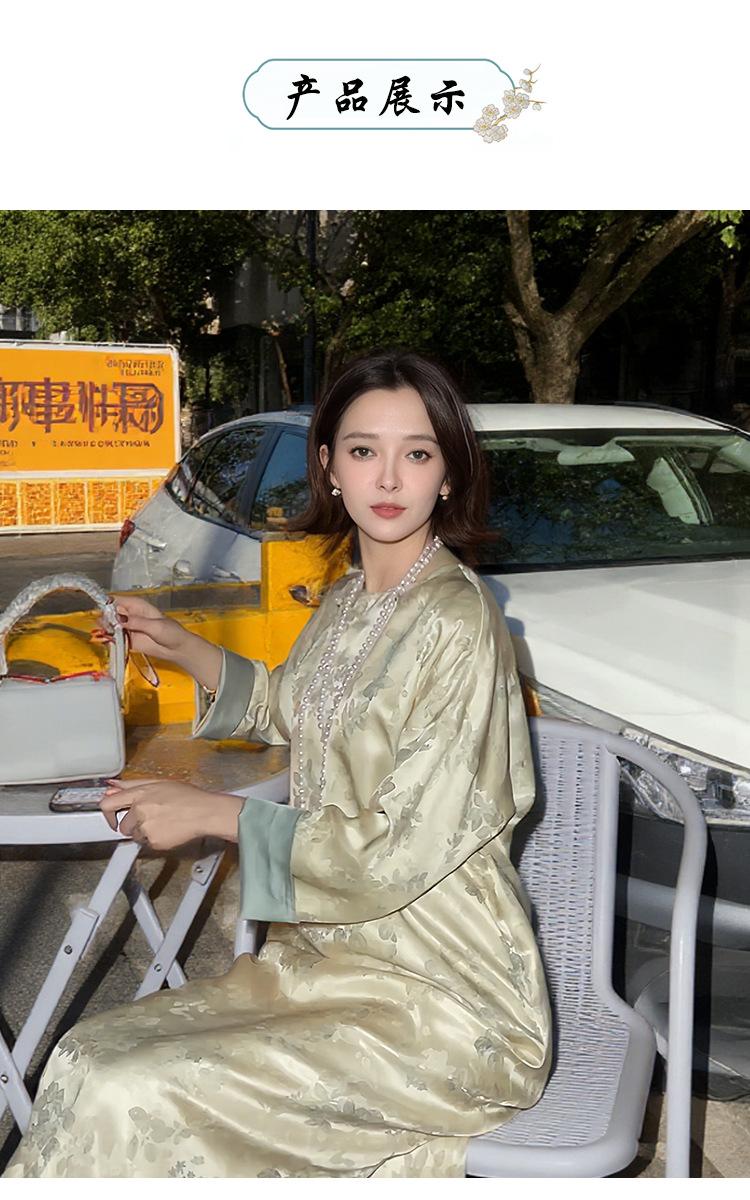 Vestido de Seda Xiangyun Yarn para Mujer Primavera y Otoño Seda de Morera Pesada Nuevo Estilo Chino Estilo Nacional Manga Jacquard Falda Midi
