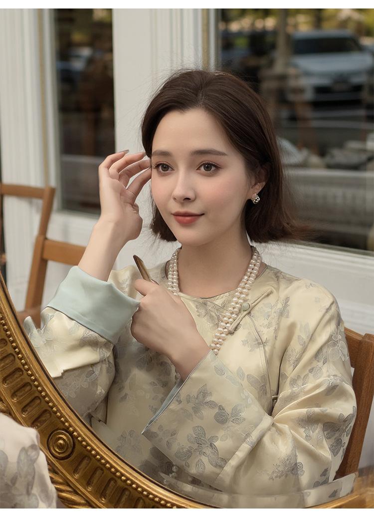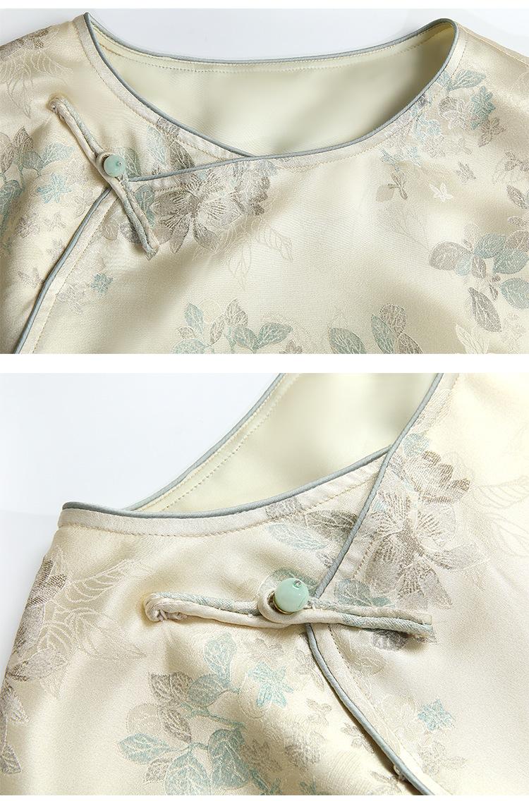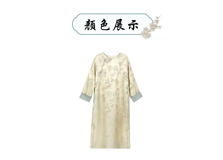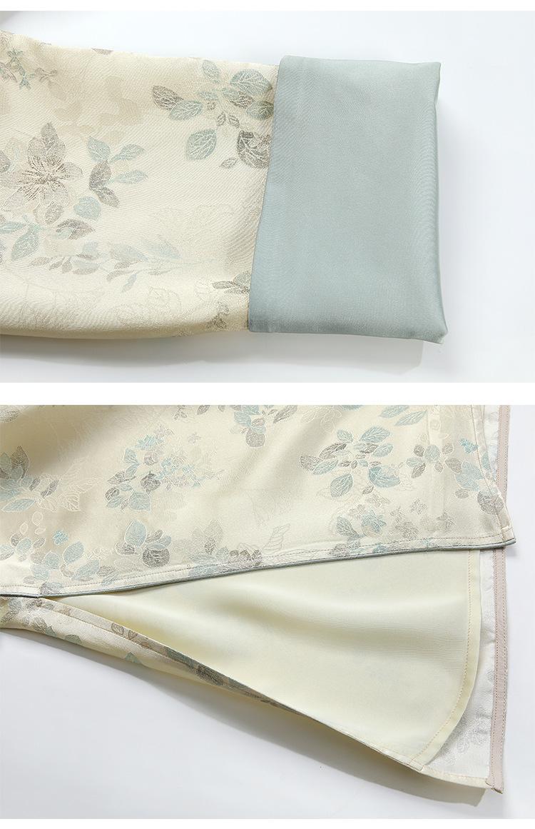 Vestido de Seda Xiangyun Yarn para Mujer Primavera y Otoño Seda de Morera Pesada Nuevo Estilo Chino Estilo Nacional Manga Jacquard Falda Midi