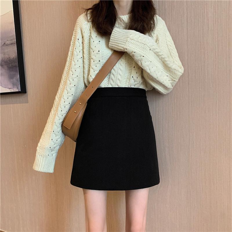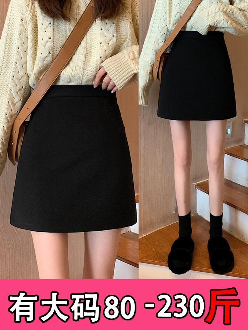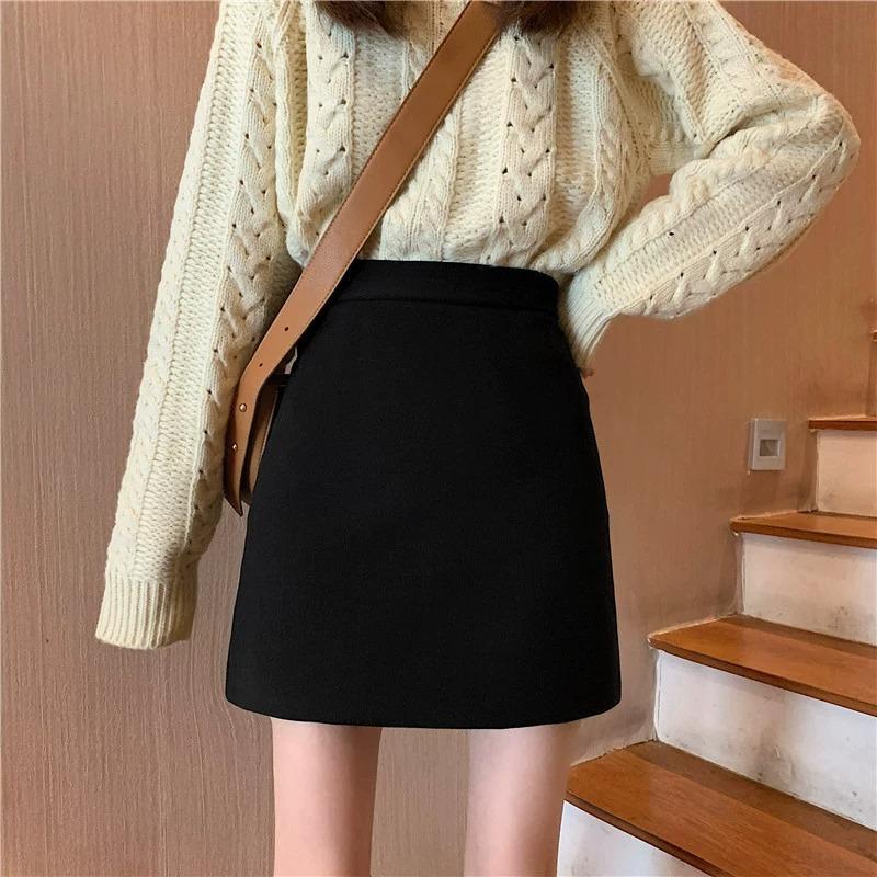 Falda de Lana Corte A para Mujer 2023 Nueva Otoño e Invierno Falda Corta Negra Cintura Alta Falda de Cadera Falda Tubo Moderna