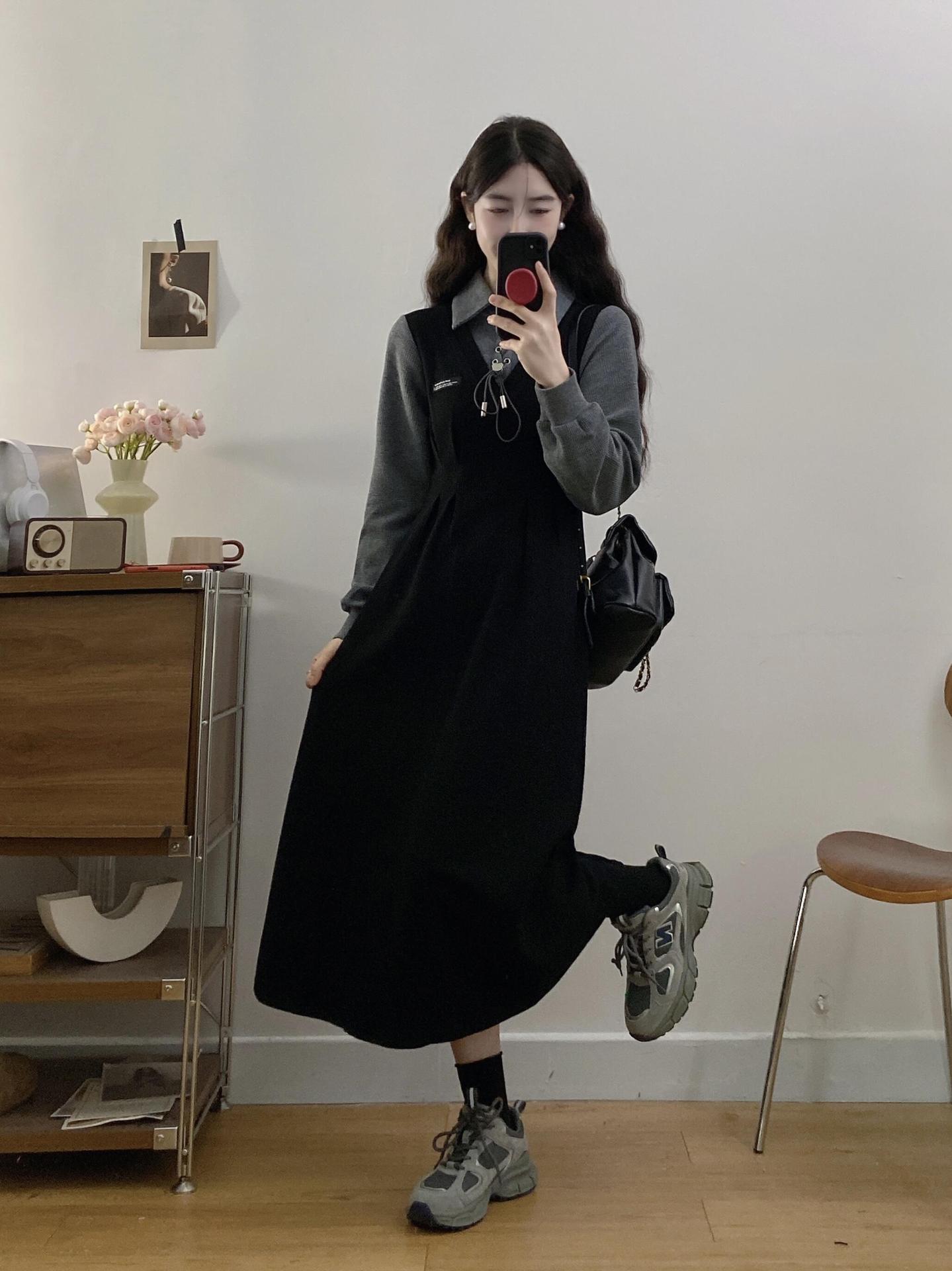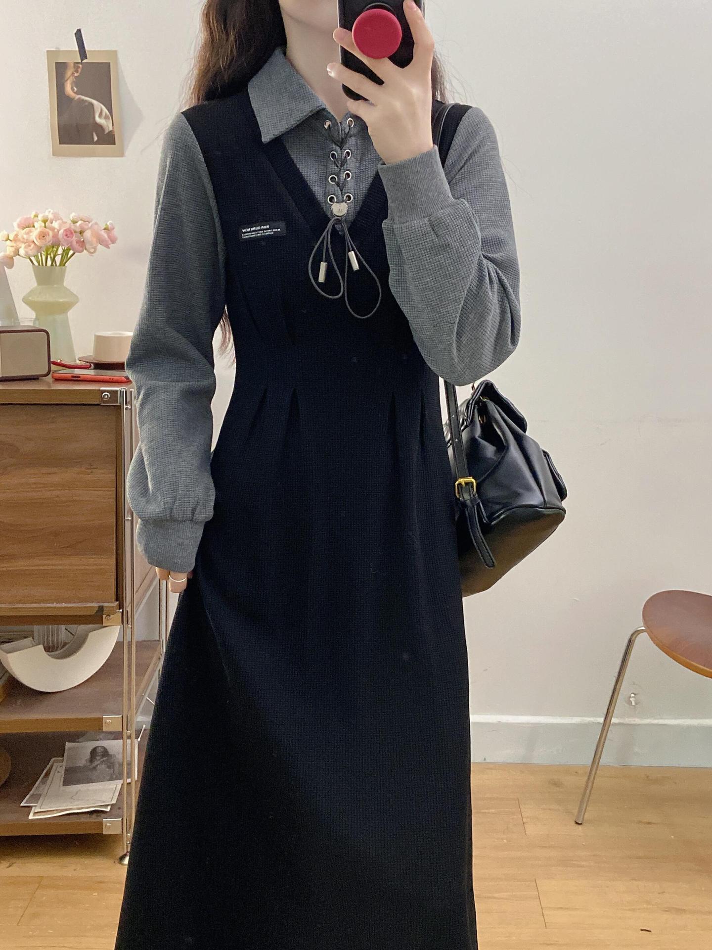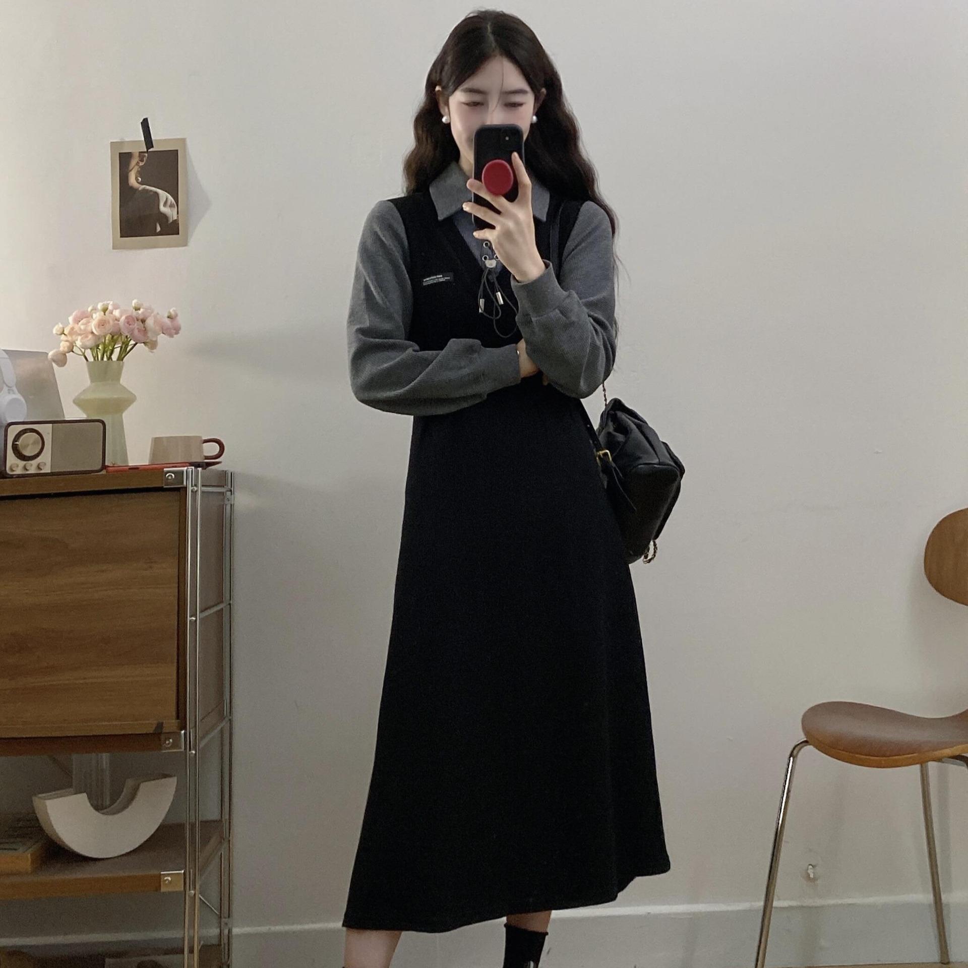 Vestido ropa de mujer de talla grande de buen aspecto estilo popular nuevo conjunto falda otoño e invierno sudadera de punto gruesa de manga larga
