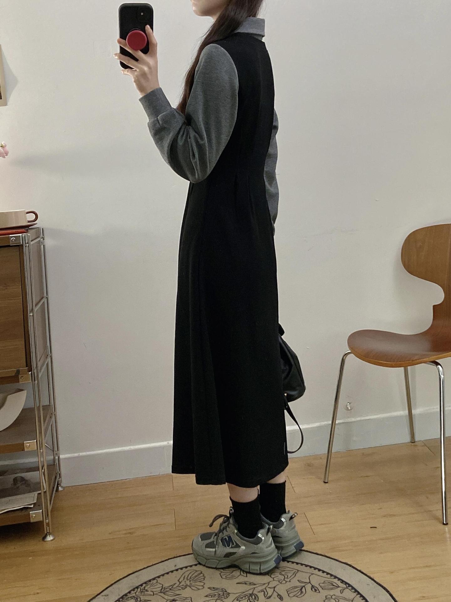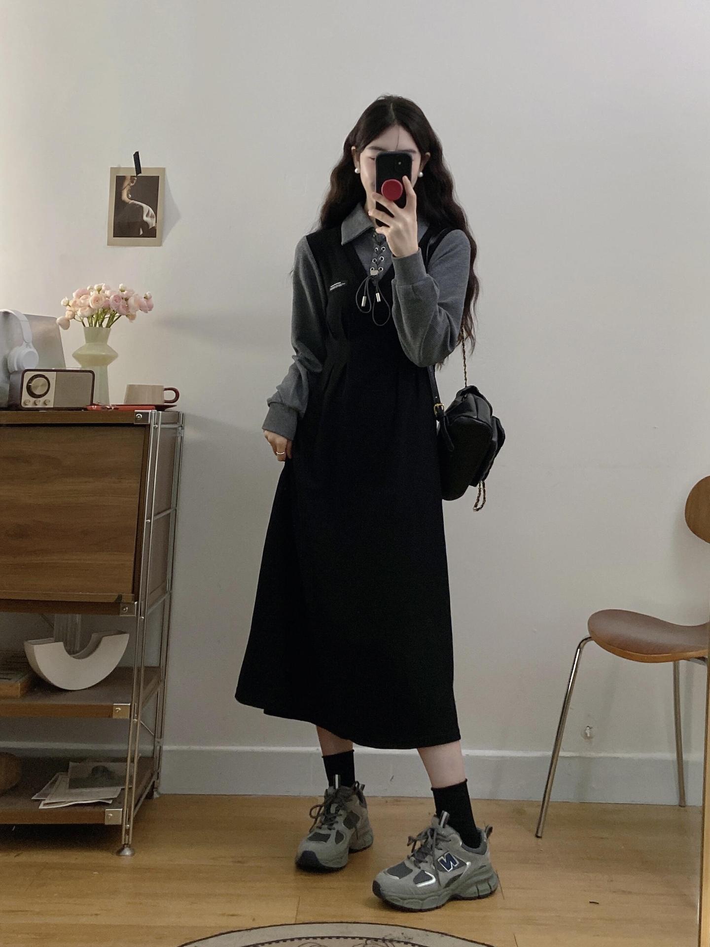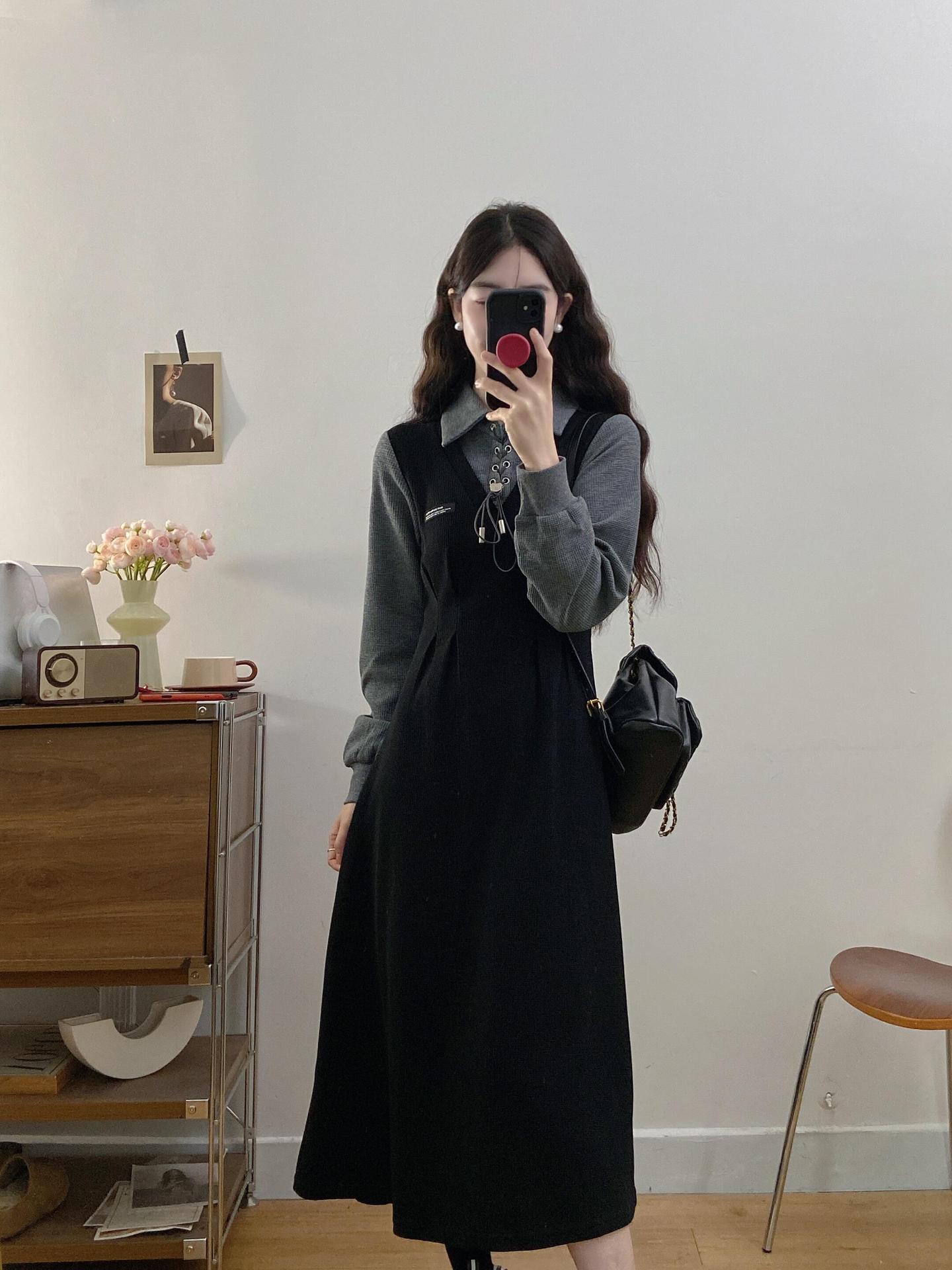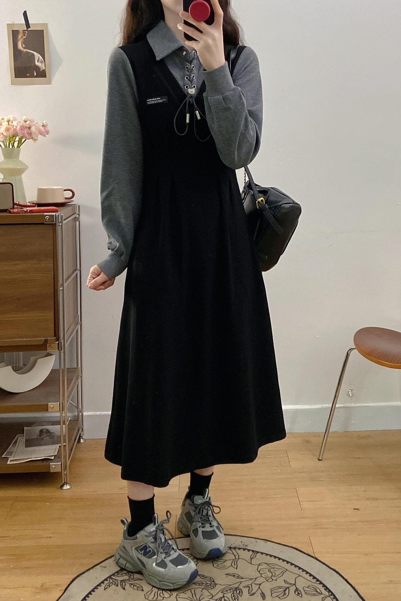 Vestido ropa de mujer de talla grande de buen aspecto estilo popular nuevo conjunto falda otoño e invierno sudadera de punto gruesa de manga larga