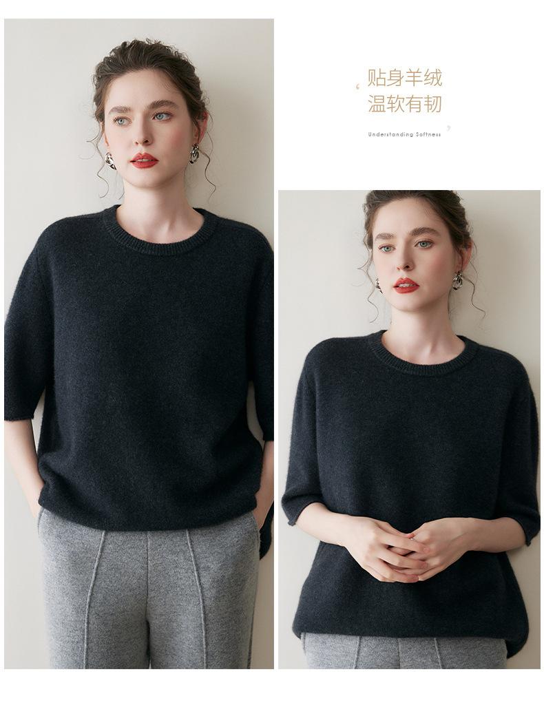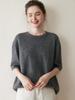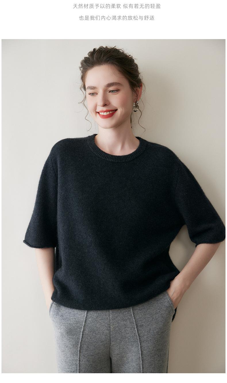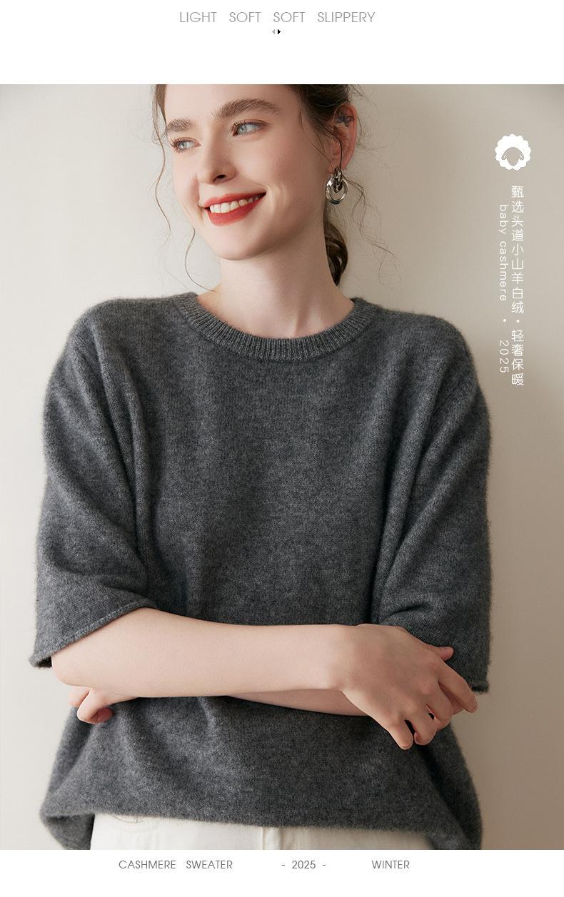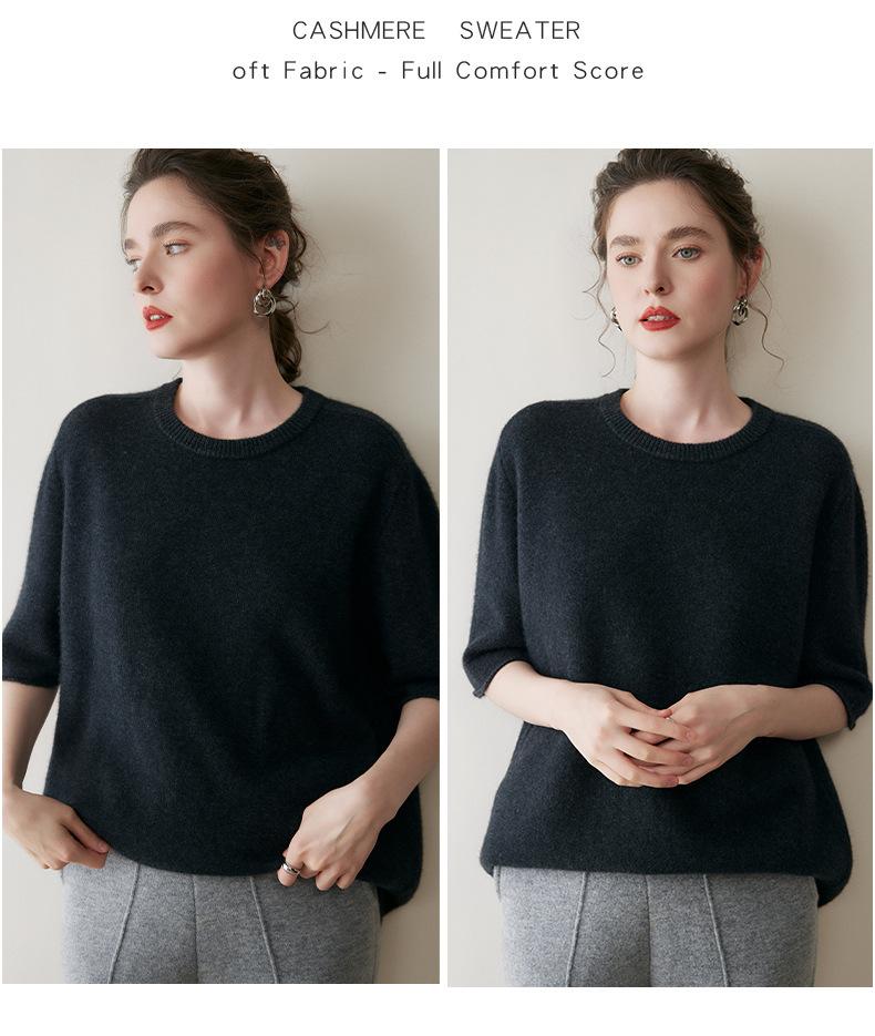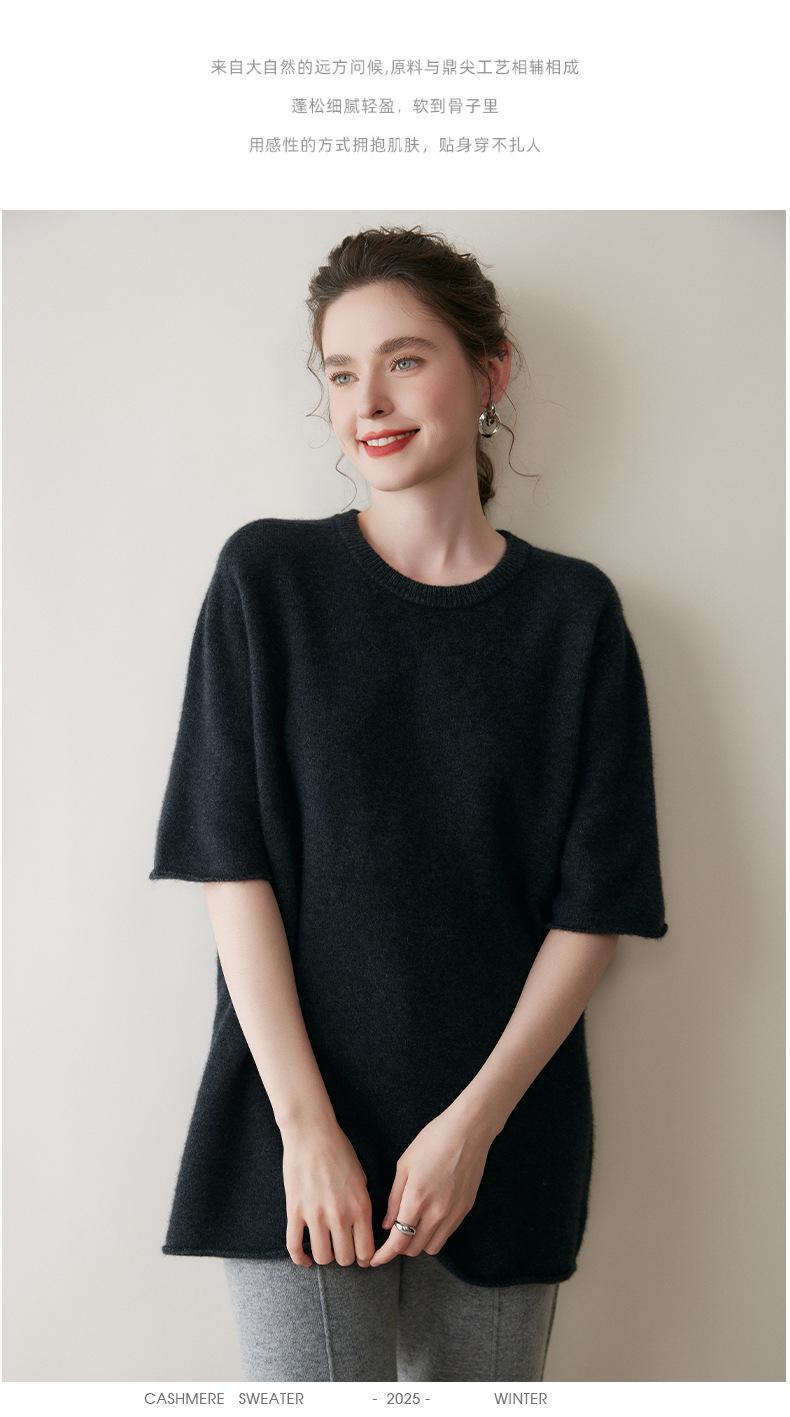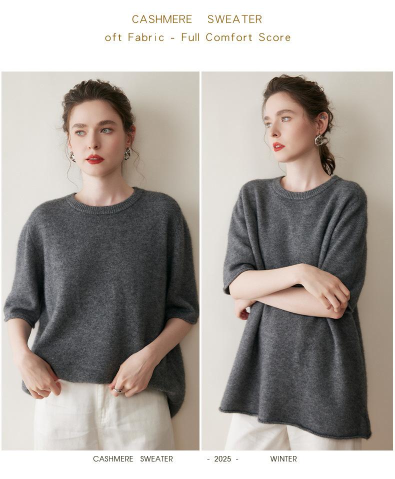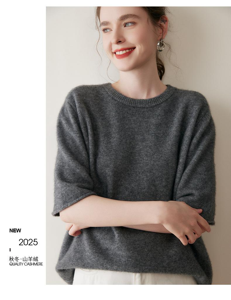 Suéter de cachemira otoño e invierno nuevo para mujer cuello redondo holgado manga cinco puntos top color sólido casual tejido grueso suéter versátil