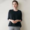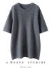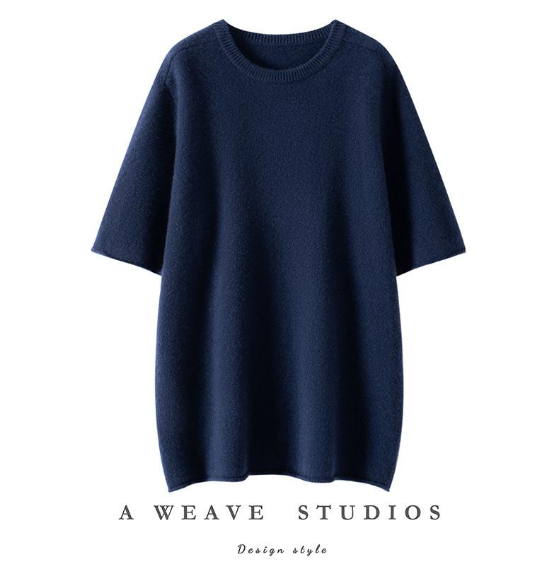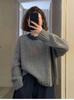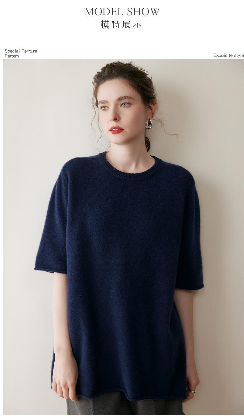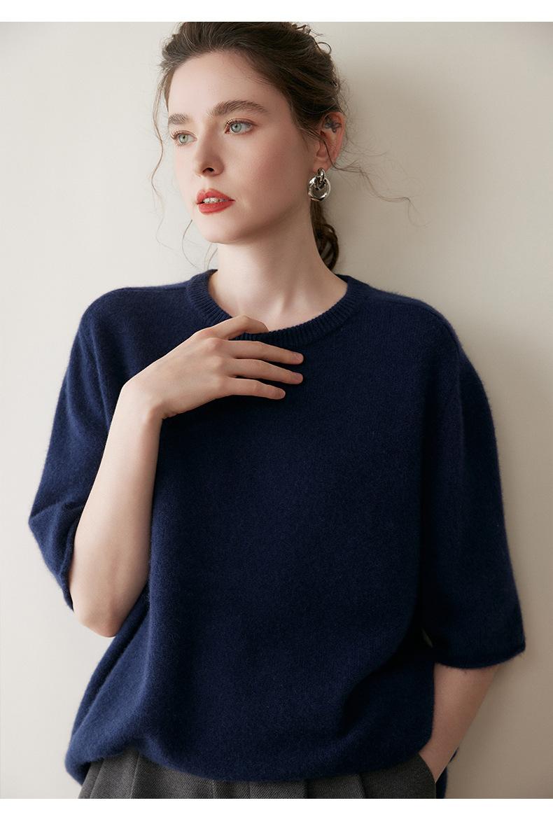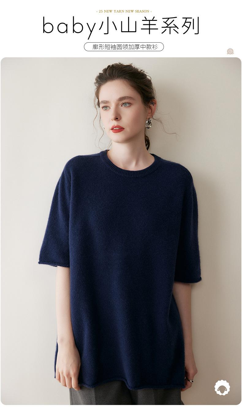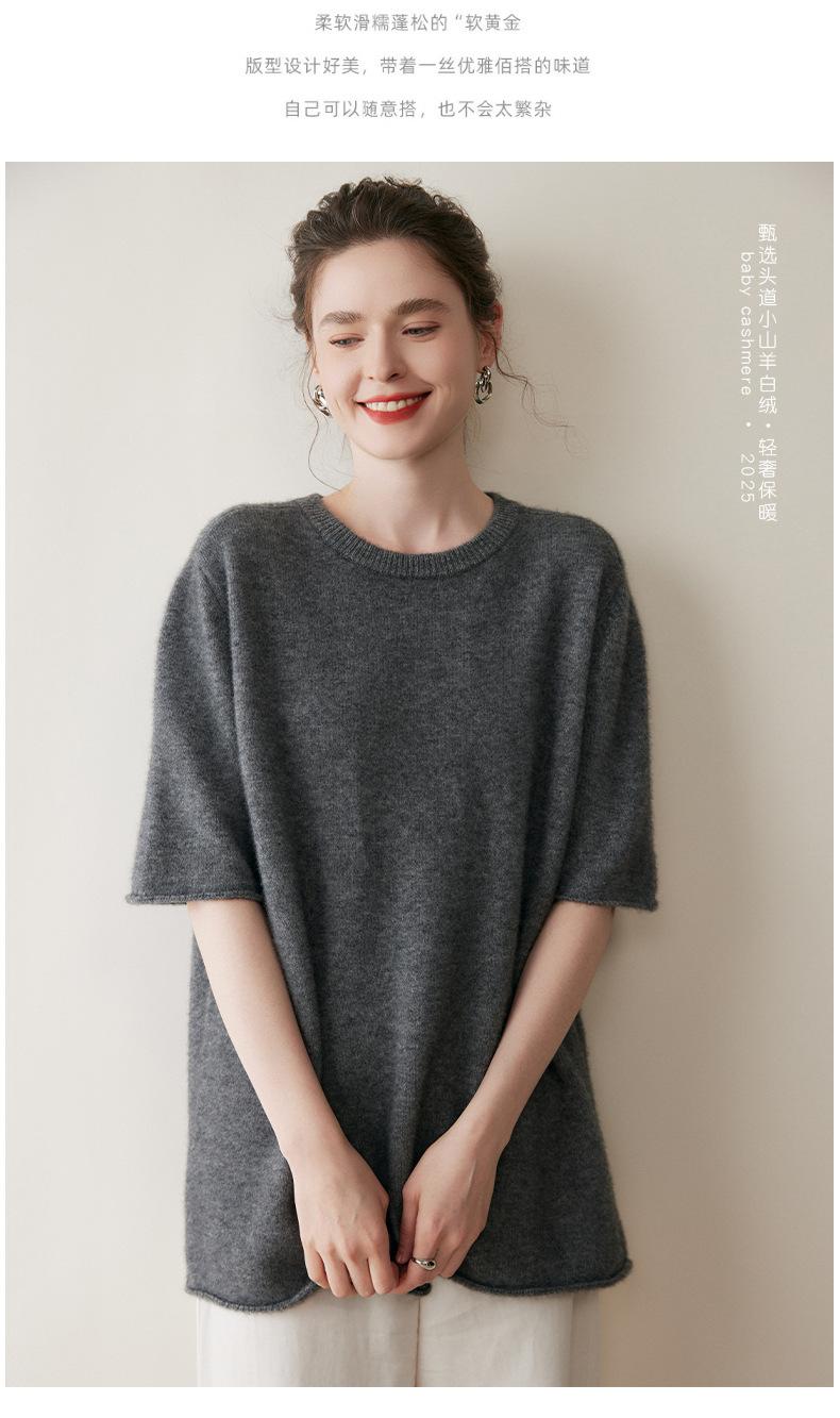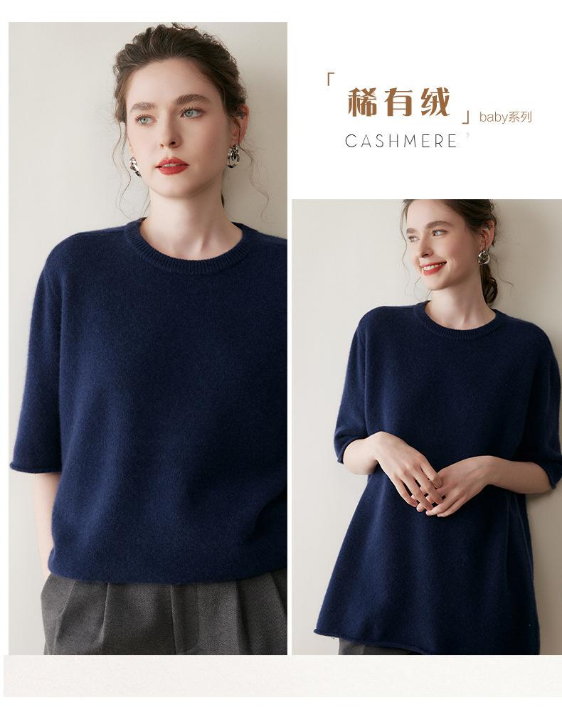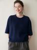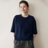 Suéter de cachemira otoño e invierno nuevo para mujer cuello redondo holgado manga cinco puntos top color sólido casual tejido grueso suéter versátil