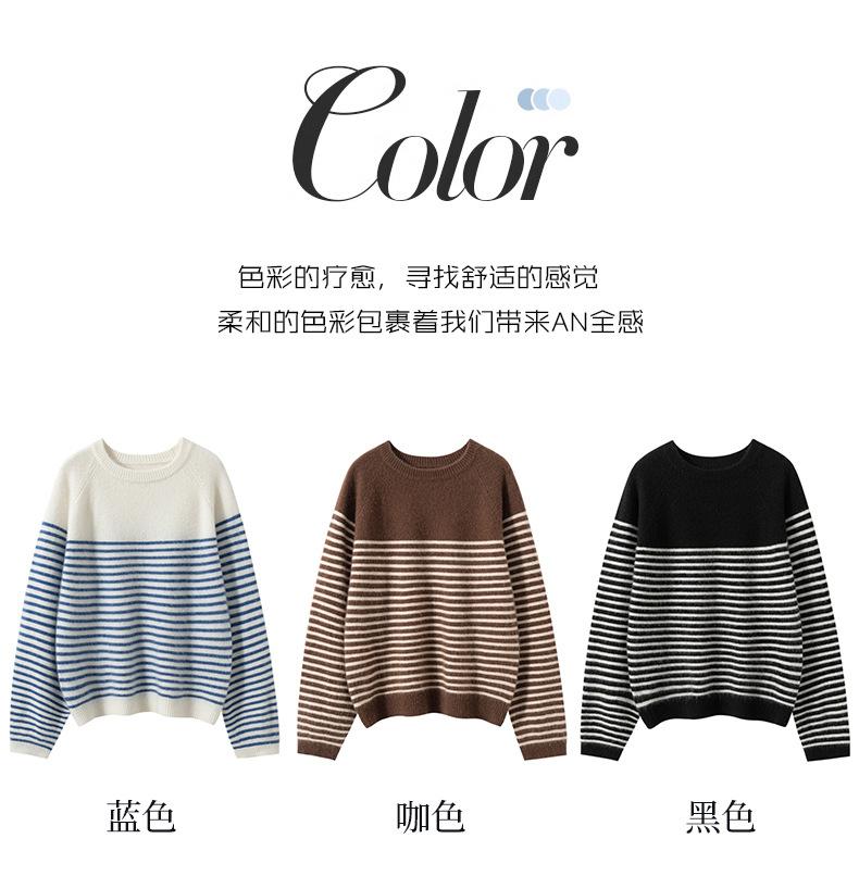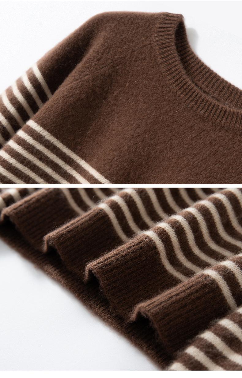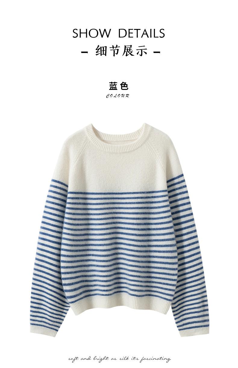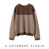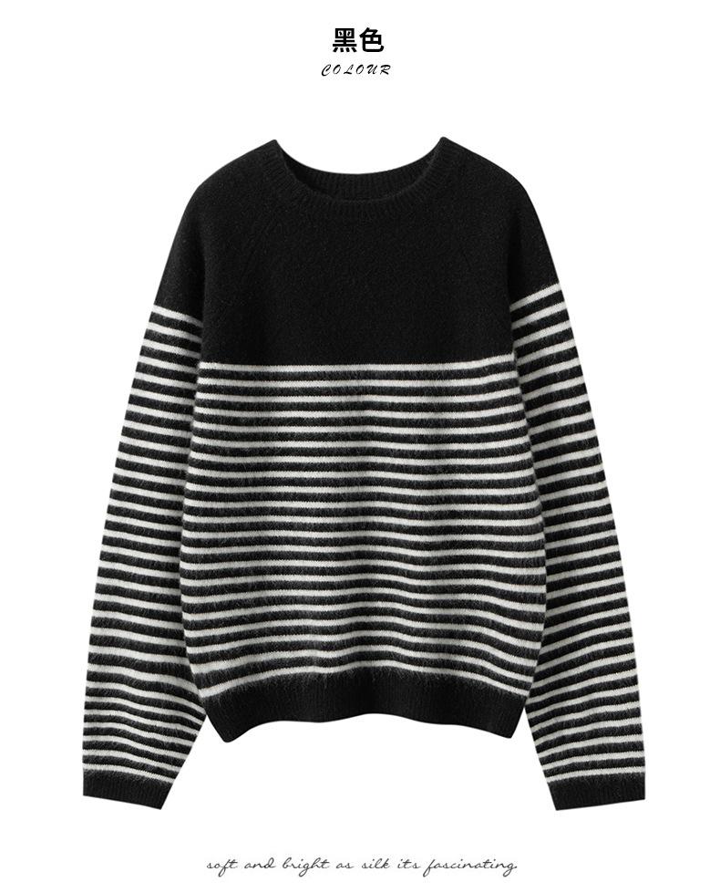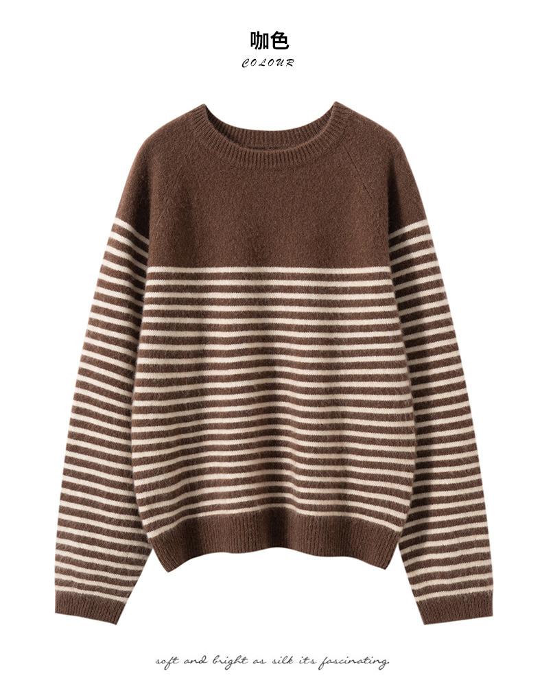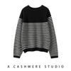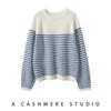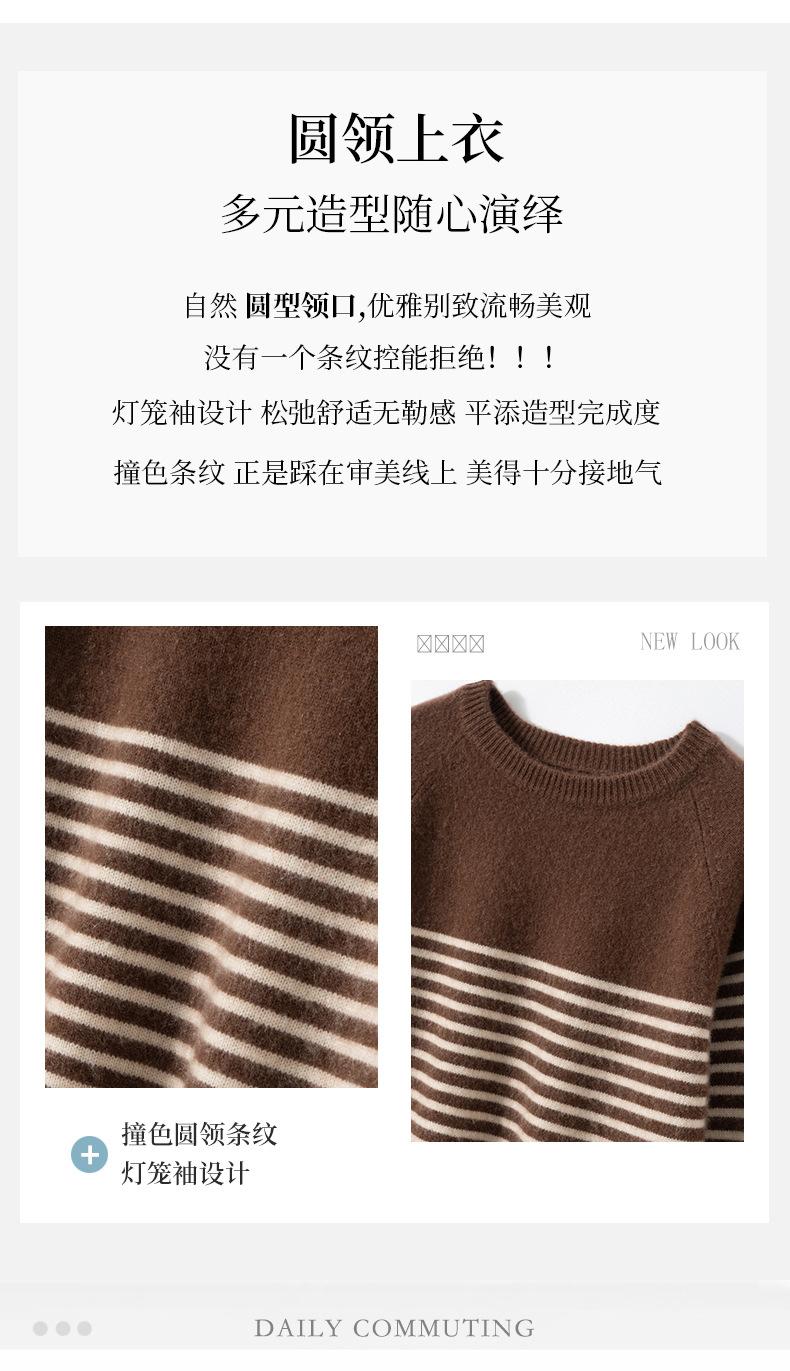 Nuevo Suéter de Cachemira para Mujer Otoño e Invierno Capa Base Rayado Cuello Redondo Top de Punto Mangas Farol Holgado Adelgazante Ropa Interior