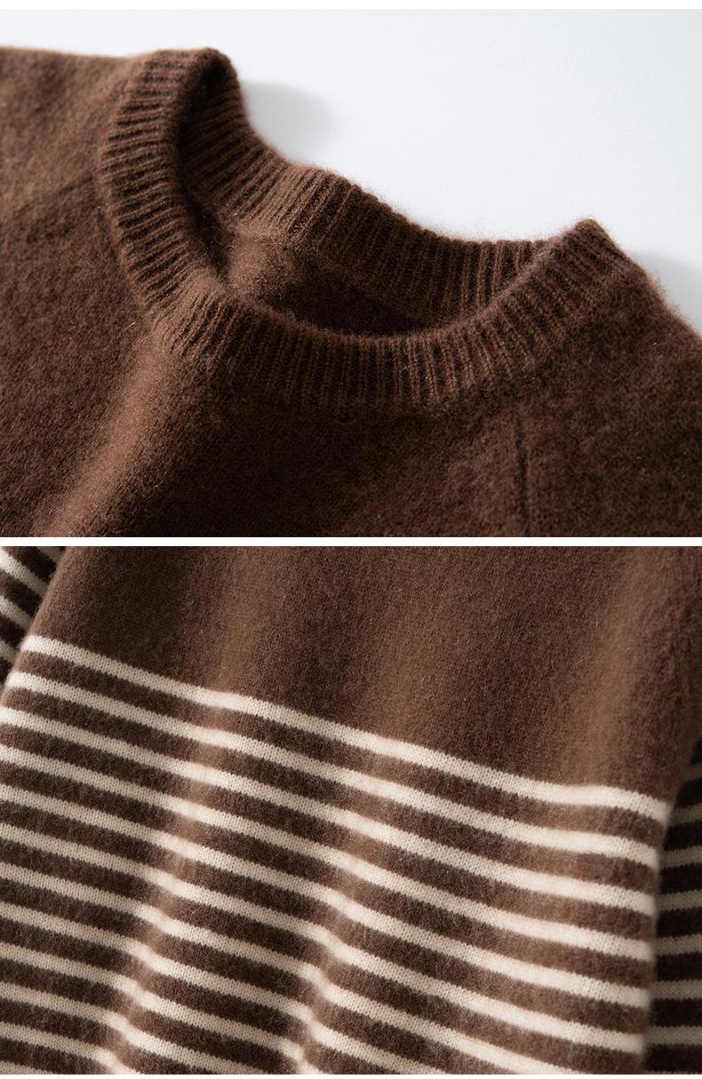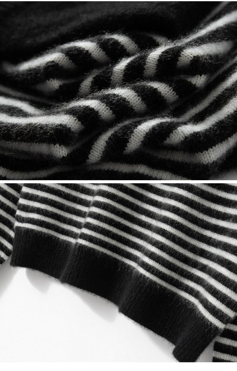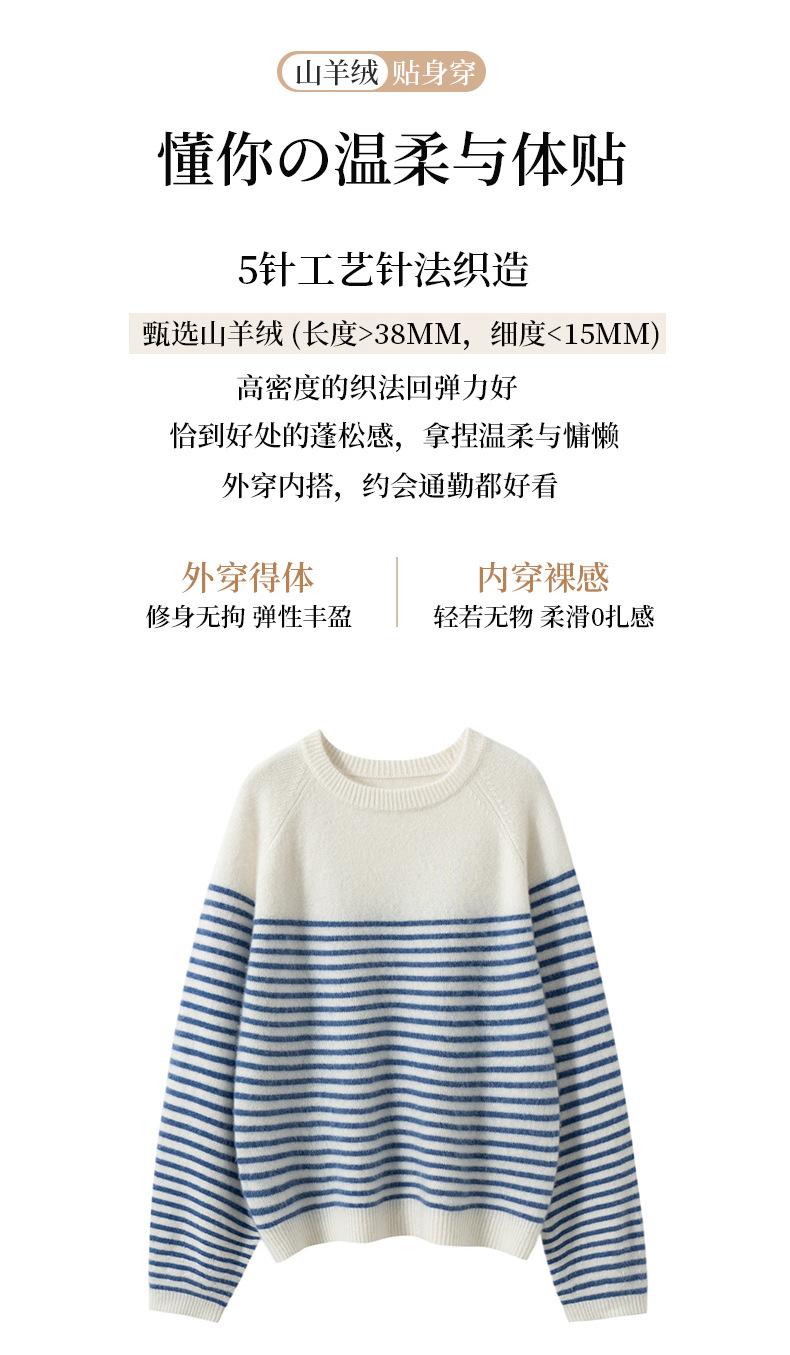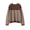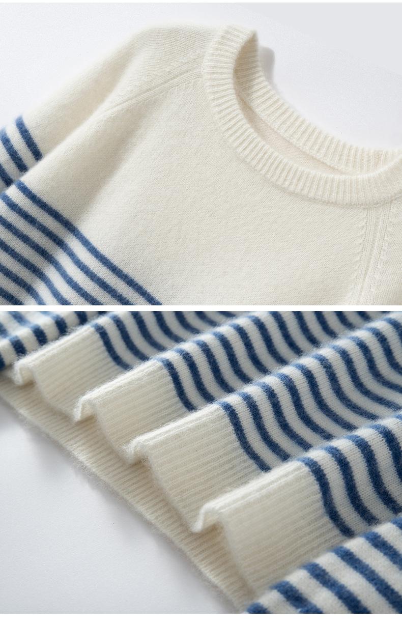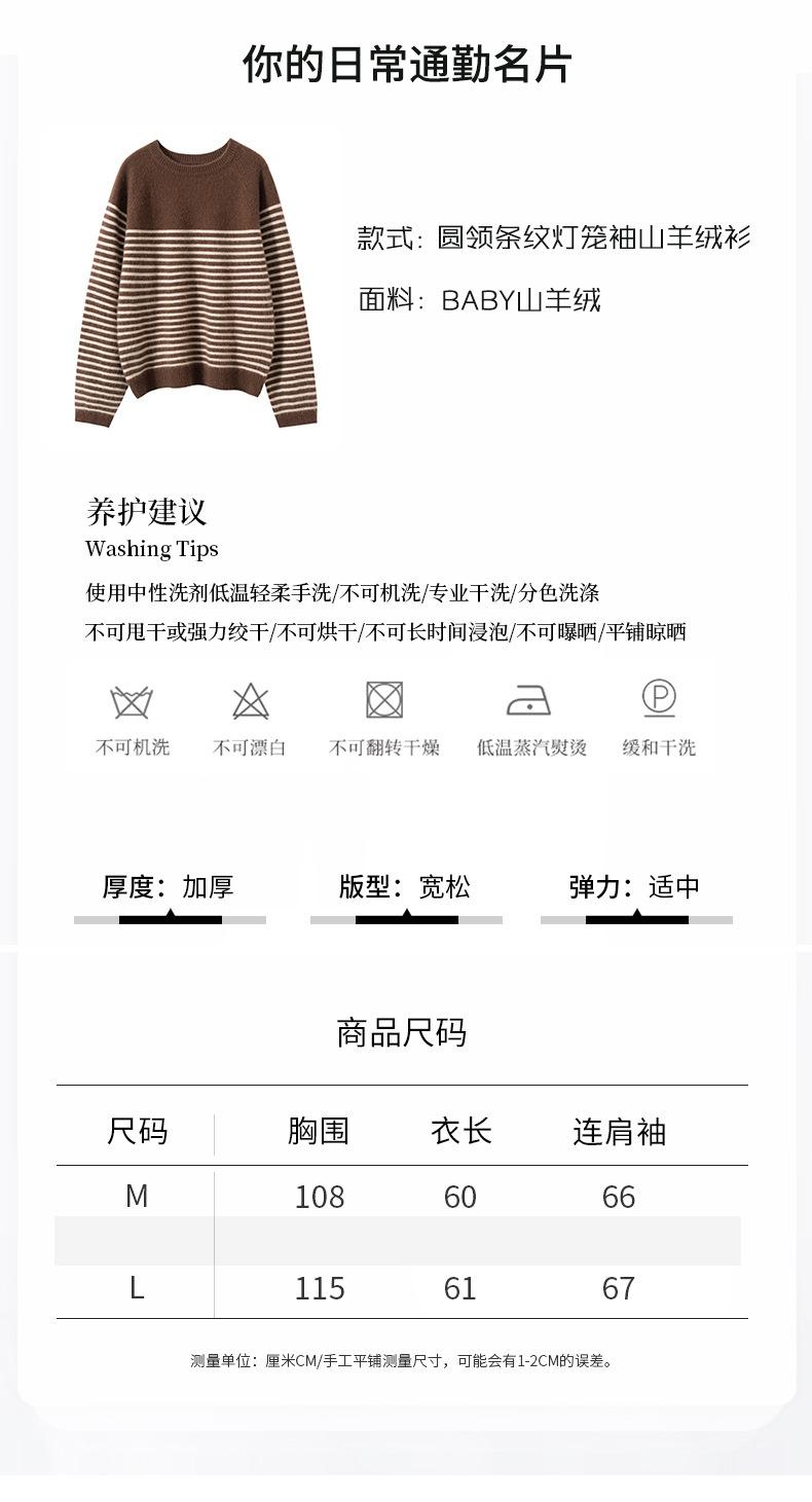 Nuevo Suéter de Cachemira para Mujer Otoño e Invierno Capa Base Rayado Cuello Redondo Top de Punto Mangas Farol Holgado Adelgazante Ropa Interior