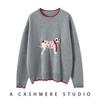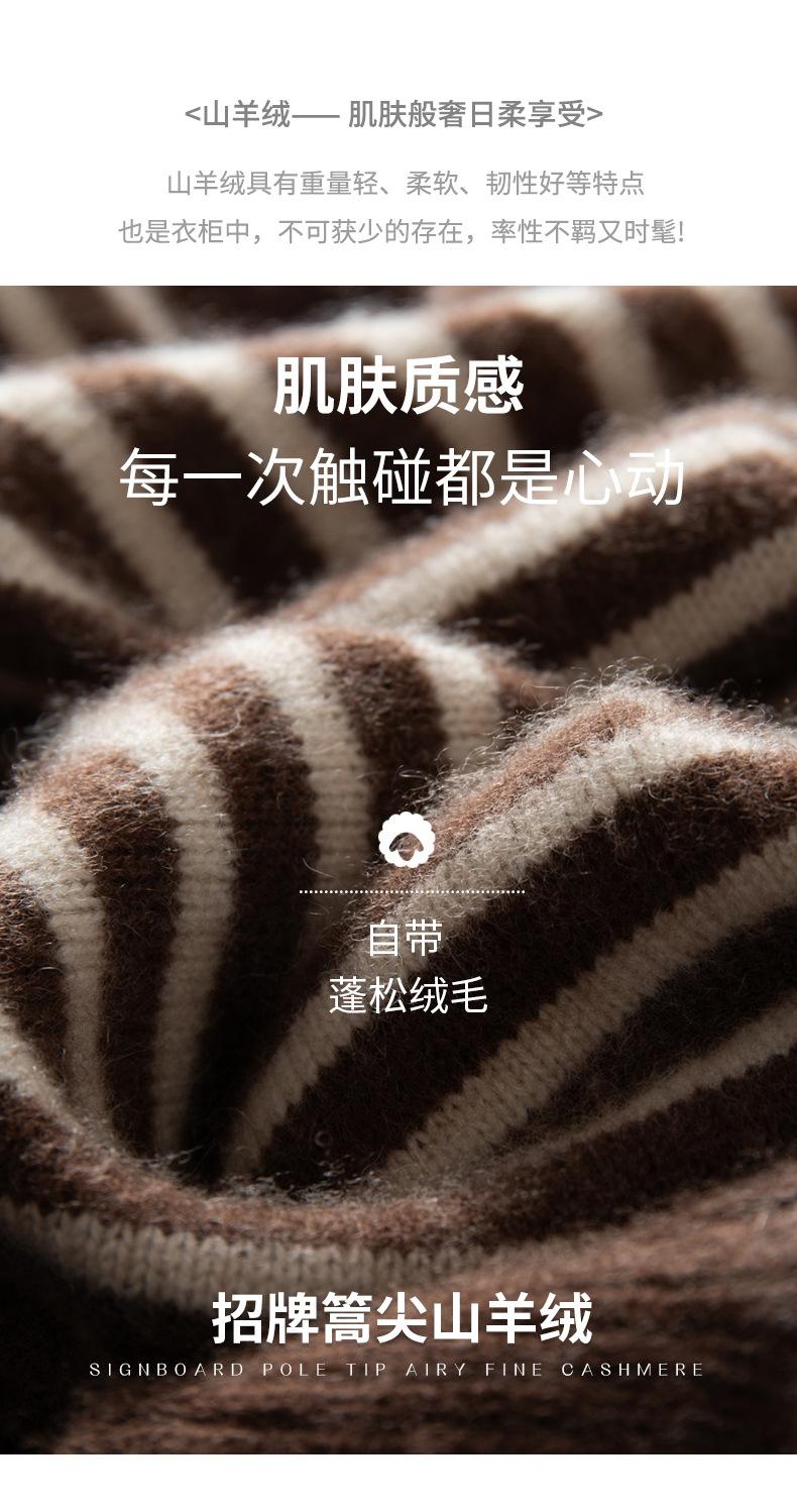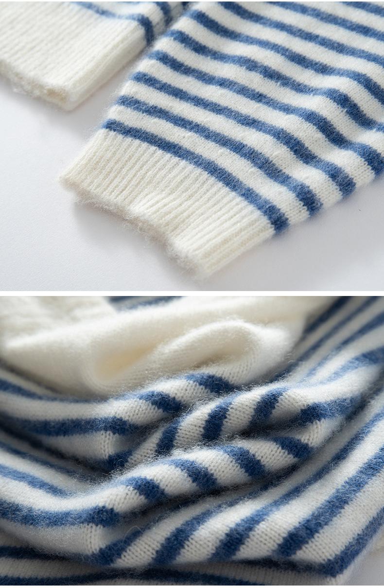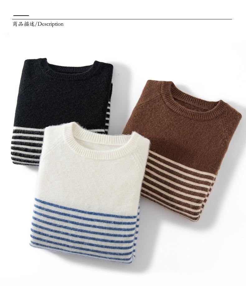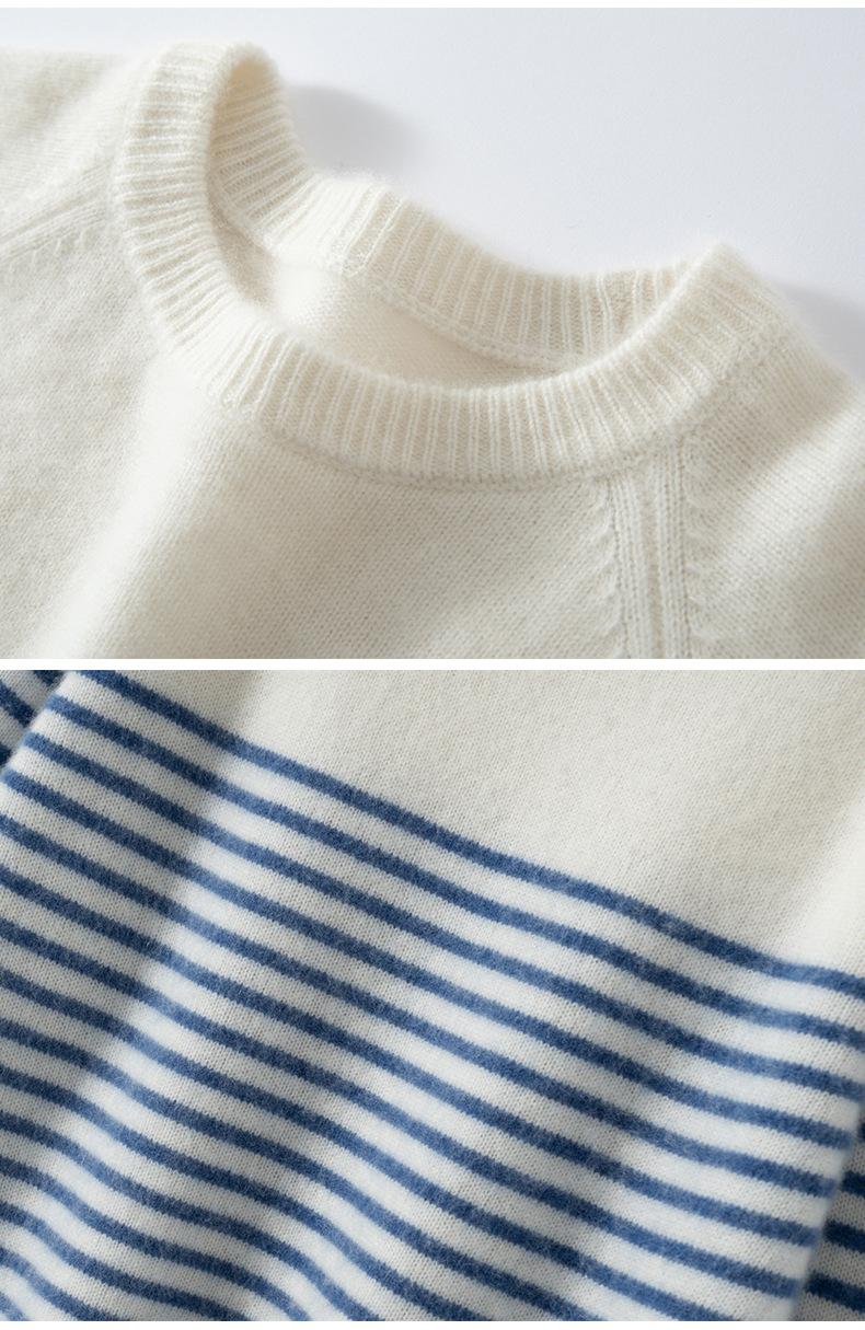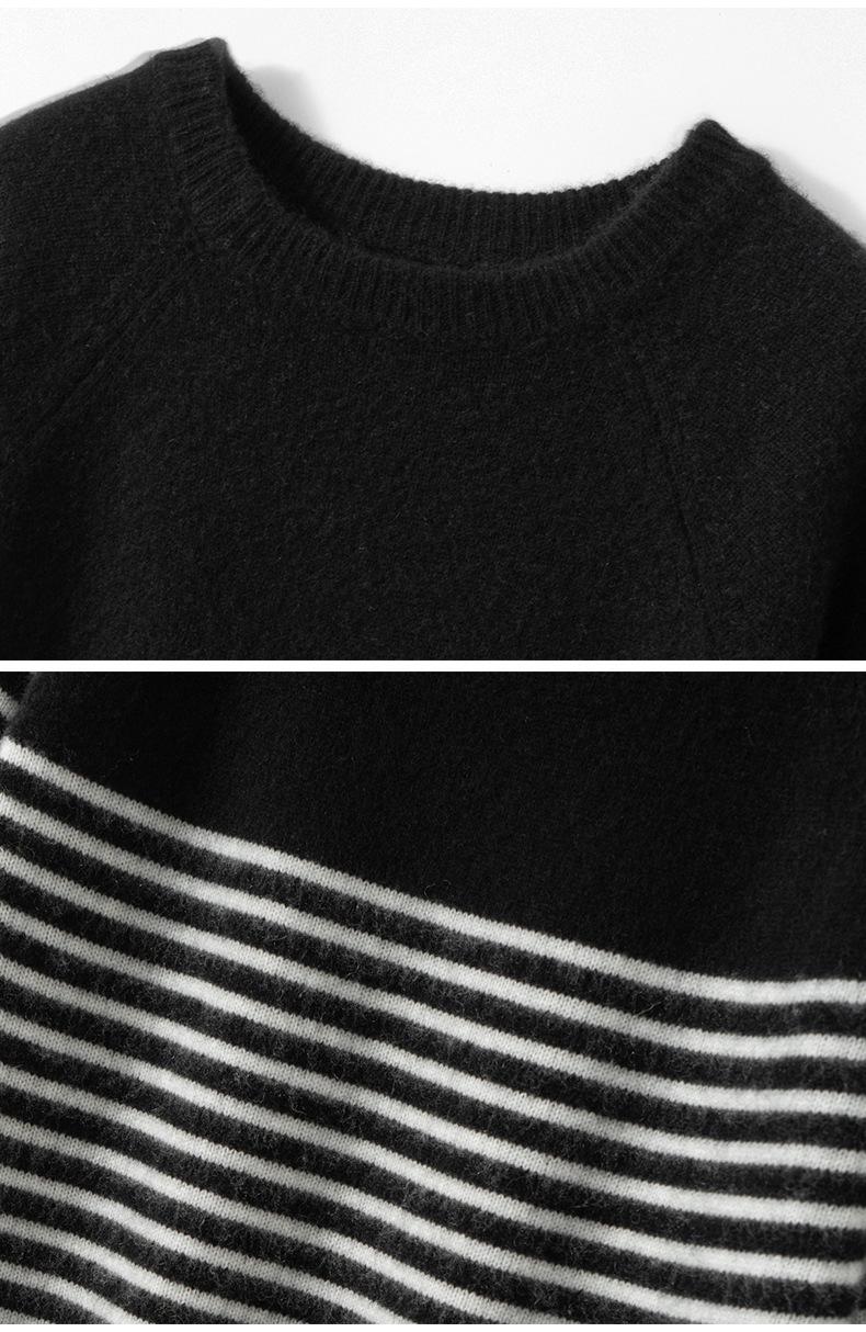 Nuevo Suéter de Cachemira para Mujer Otoño e Invierno Capa Base Rayado Cuello Redondo Top de Punto Mangas Farol Holgado Adelgazante Ropa Interior