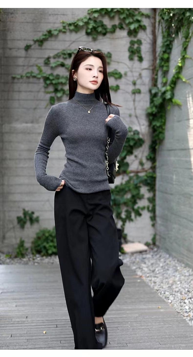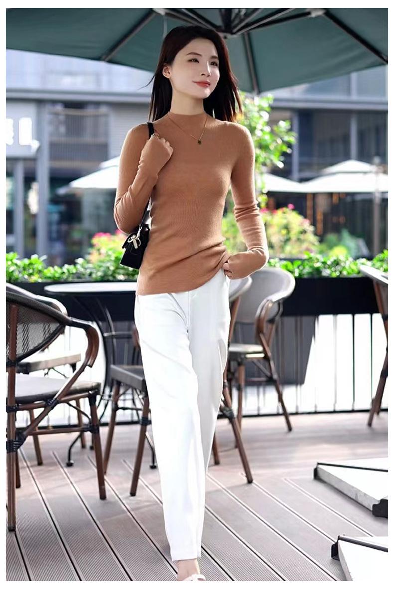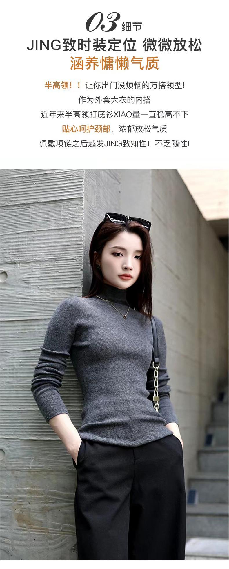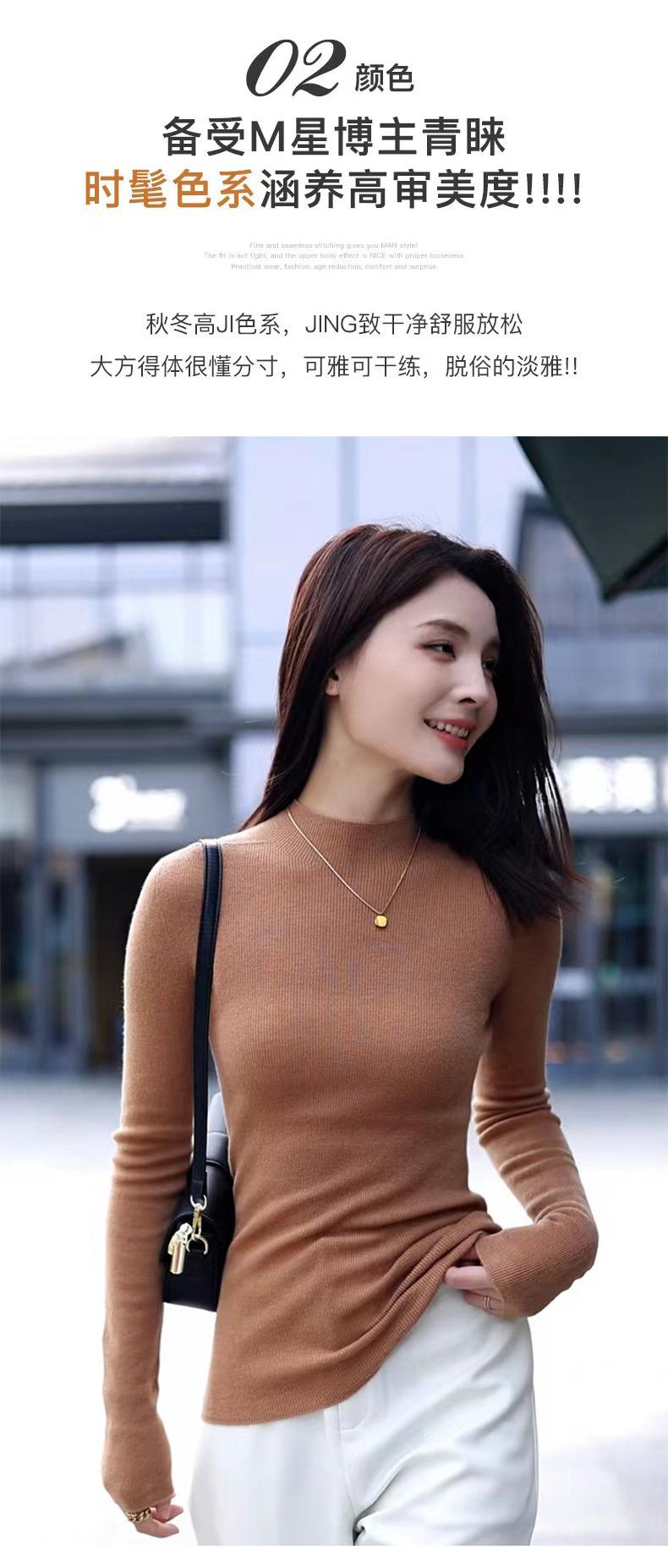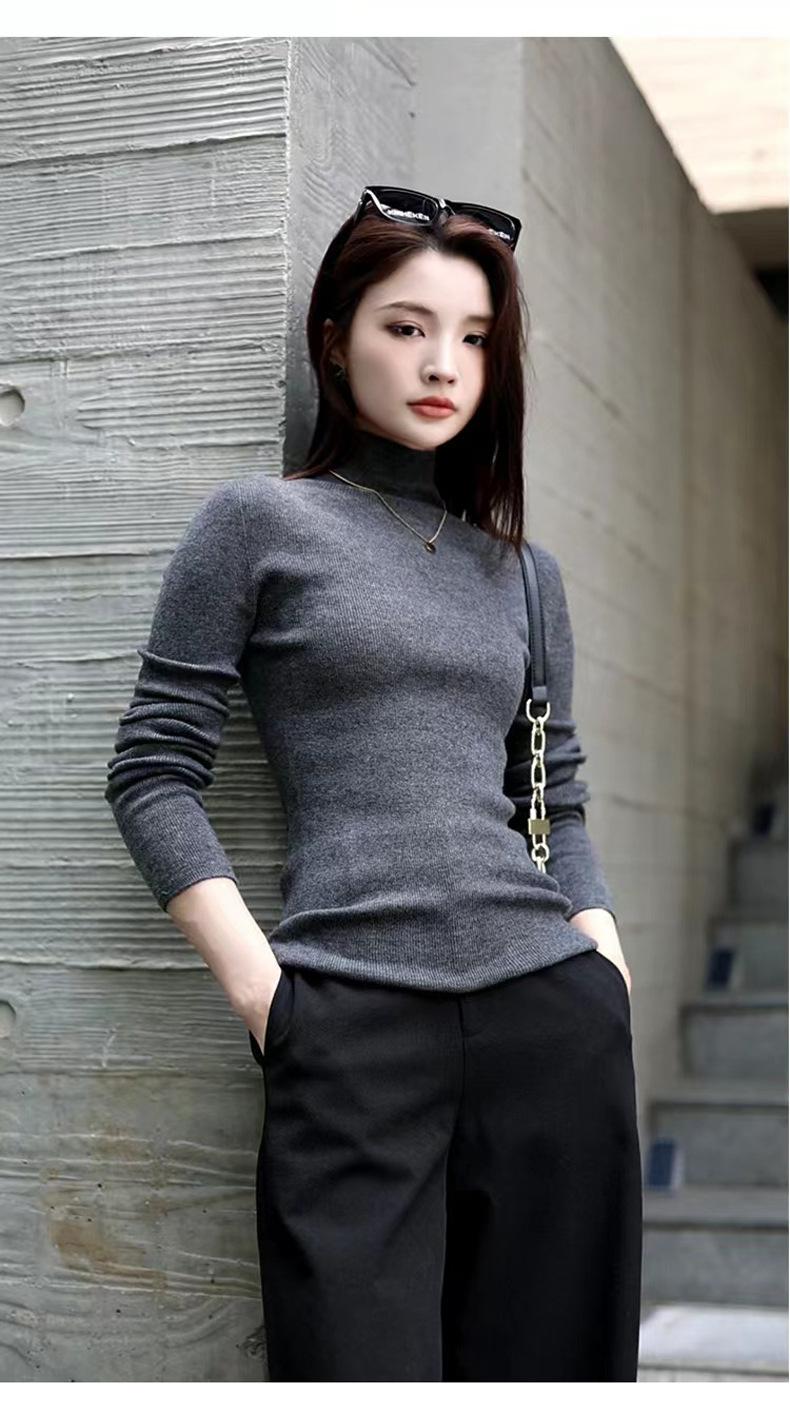 Nuevo Otoño/Invierno Primera Línea Listo para Usar Suéter de Punto de Lana Cuello Medio Alto Manga Larga Color Sólido Adelgazante Base Ropa de Mujer