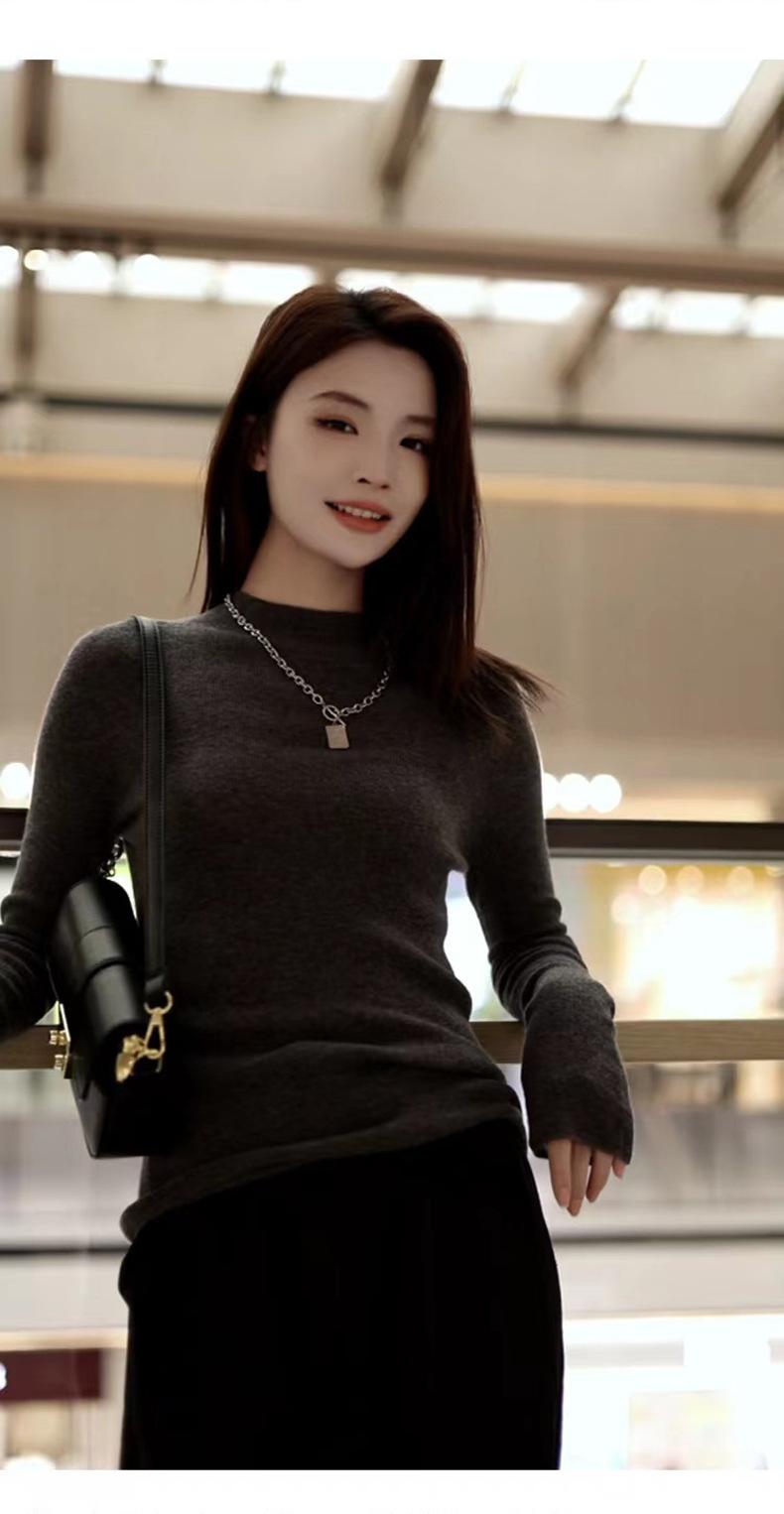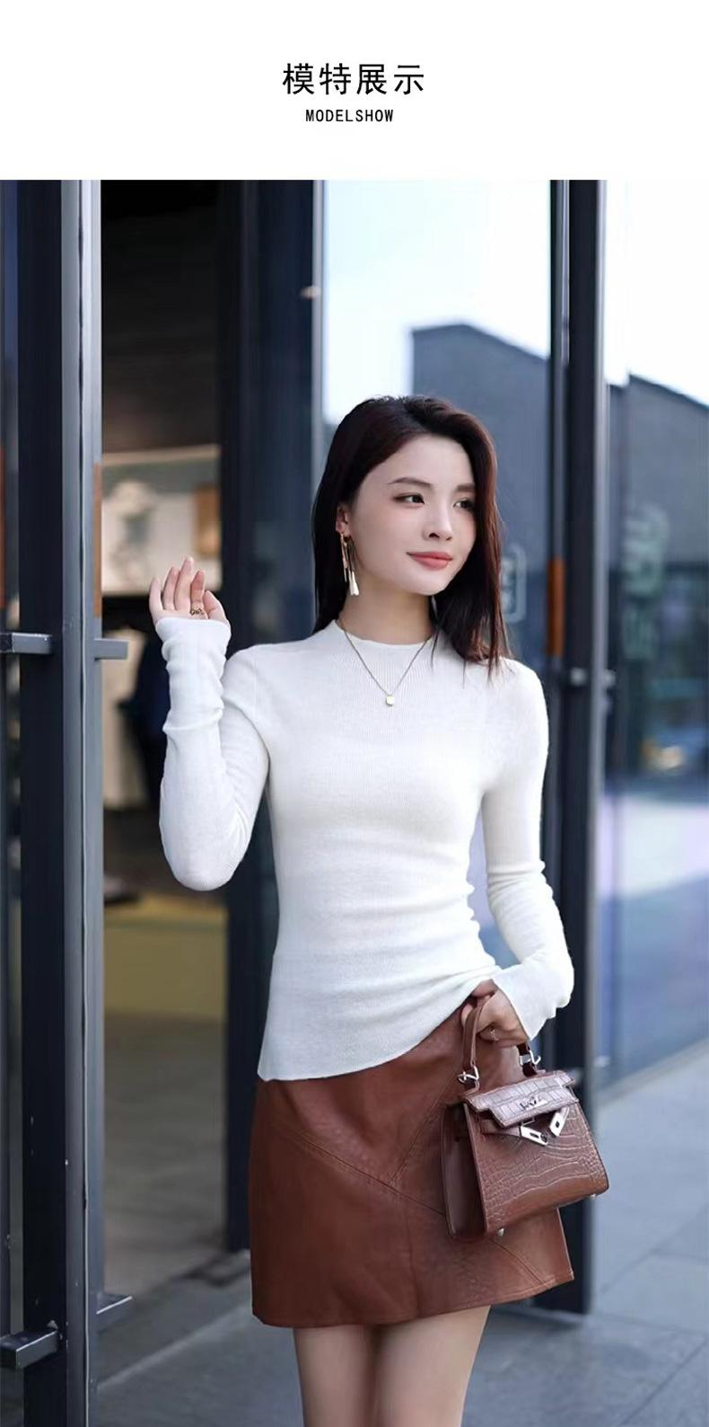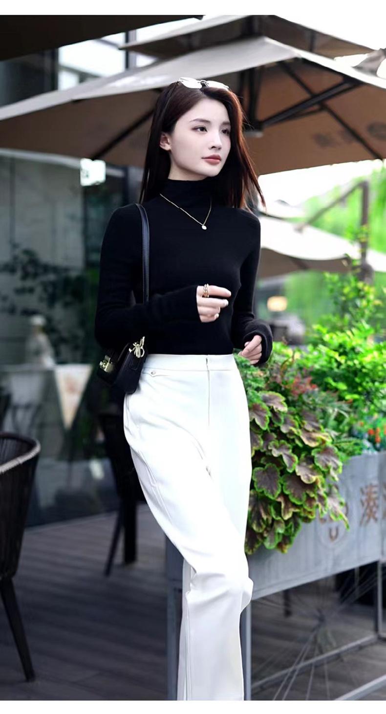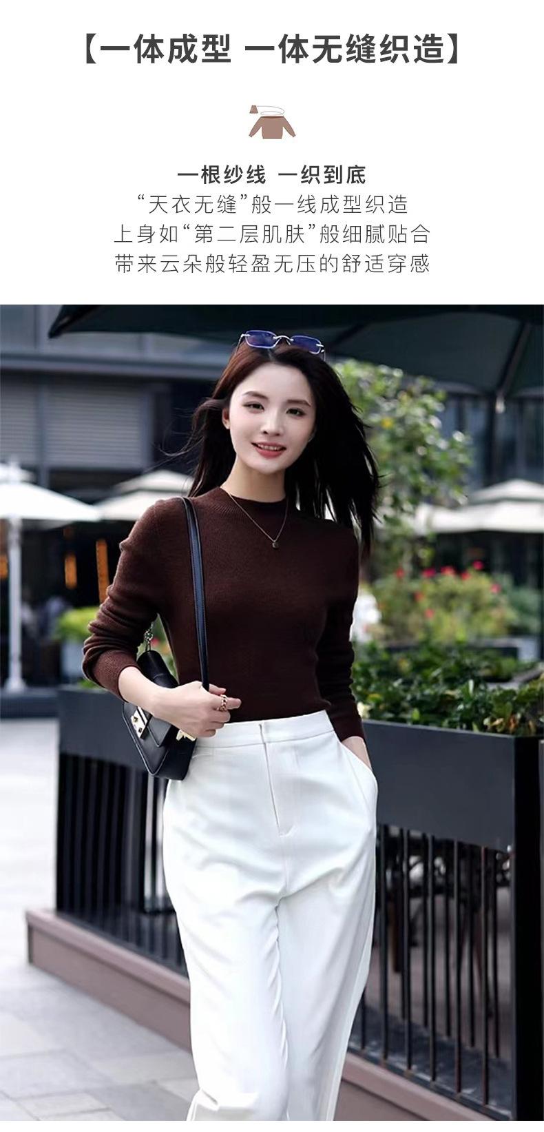 Nuevo Otoño/Invierno Primera Línea Listo para Usar Suéter de Punto de Lana Cuello Medio Alto Manga Larga Color Sólido Adelgazante Base Ropa de Mujer