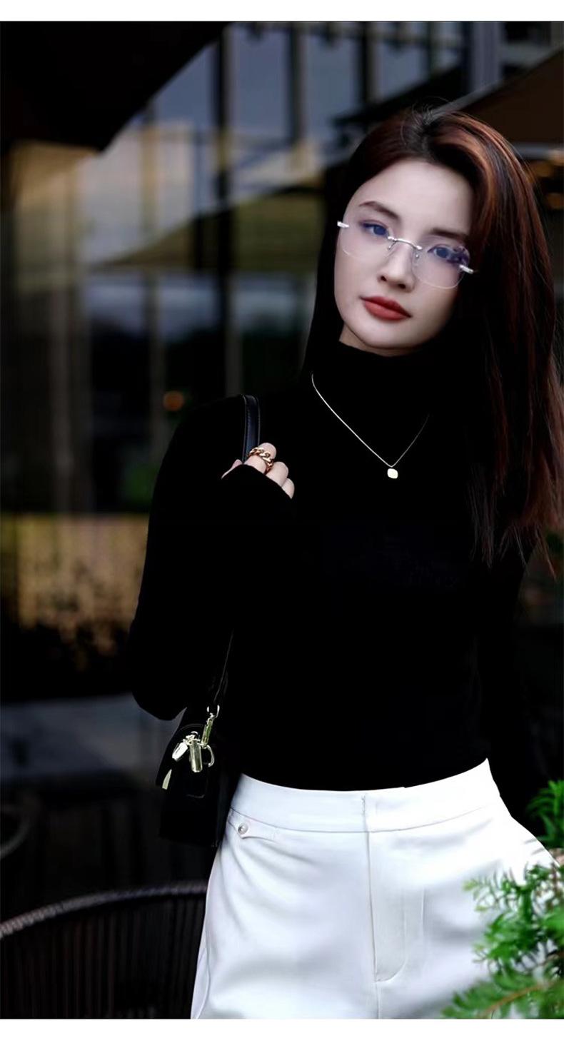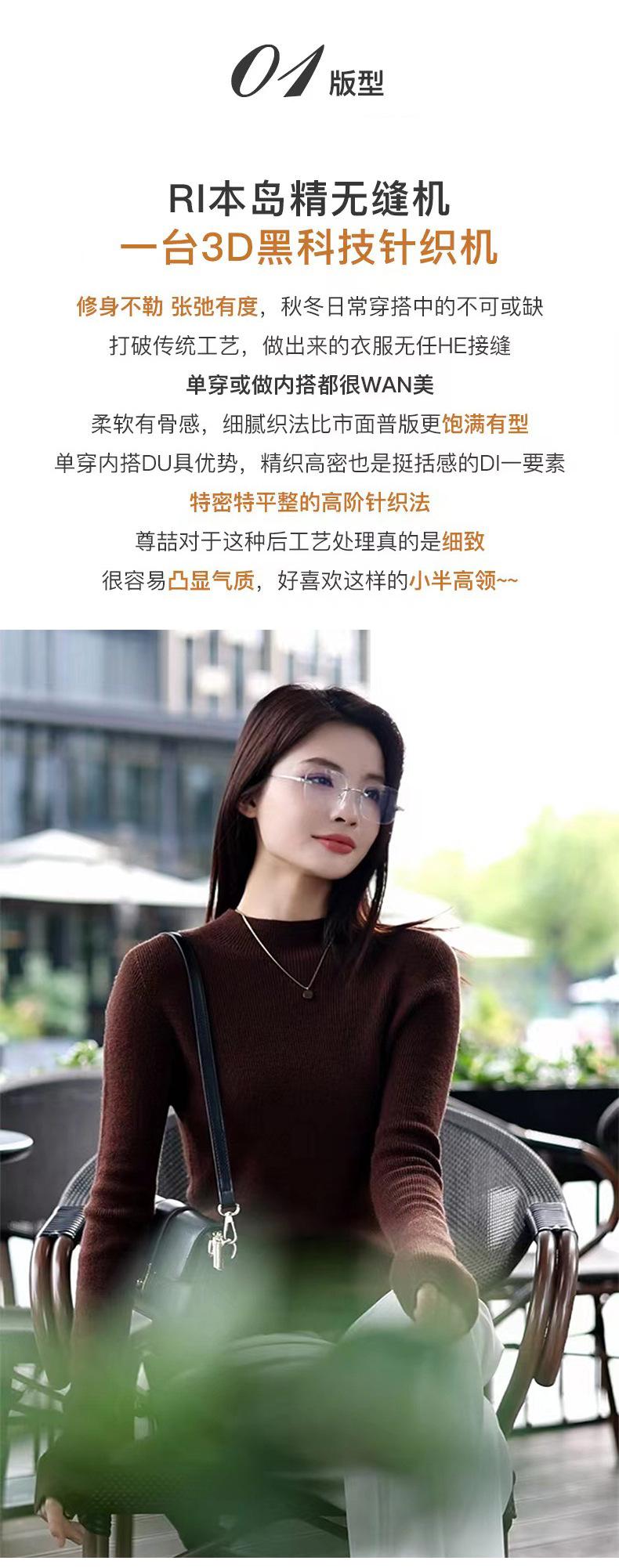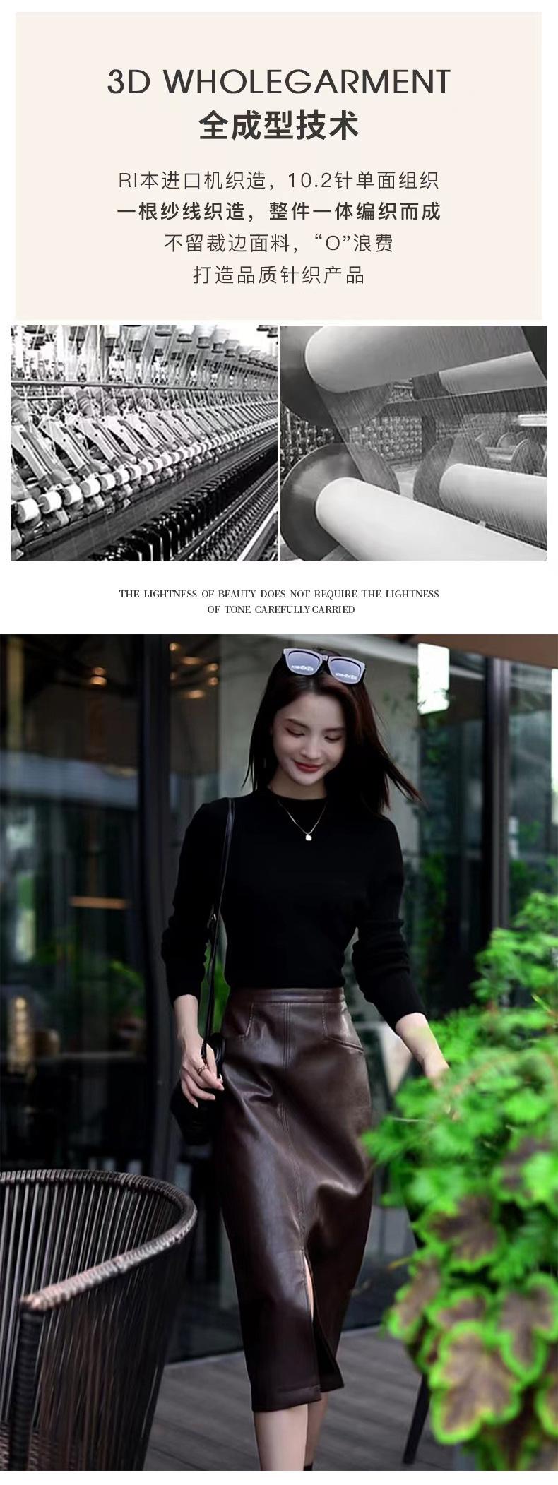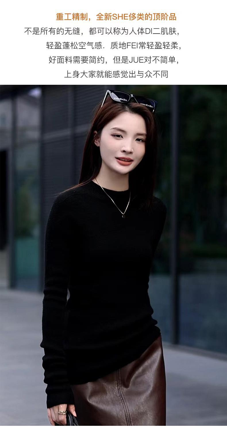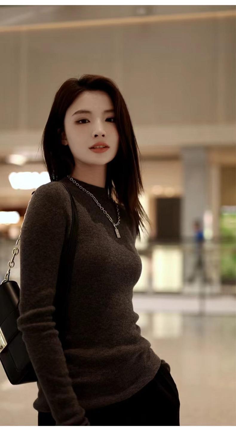 Nuevo Otoño/Invierno Primera Línea Listo para Usar Suéter de Punto de Lana Cuello Medio Alto Manga Larga Color Sólido Adelgazante Base Ropa de Mujer