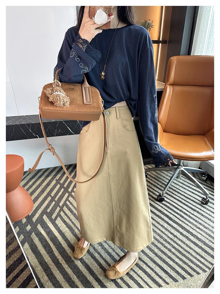 Para que te sea más fácil ponerte, los ojales de las faldas de mezclilla han sido abiertos a máquina antes de salir de fábrica.