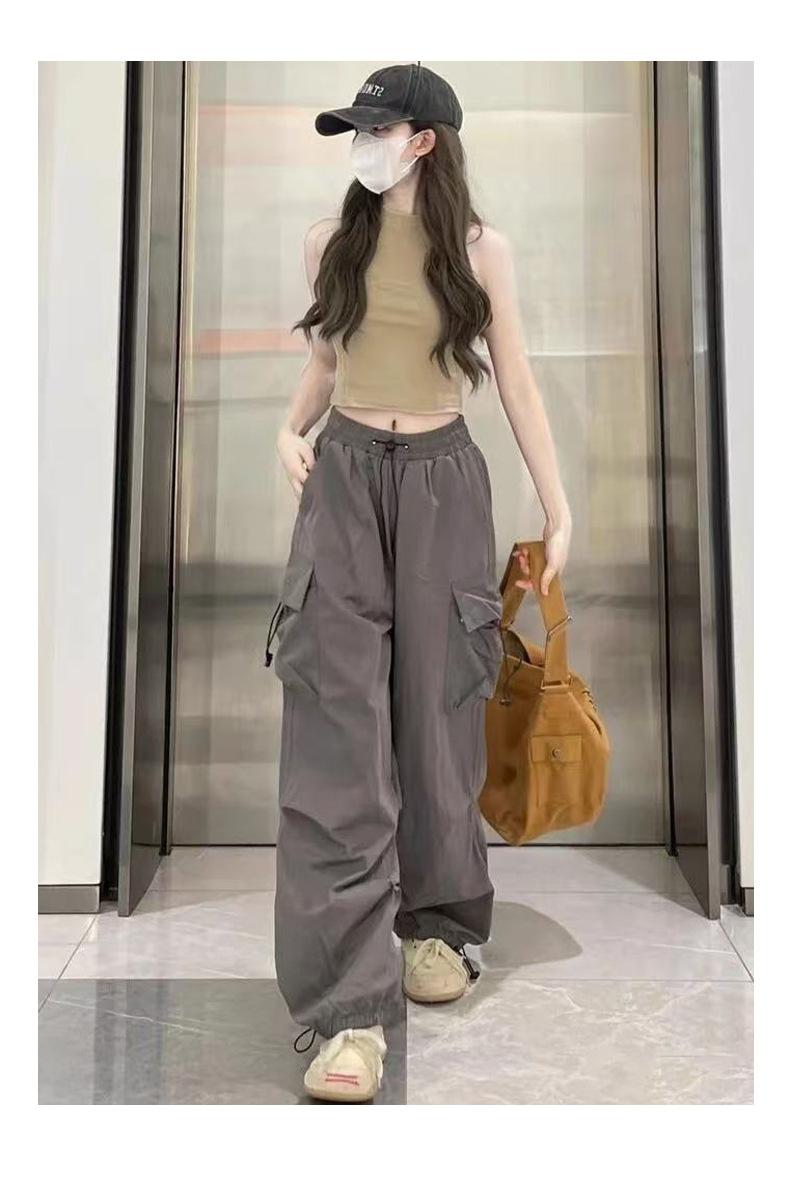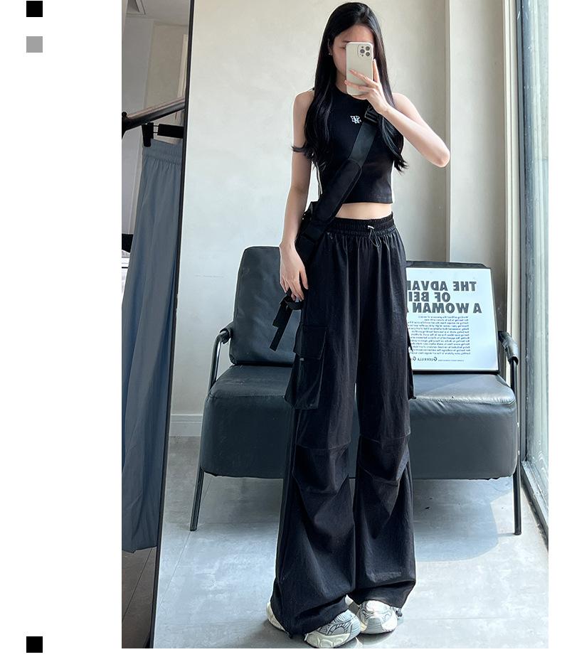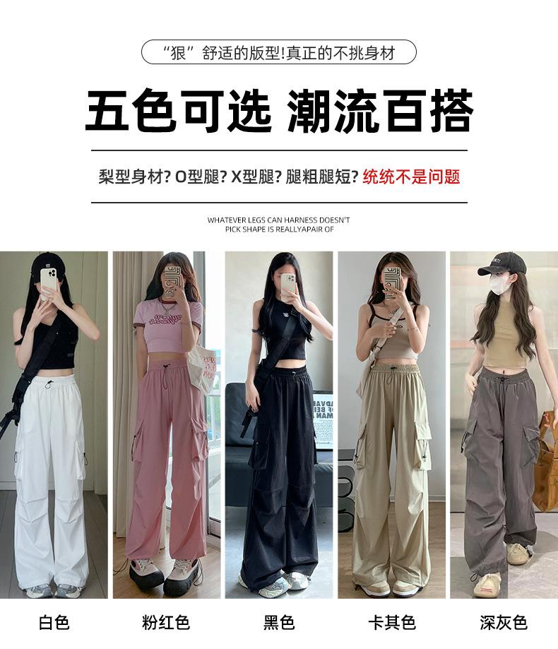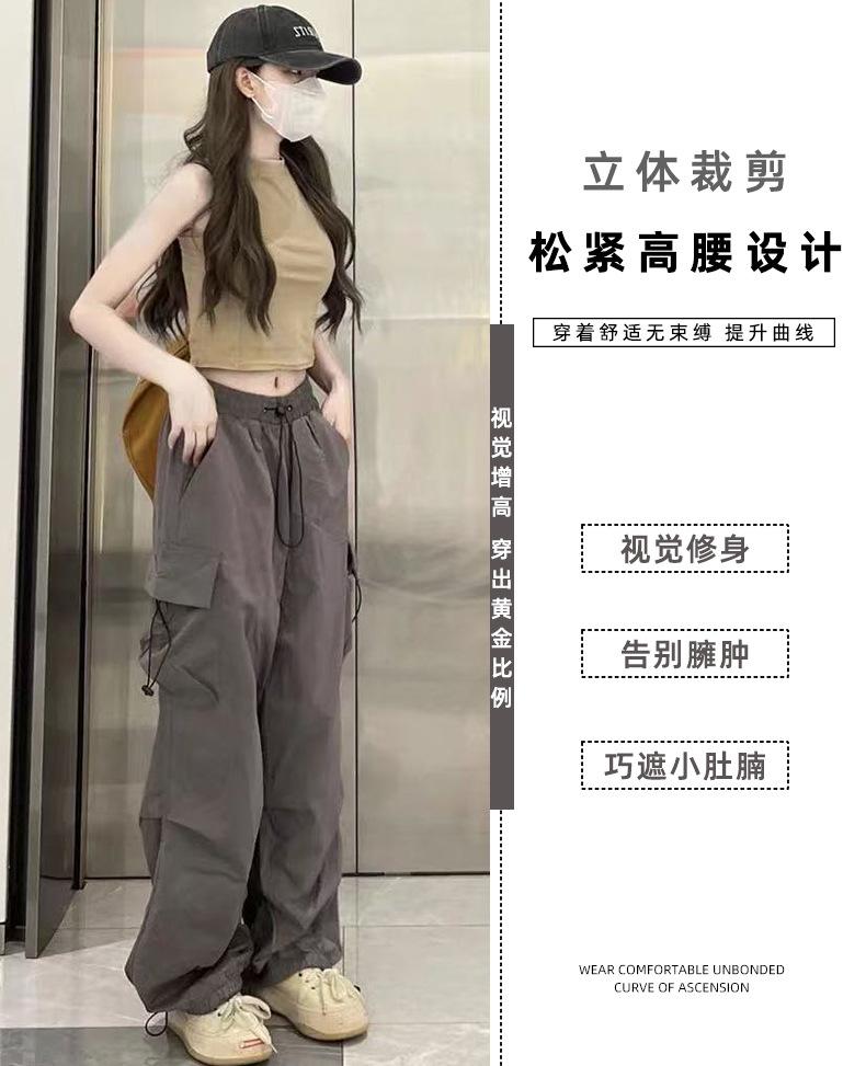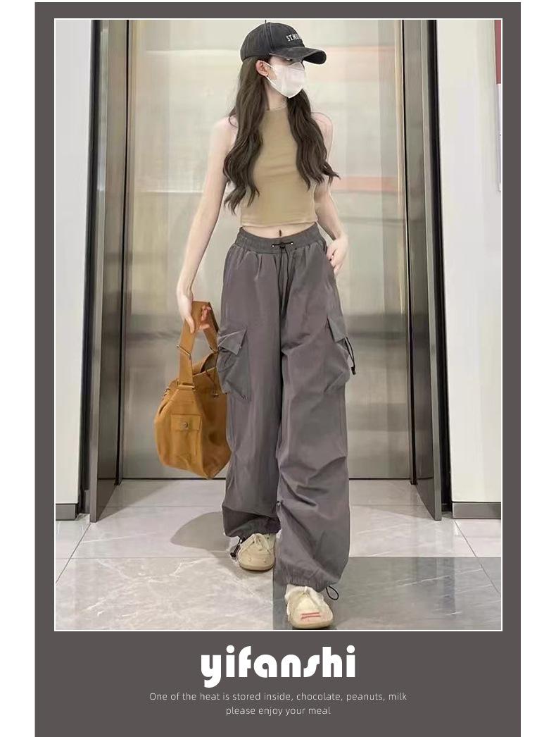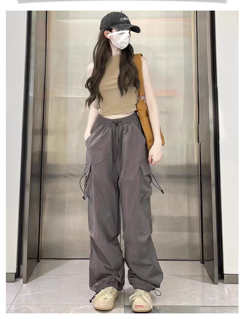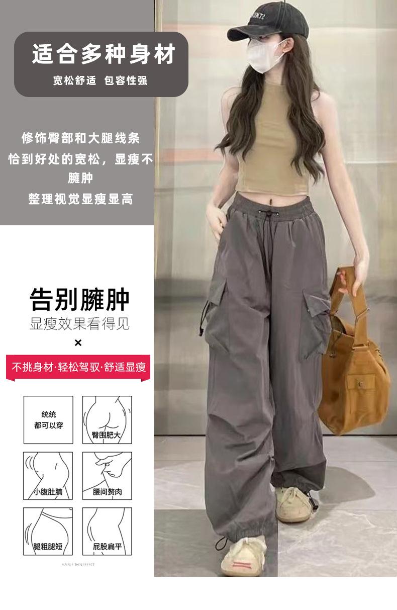 Pantalones Cargo Deportivos Grises para Mujer, Pantalones Delgados de Verano de Cintura Alta Adelgazantes de Seda de Hielo, Pantalones de Senderismo Plisados Holgados de Caída Rápido Secado