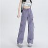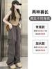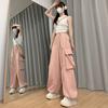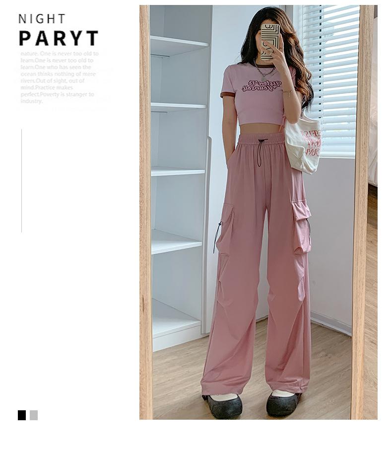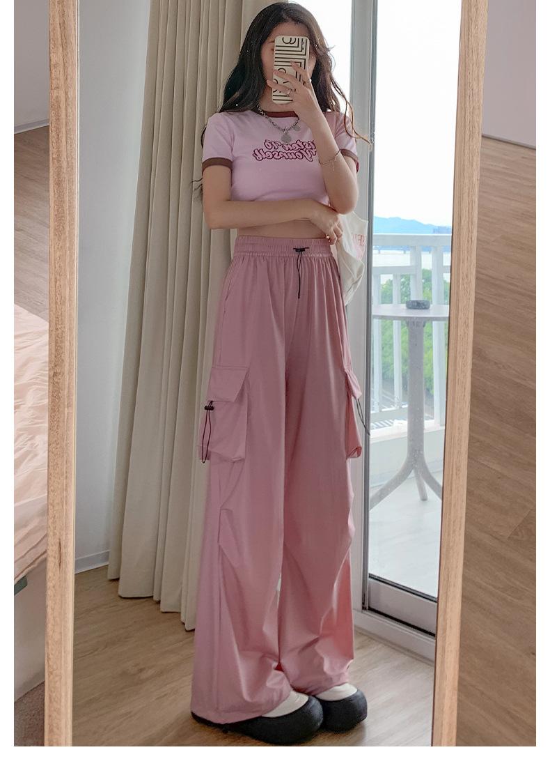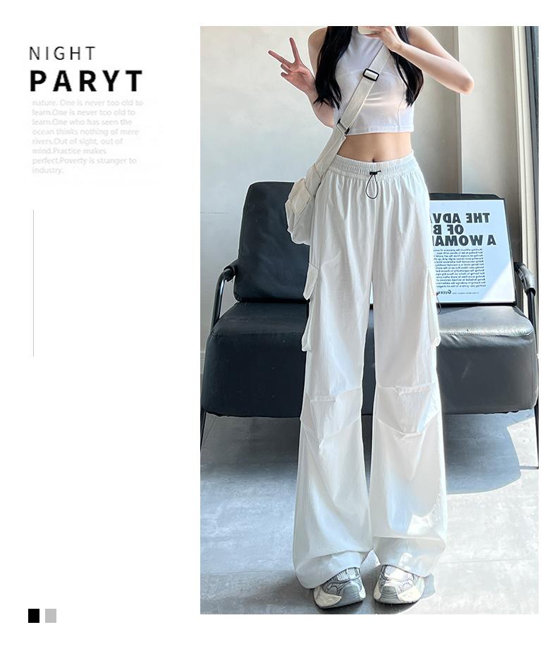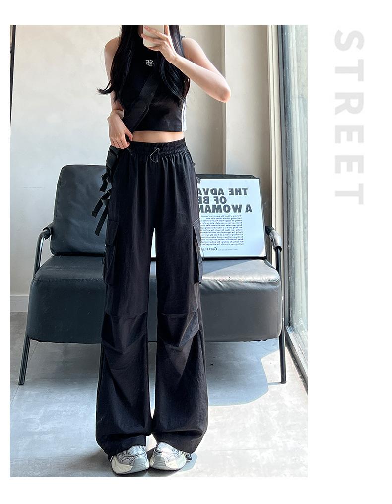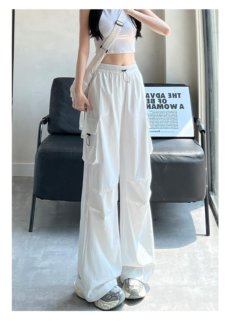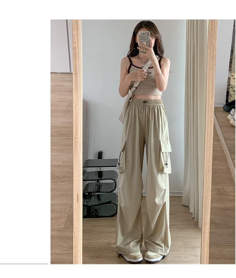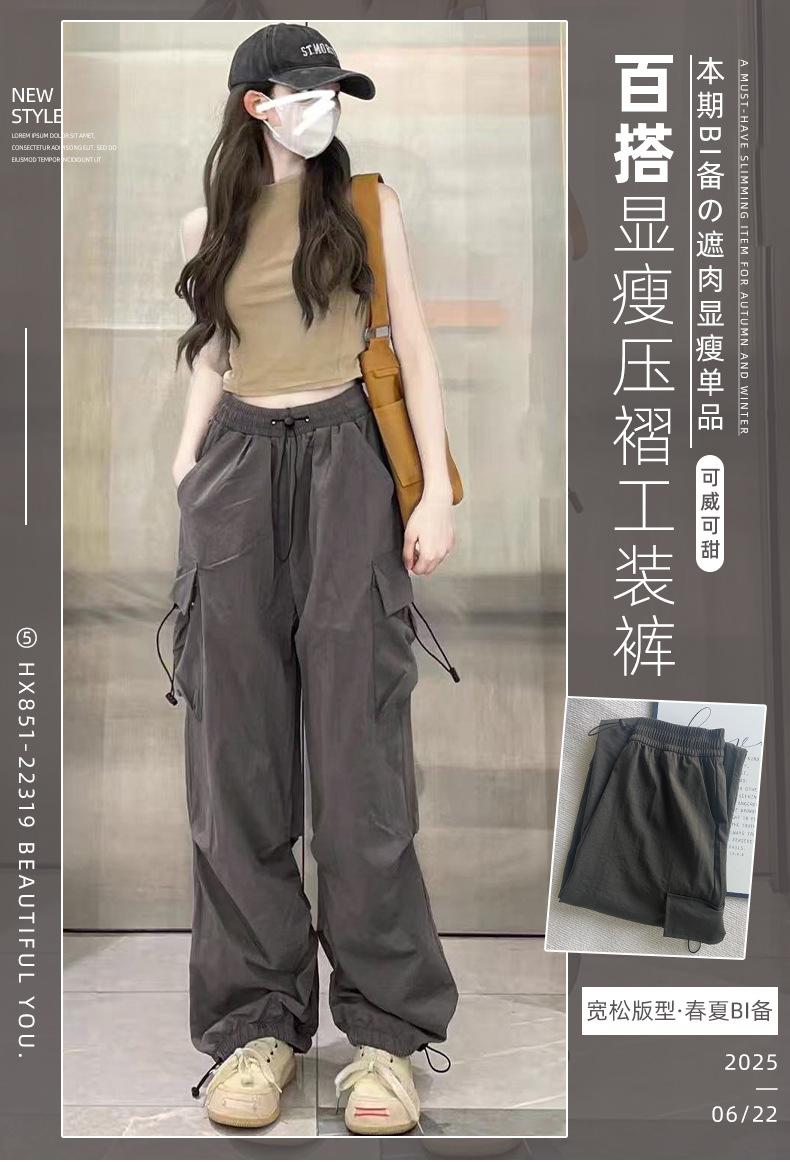 Pantalones Cargo Deportivos Grises para Mujer, Pantalones Delgados de Verano de Cintura Alta Adelgazantes de Seda de Hielo, Pantalones de Senderismo Plisados Holgados de Caída Rápido Secado