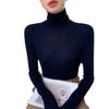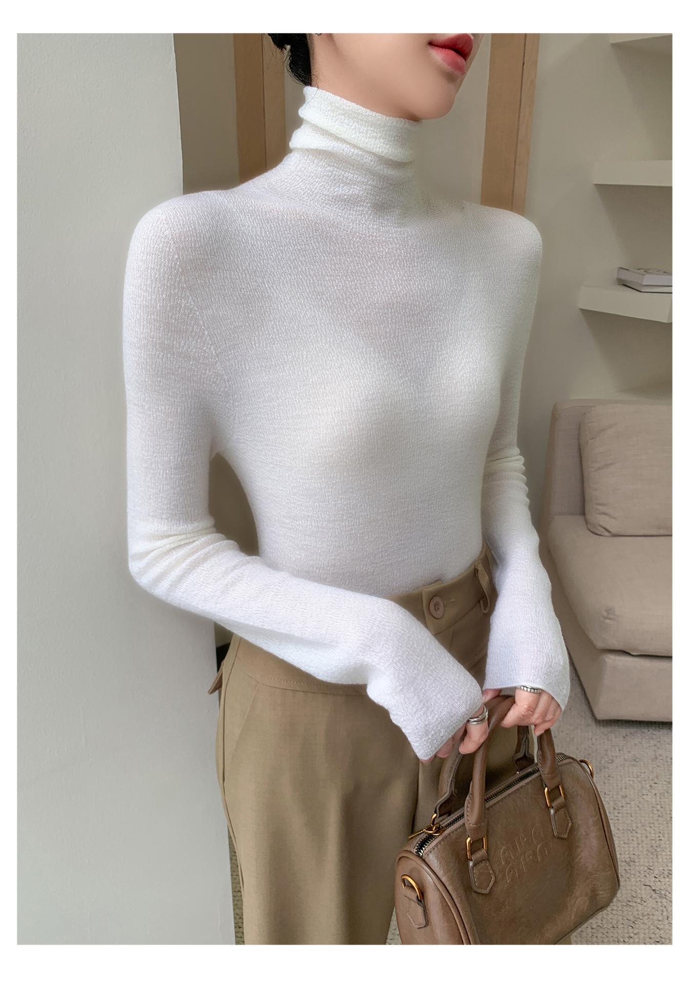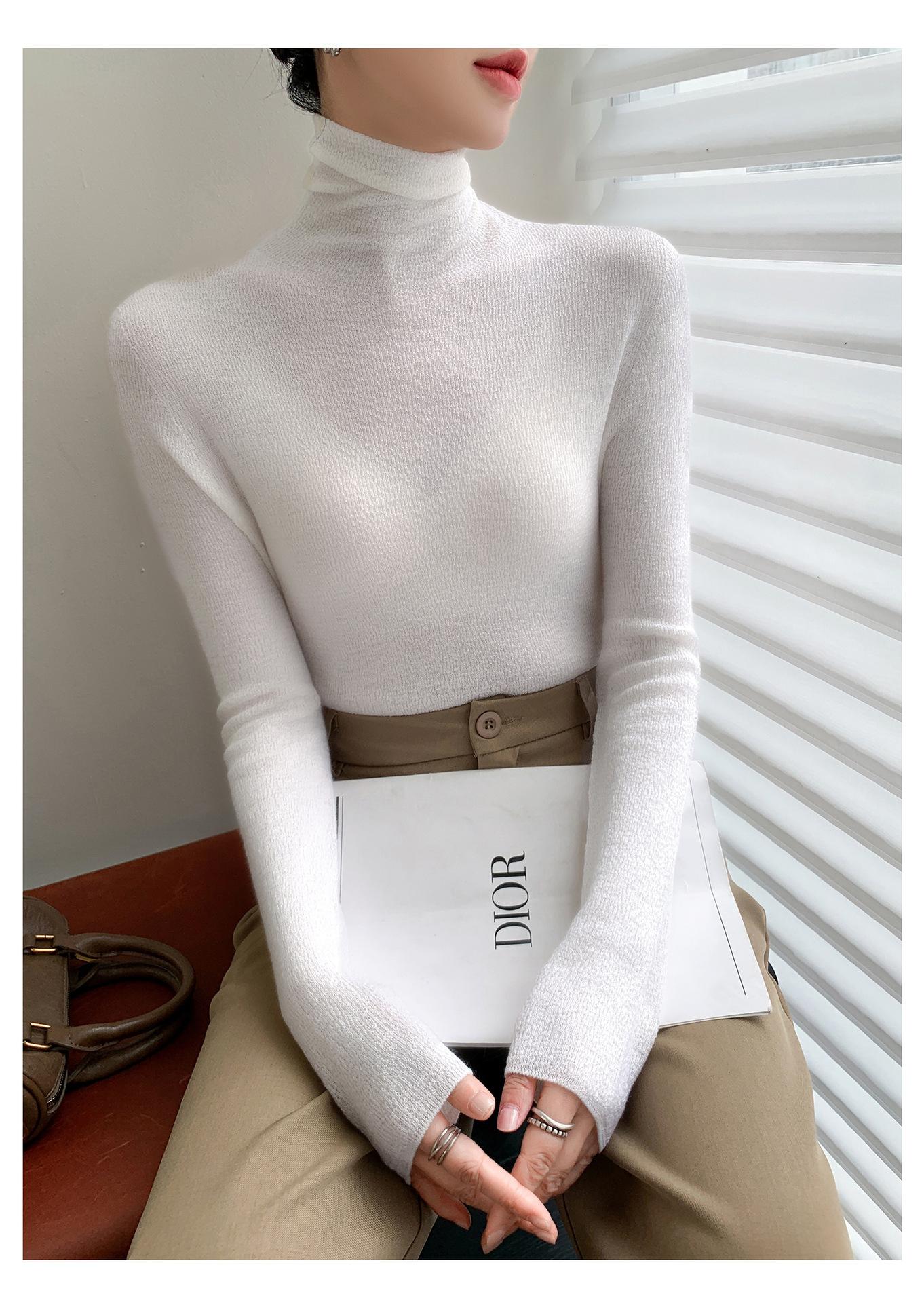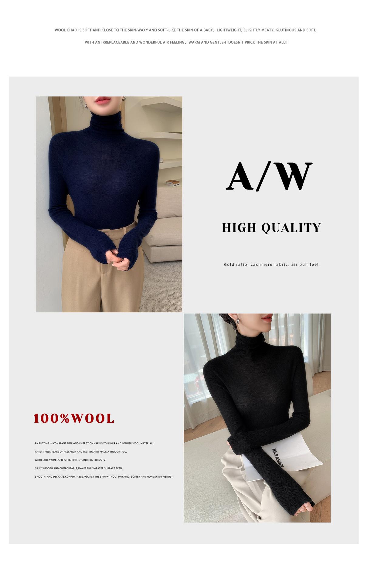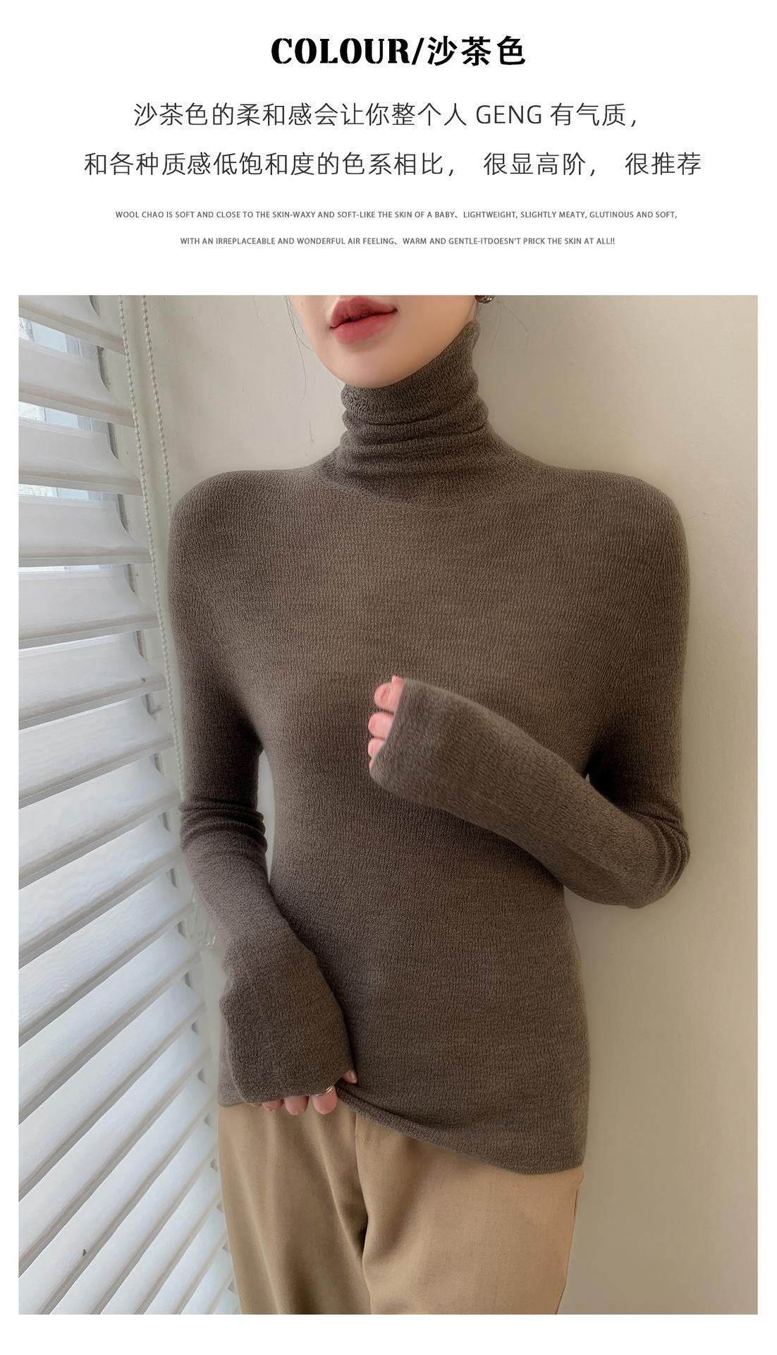 Suéter Delgado de Imitación 2025 Primavera Nuevo Estilo 100% Lana Pura Mujer Cuello Alto Adelgazante Tejido Camiseta Base