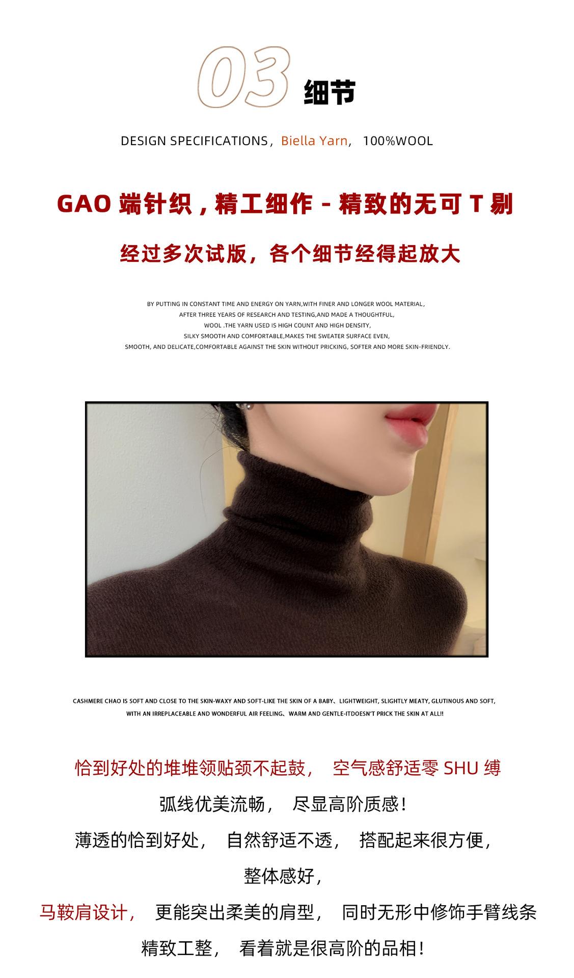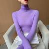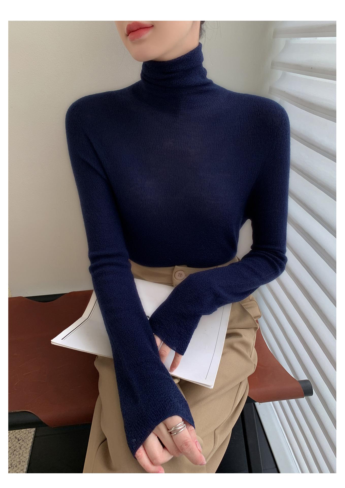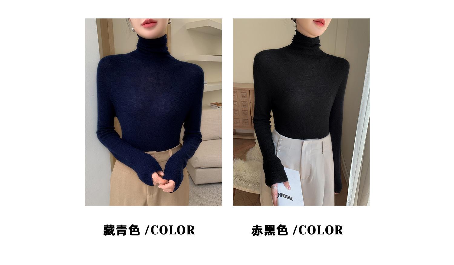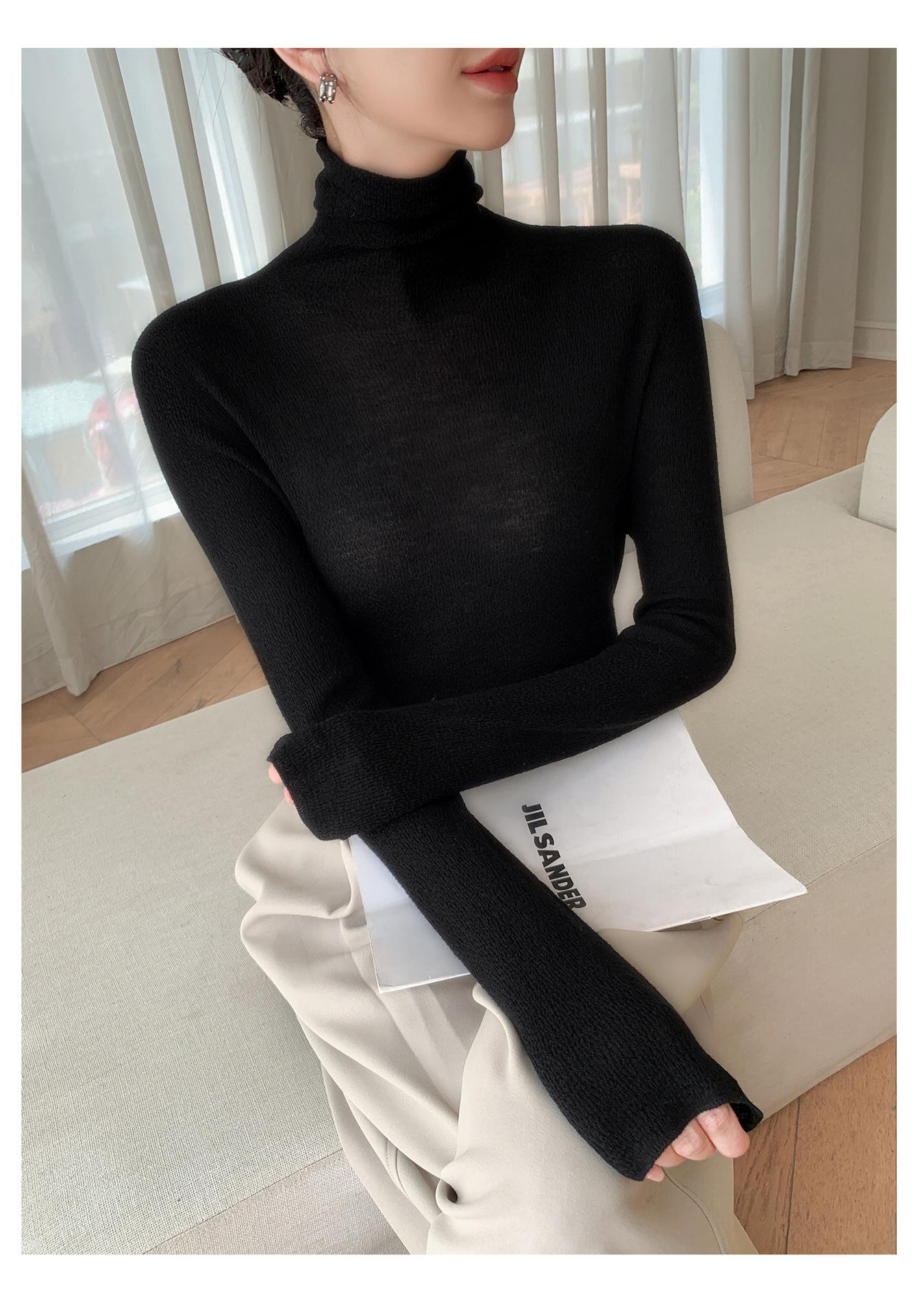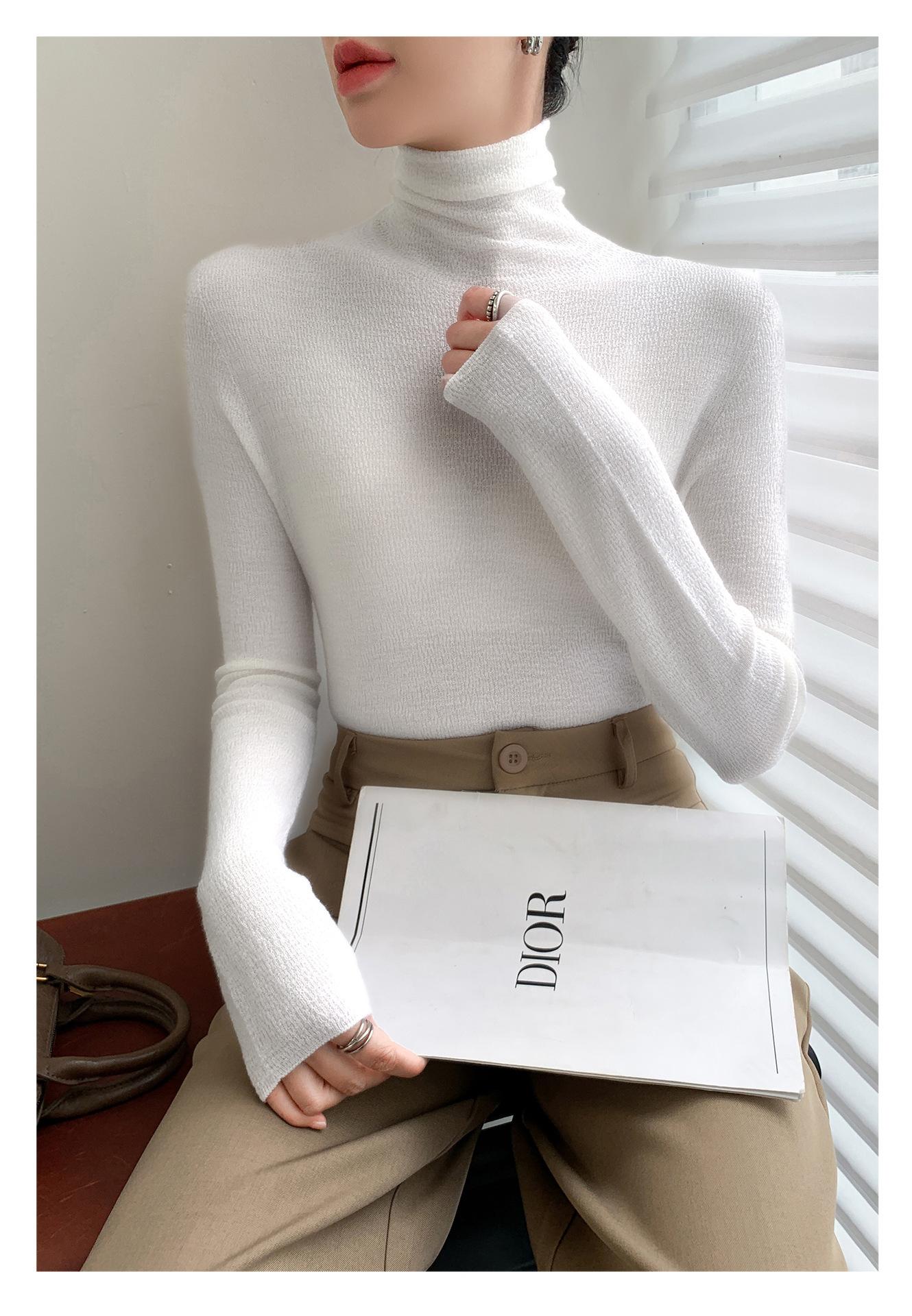 Suéter Delgado de Imitación 2025 Primavera Nuevo Estilo 100% Lana Pura Mujer Cuello Alto Adelgazante Tejido Camiseta Base