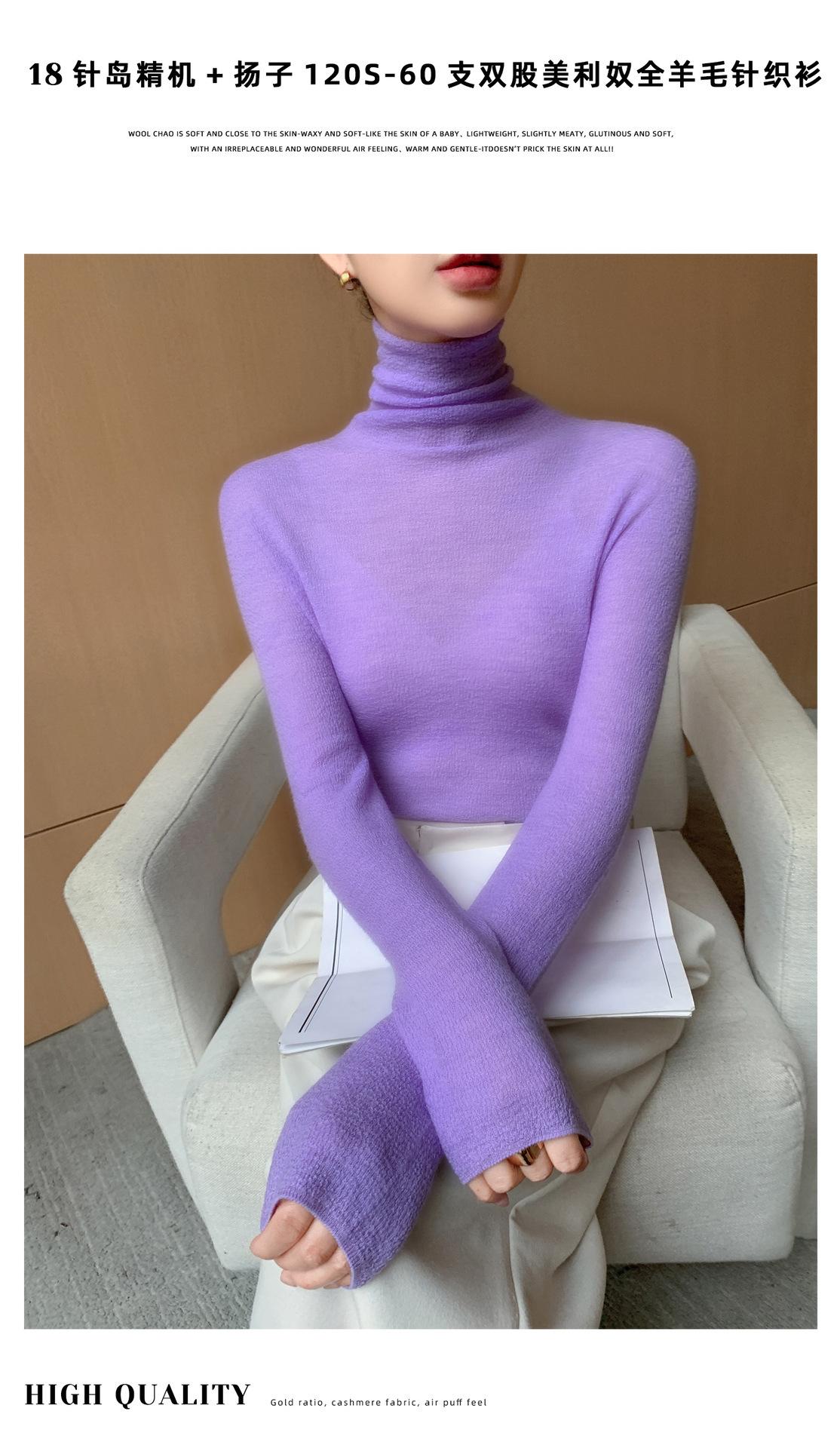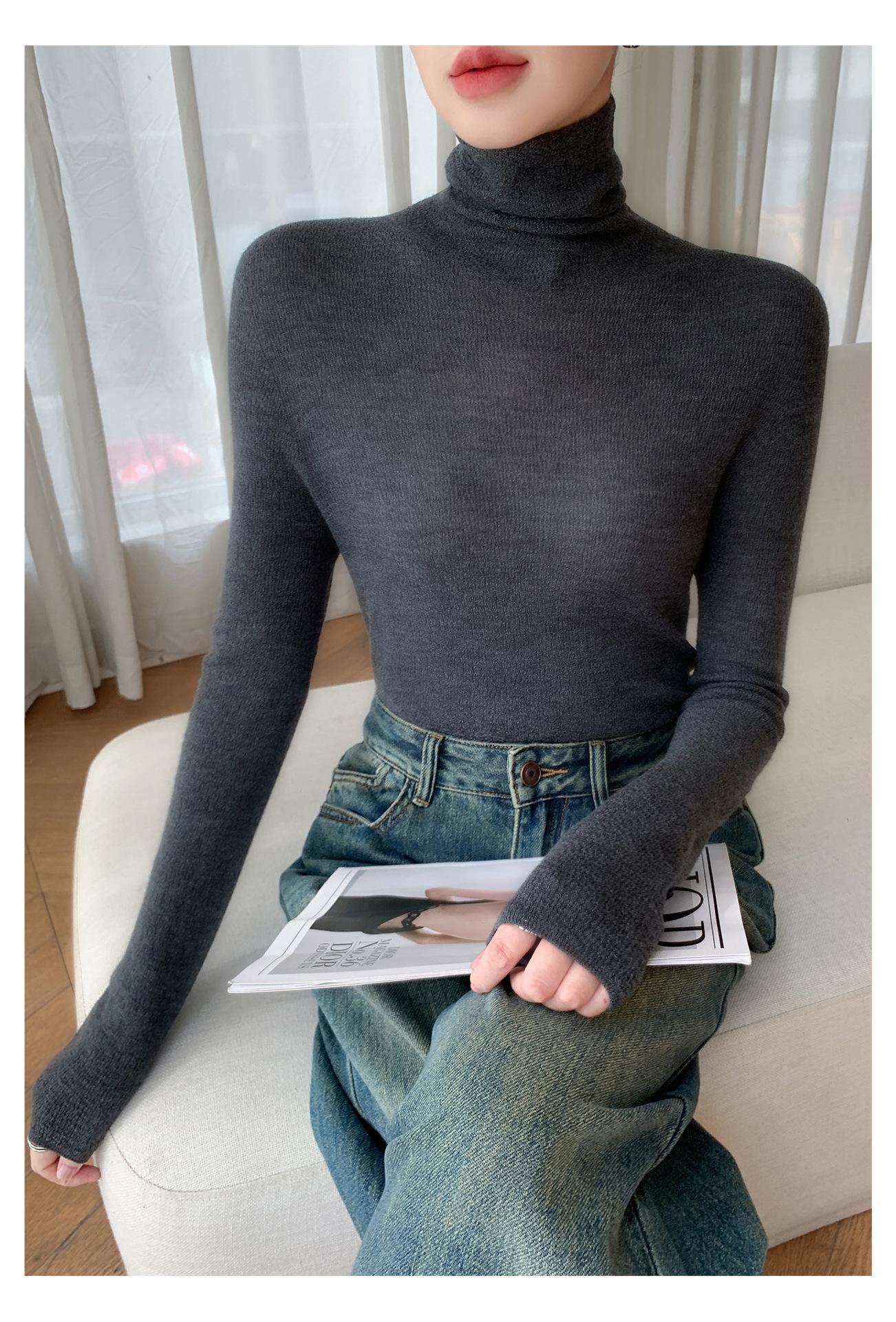 Cuello alto de hilo Yangtze de una pieza sin costuras para mujer, capa base 100% lana merino fina, ropa interior otoño/invierno, nuevo estilo, jersey