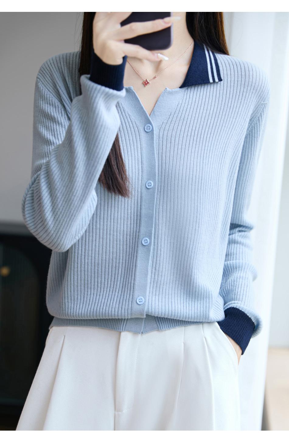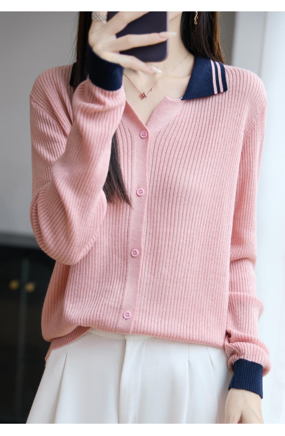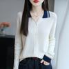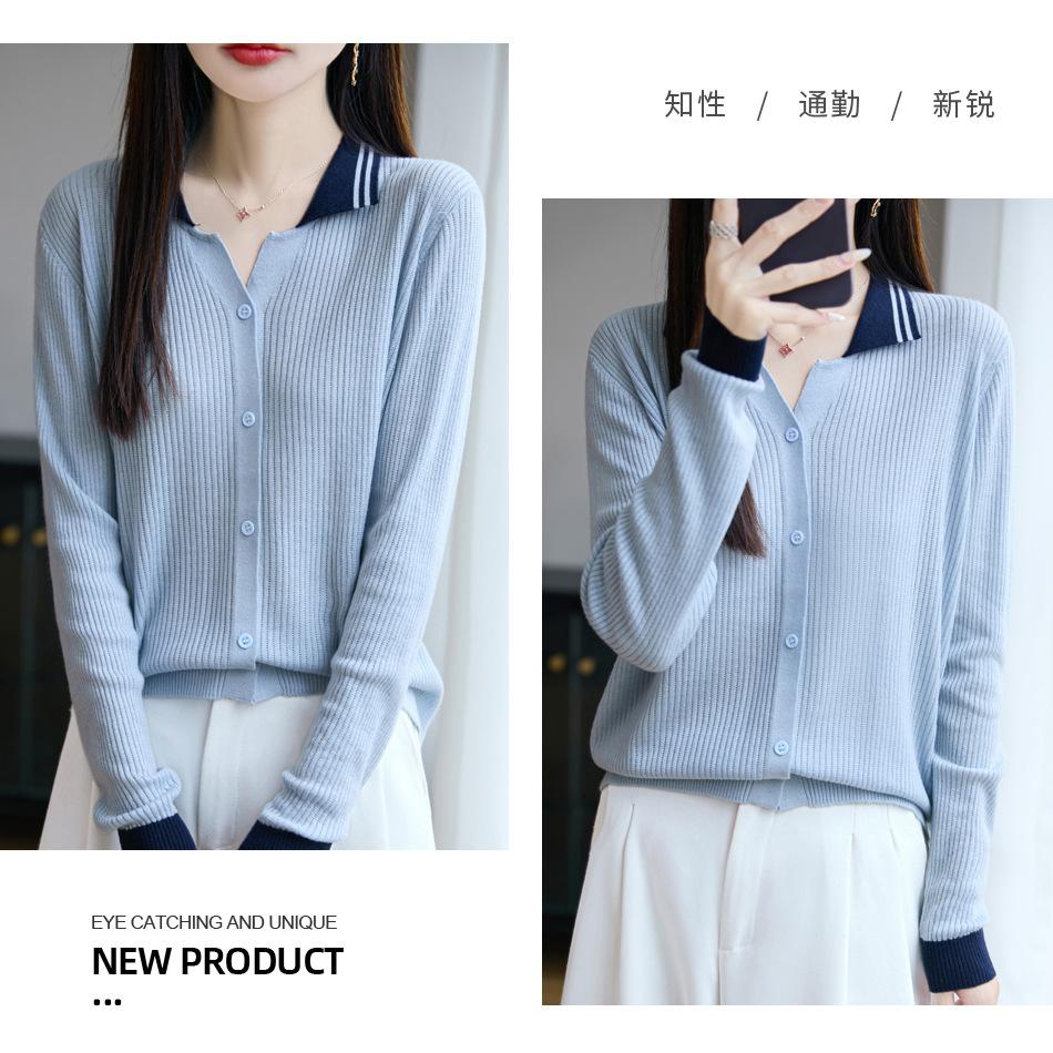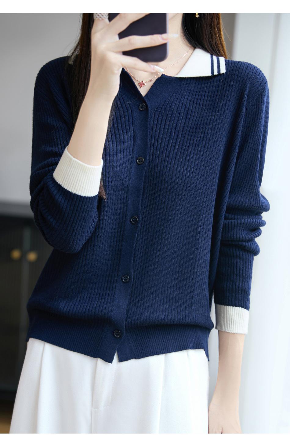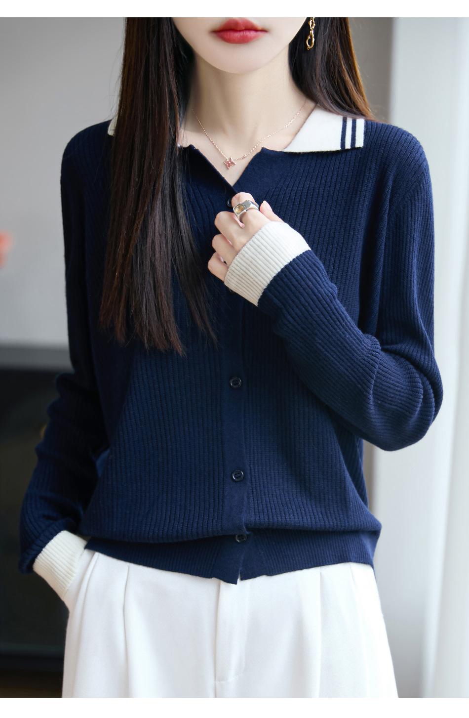 2025 Otoño Nuevo Top Holgado Adelgazante de Manga Larga para Mujer Cárdigan Suéter Color Block con Temperamento para Mujer Prendas de Punto para Dama