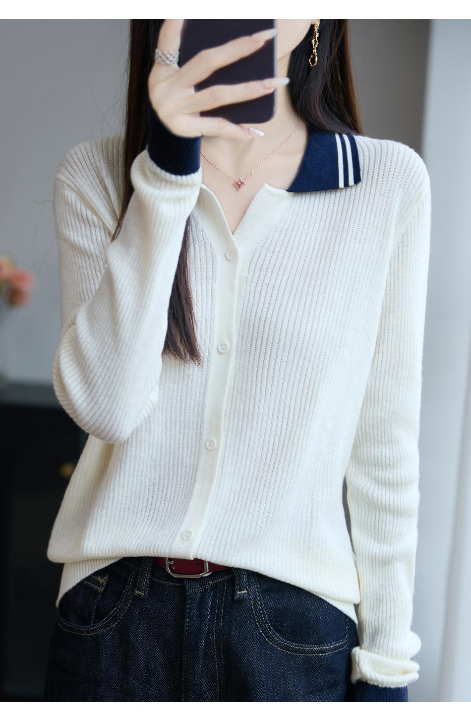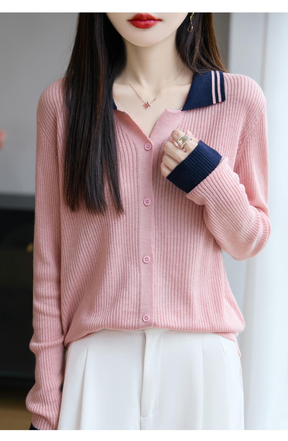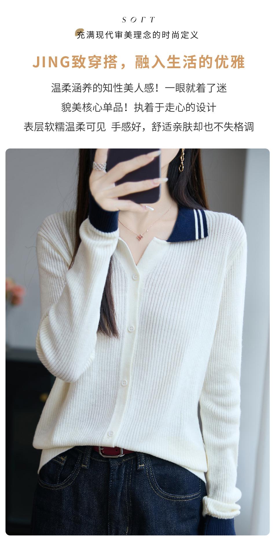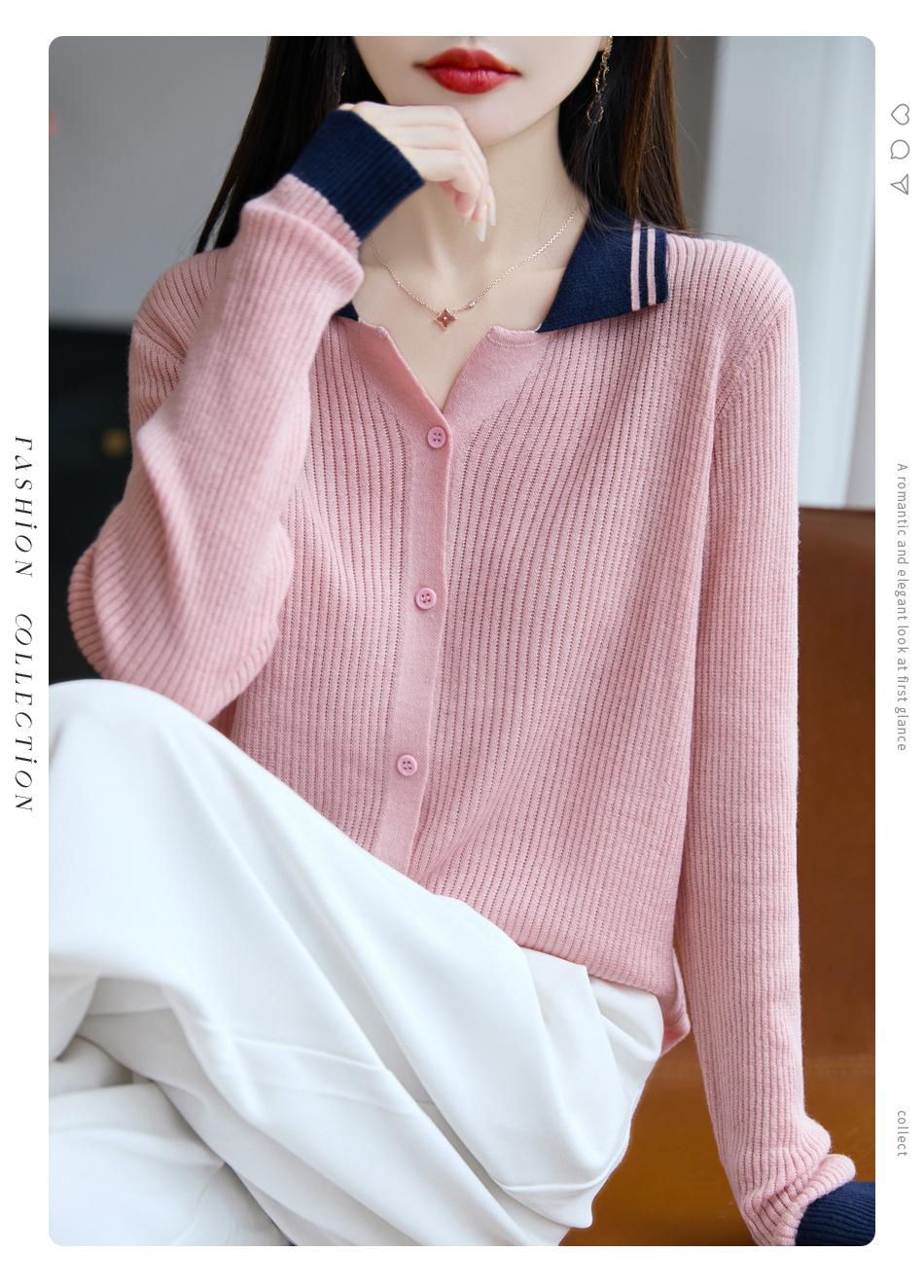 2025 Otoño Nuevo Top Holgado Adelgazante de Manga Larga para Mujer Cárdigan Suéter Color Block con Temperamento para Mujer Prendas de Punto para Dama