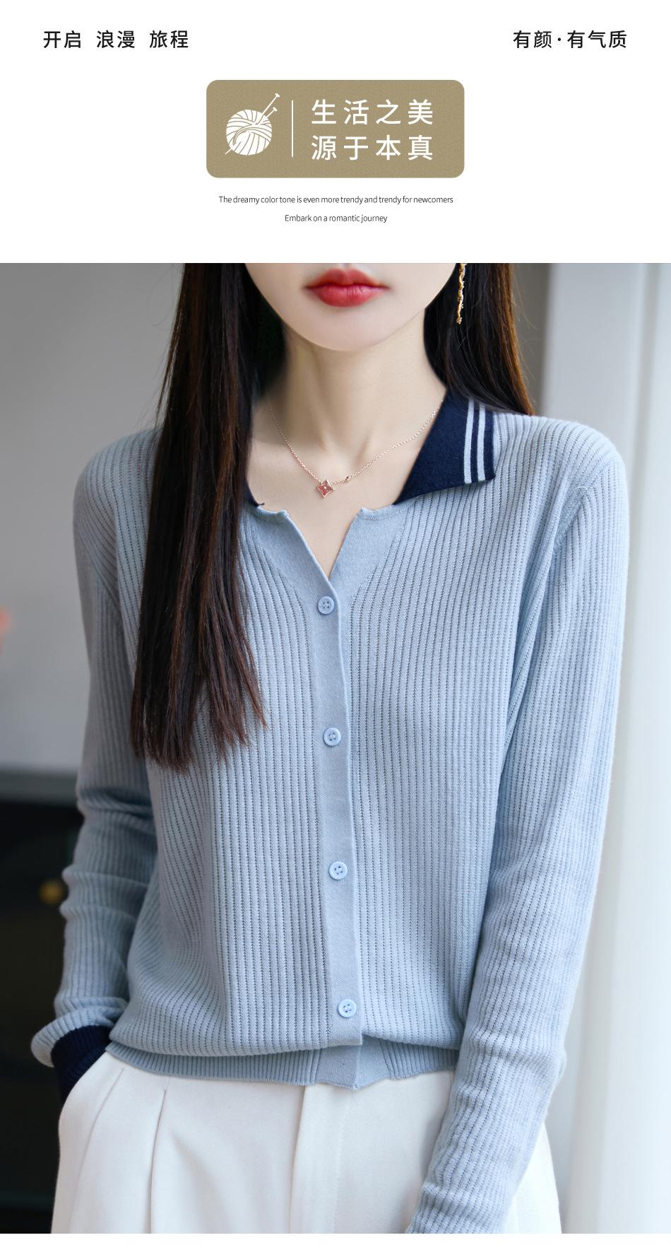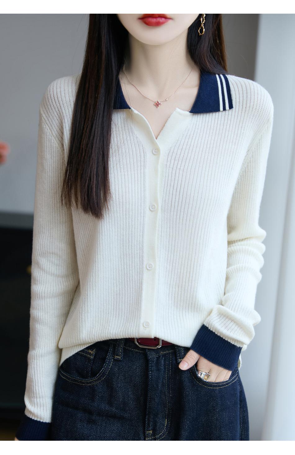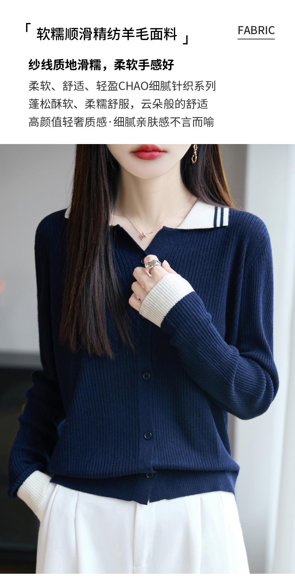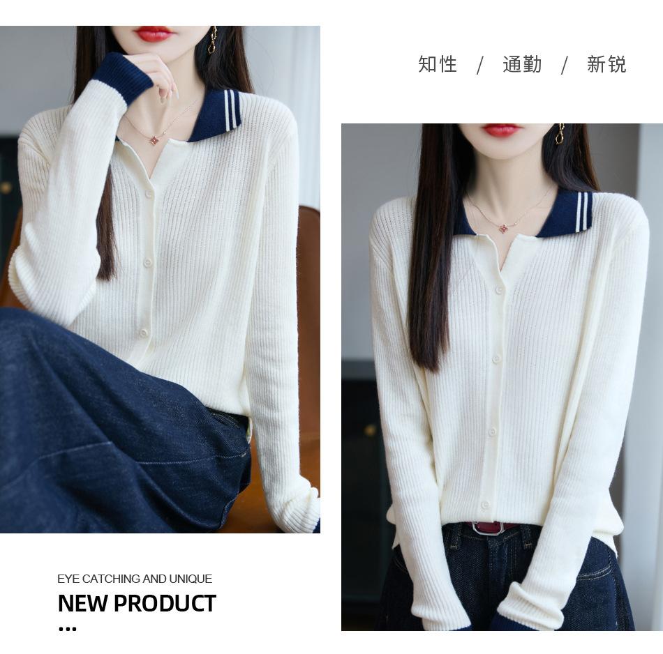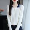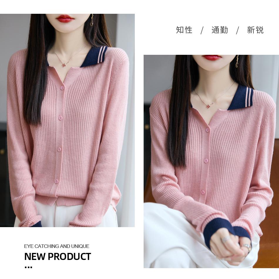 2025 Otoño Nuevo Top Holgado Adelgazante de Manga Larga para Mujer Cárdigan Suéter Color Block con Temperamento para Mujer Prendas de Punto para Dama