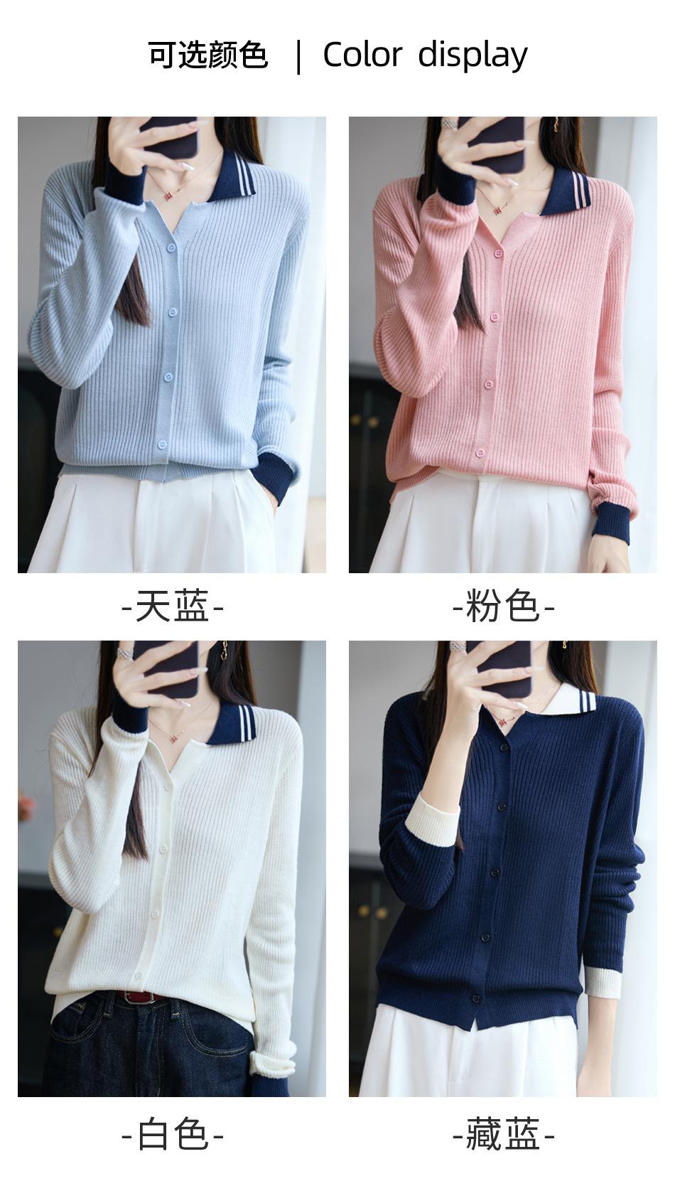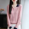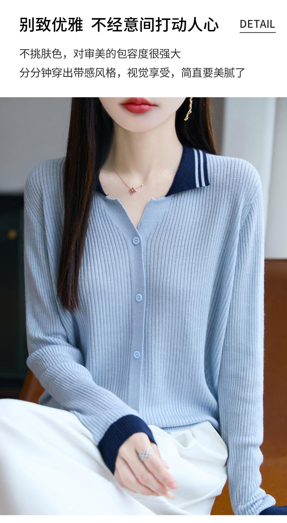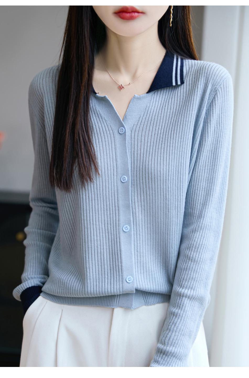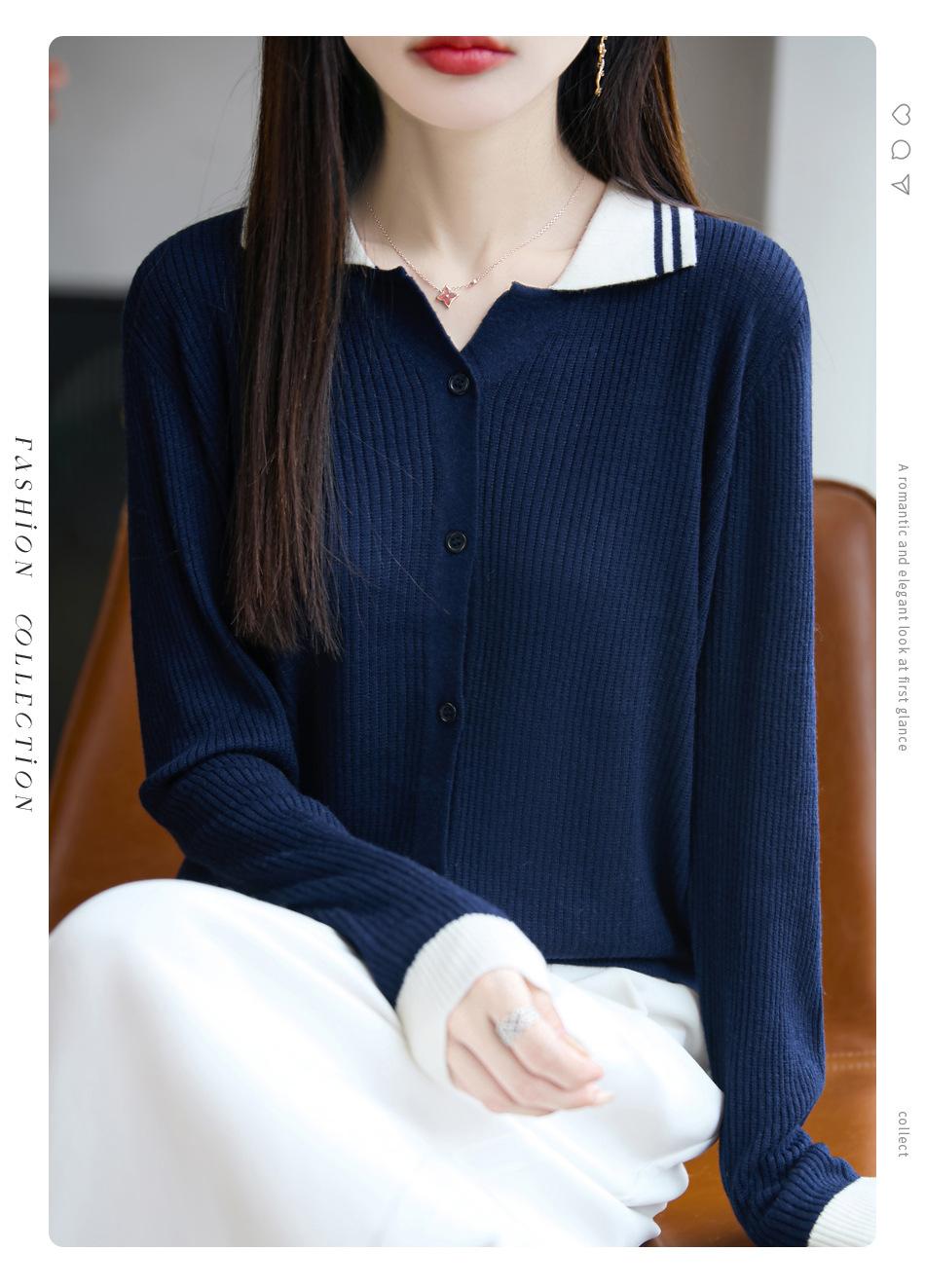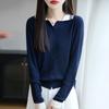 2025 Otoño Nuevo Top Holgado Adelgazante de Manga Larga para Mujer Cárdigan Suéter Color Block con Temperamento para Mujer Prendas de Punto para Dama