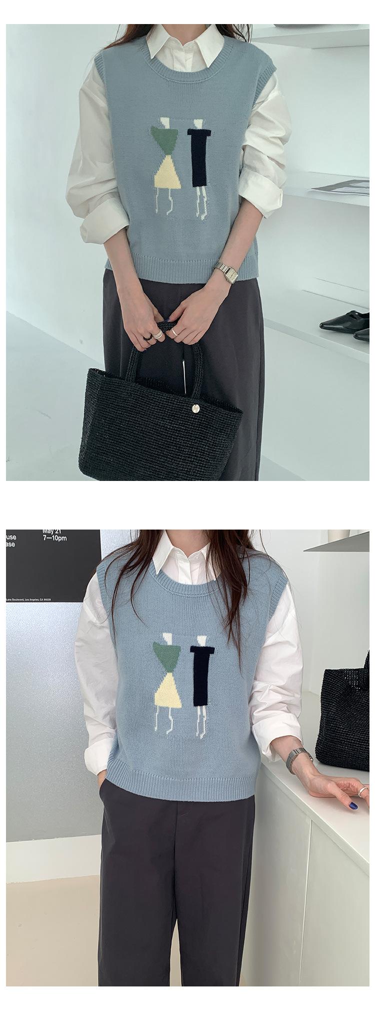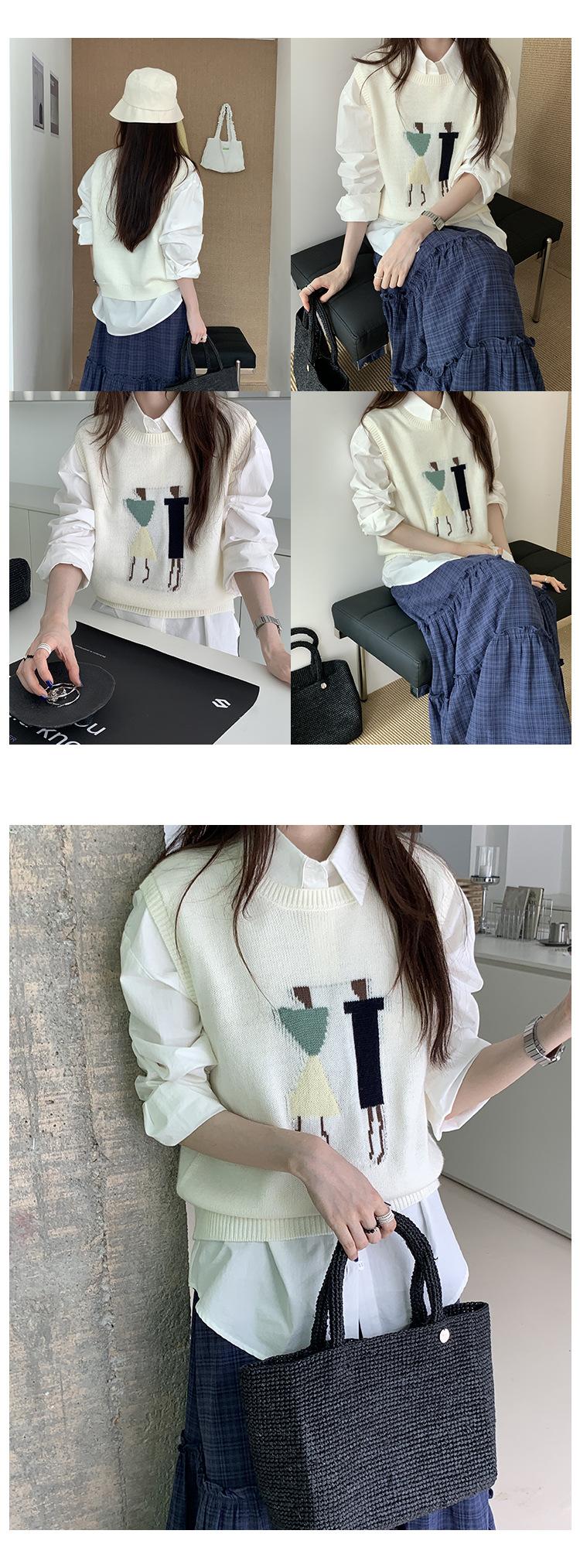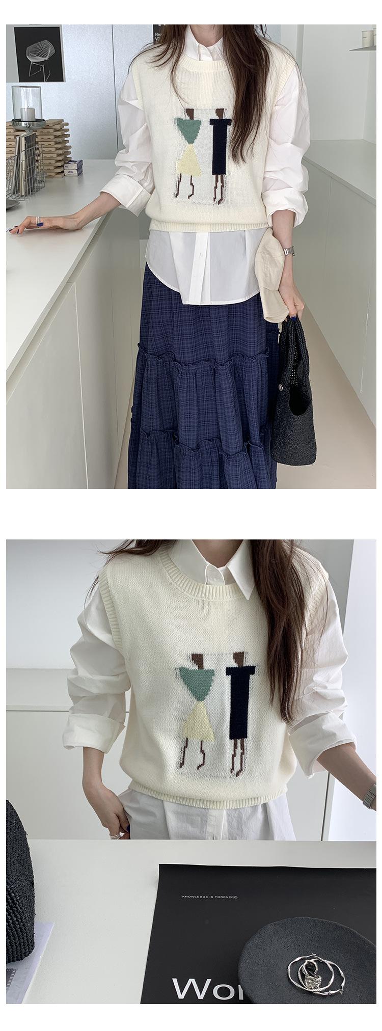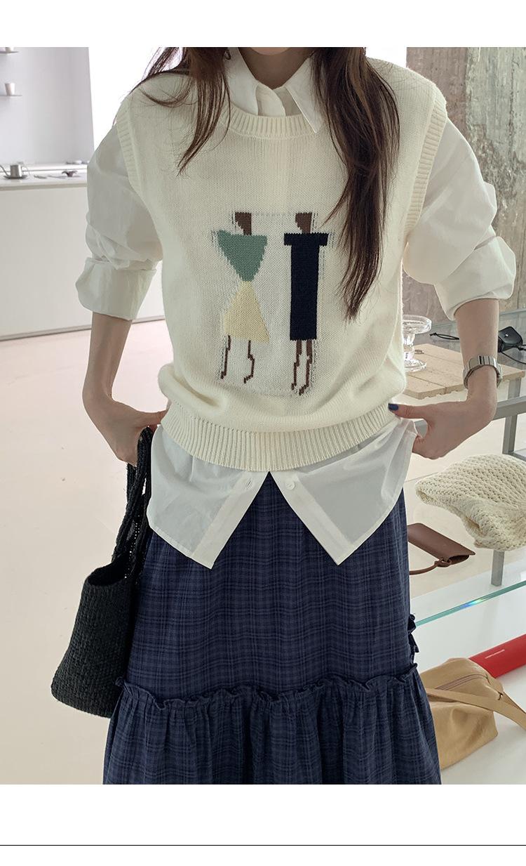 Divertido Chaleco de Punto Jacquard Reductor de Edad Suéter sin Mangas para Mujer Otoño 2025 Nuevo Sentido del Diseño Coreano para Superponer