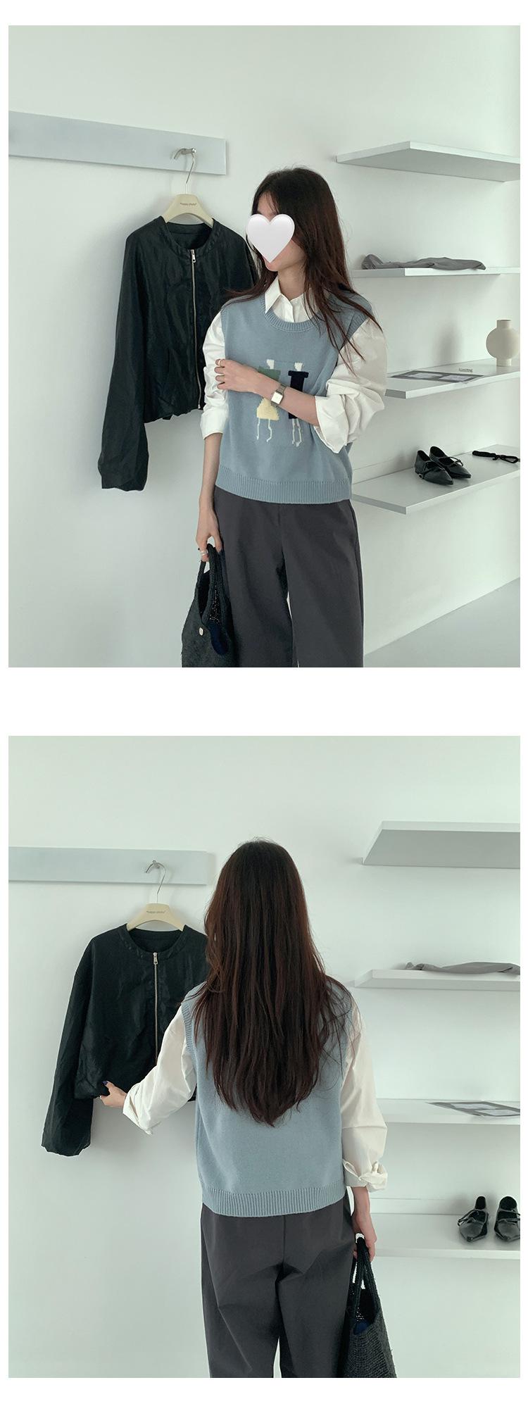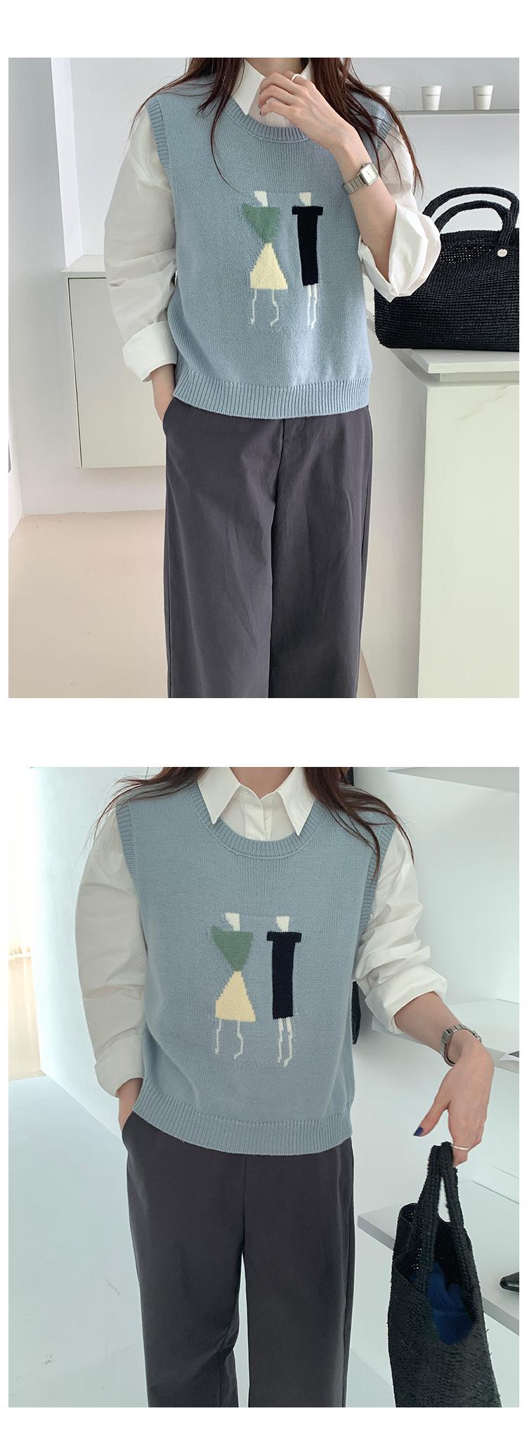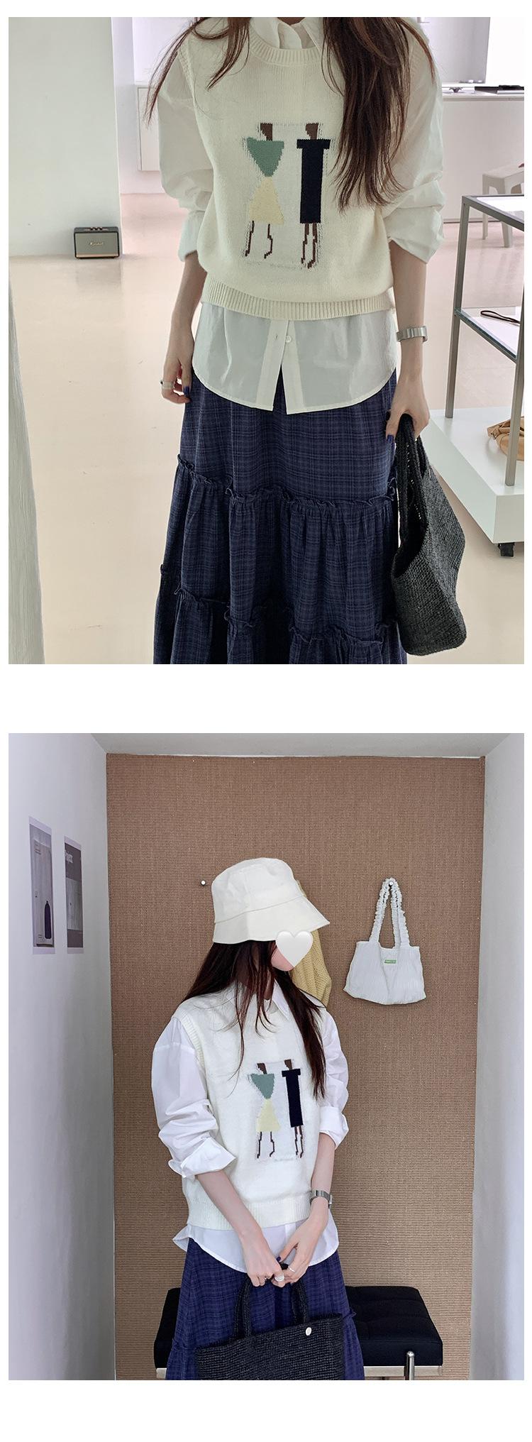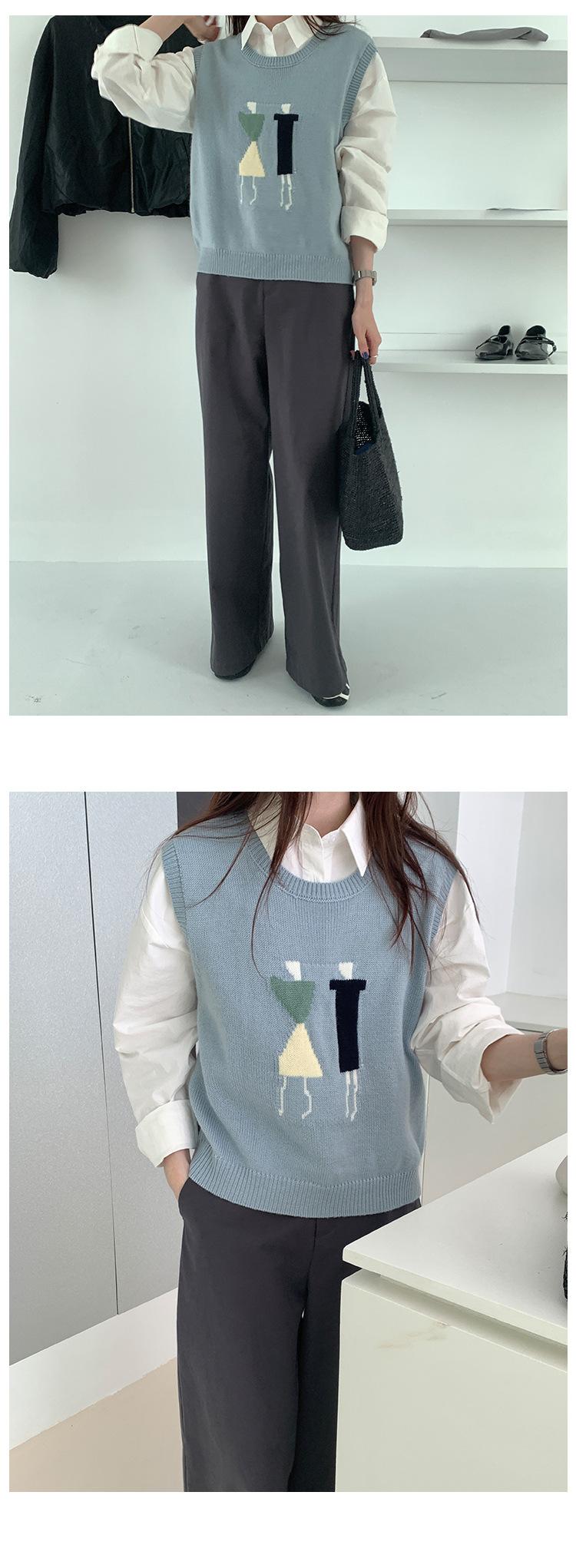 Divertido Chaleco de Punto Jacquard Reductor de Edad Suéter sin Mangas para Mujer Otoño 2025 Nuevo Sentido del Diseño Coreano para Superponer
