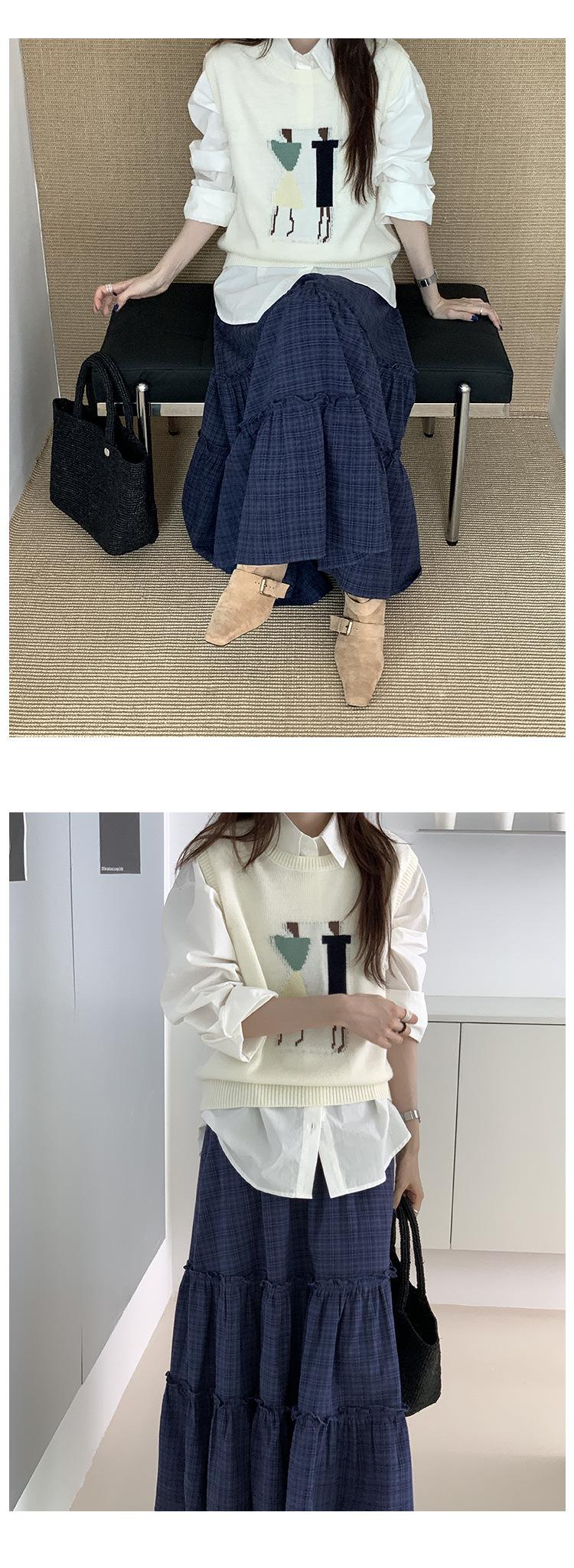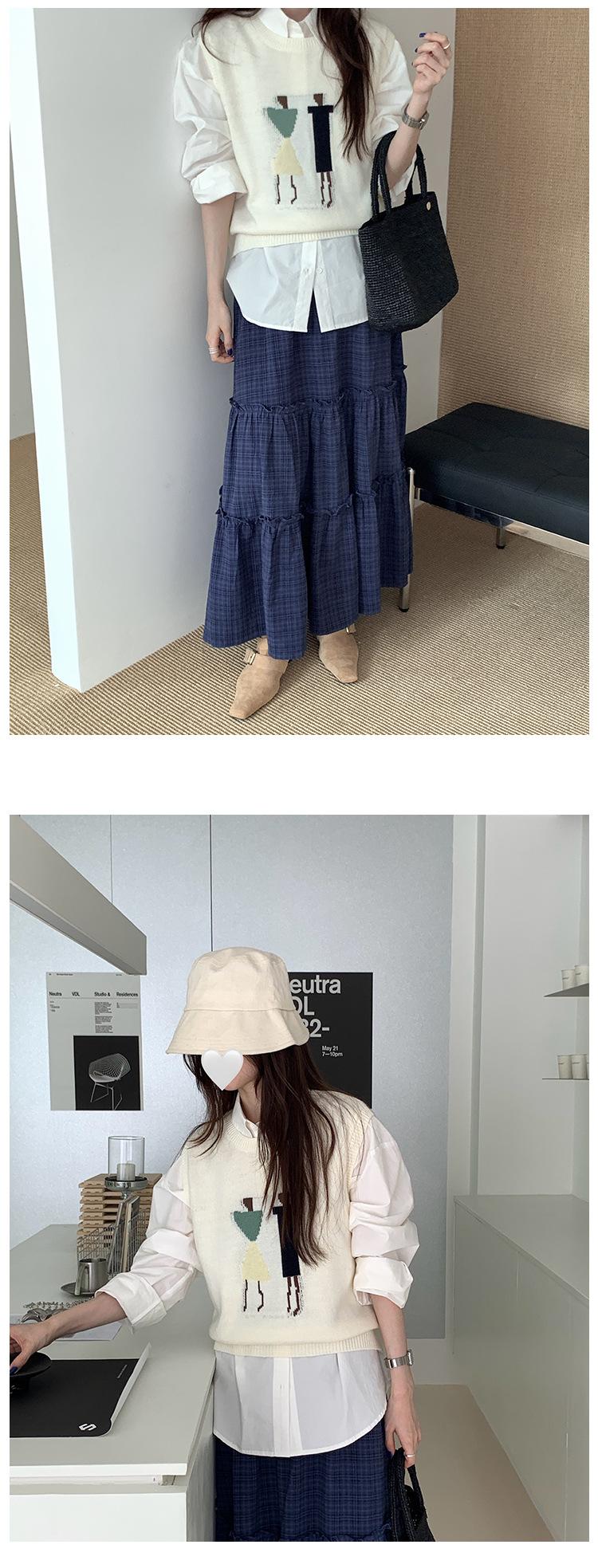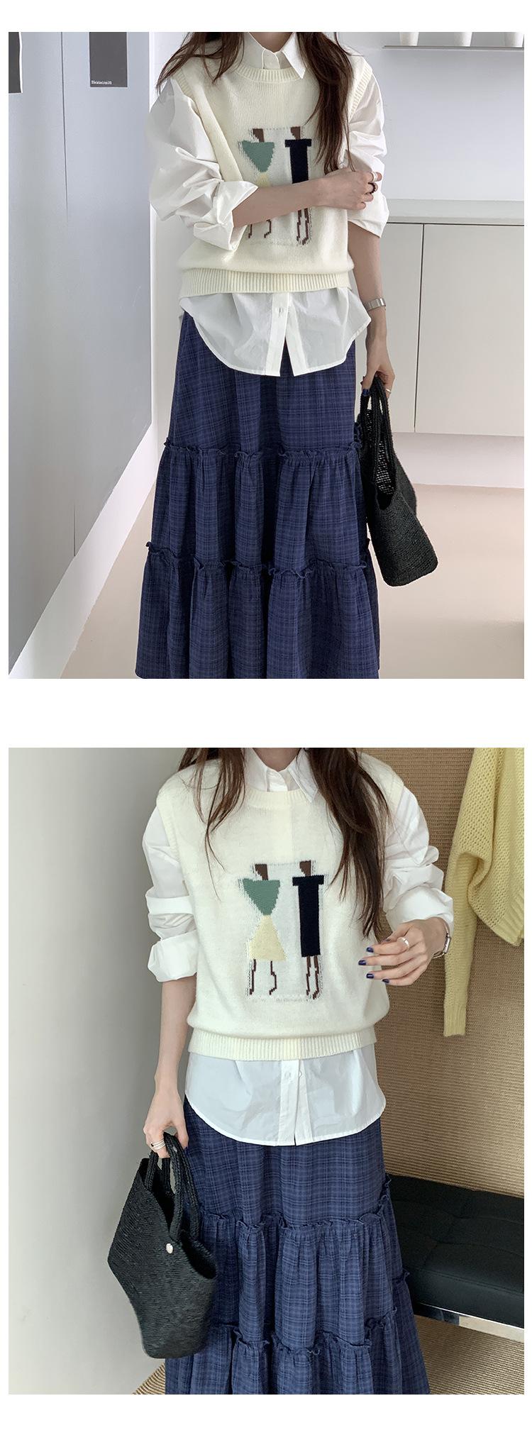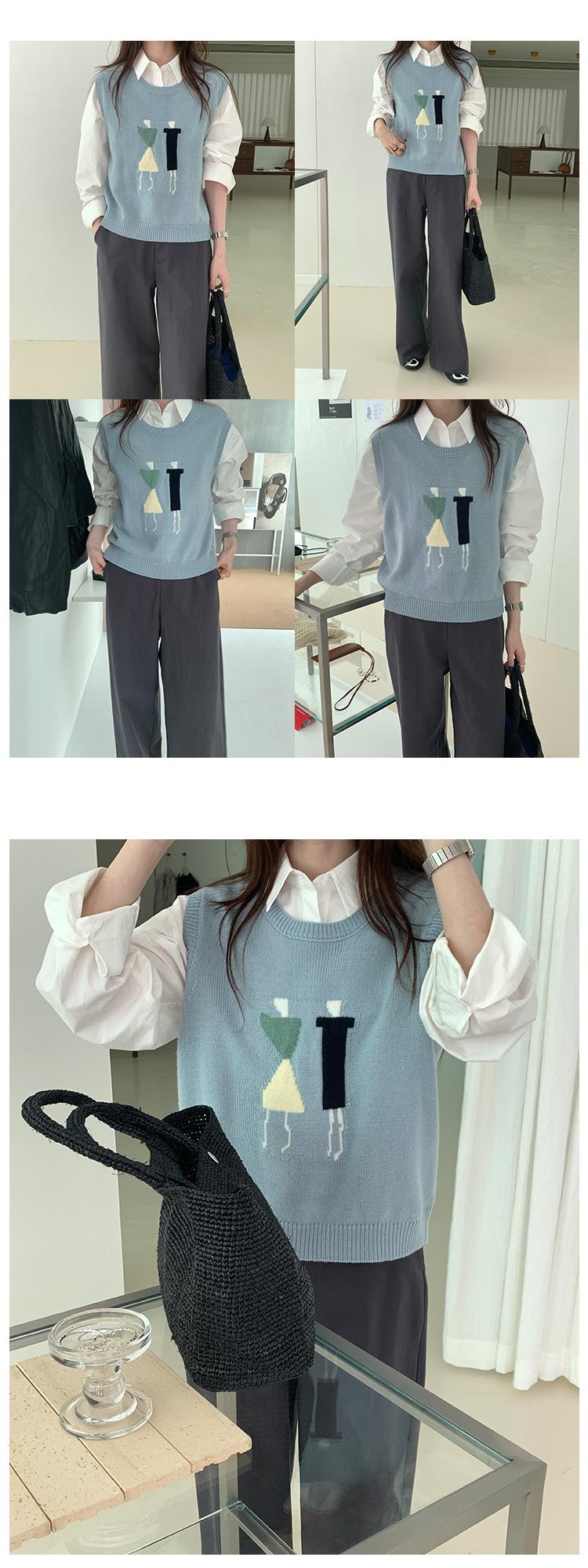 Divertido Chaleco de Punto Jacquard Reductor de Edad Suéter sin Mangas para Mujer Otoño 2025 Nuevo Sentido del Diseño Coreano para Superponer
