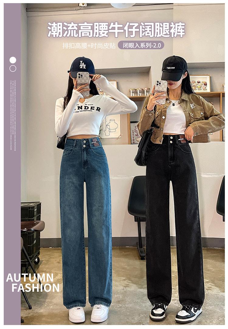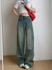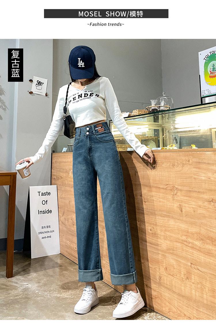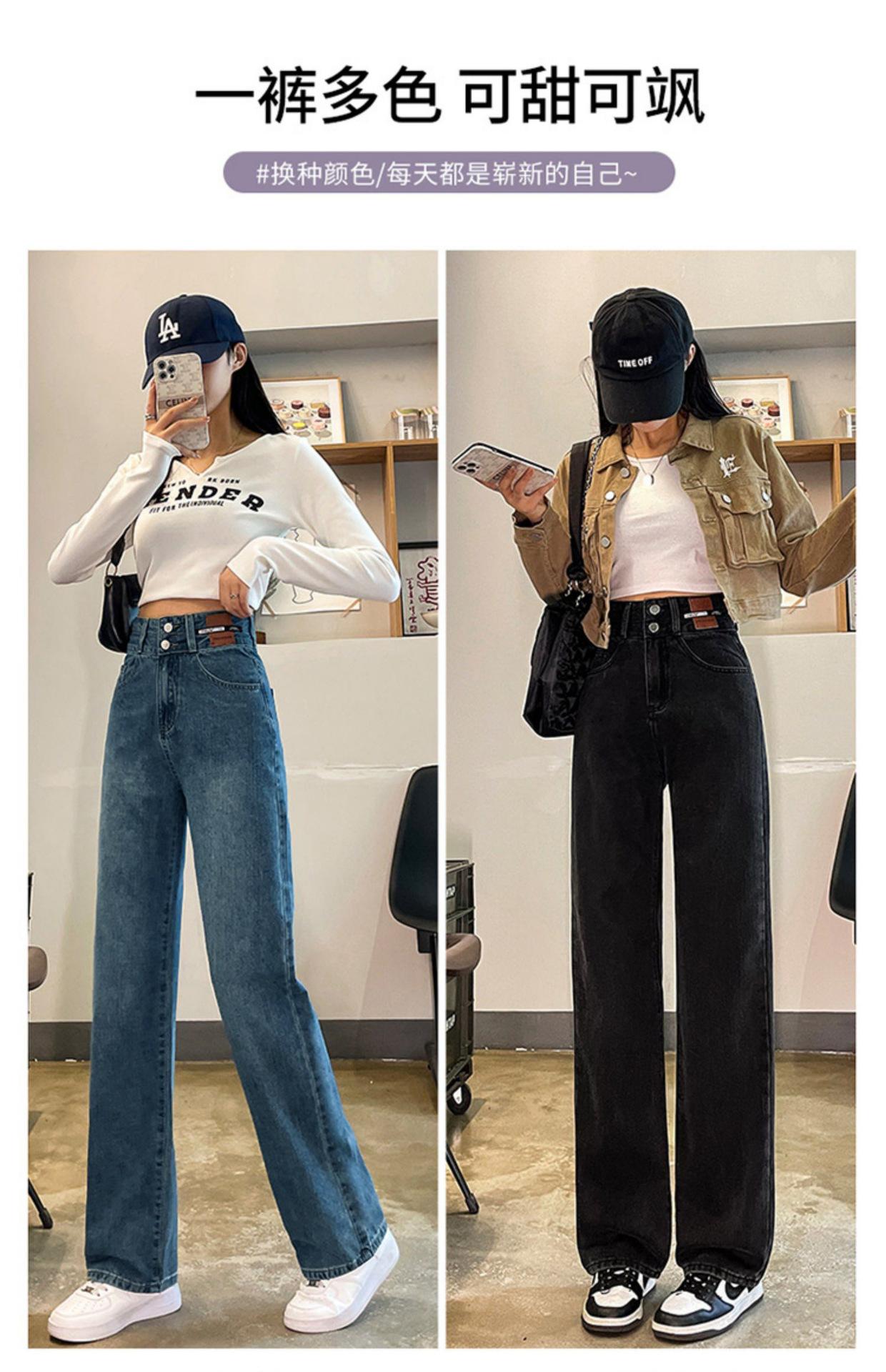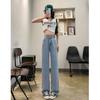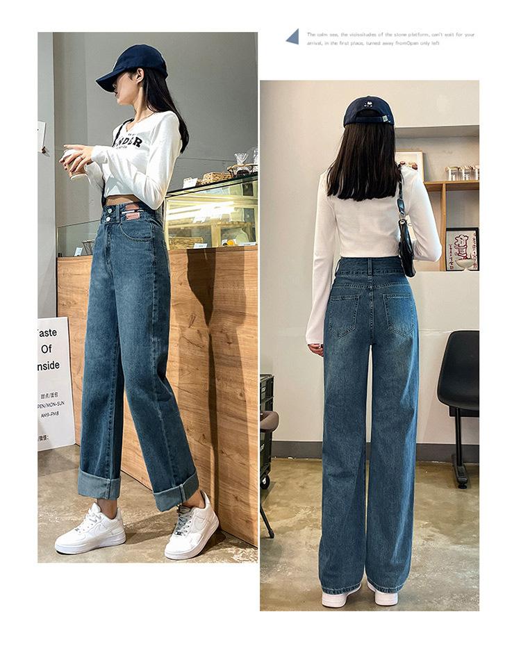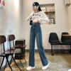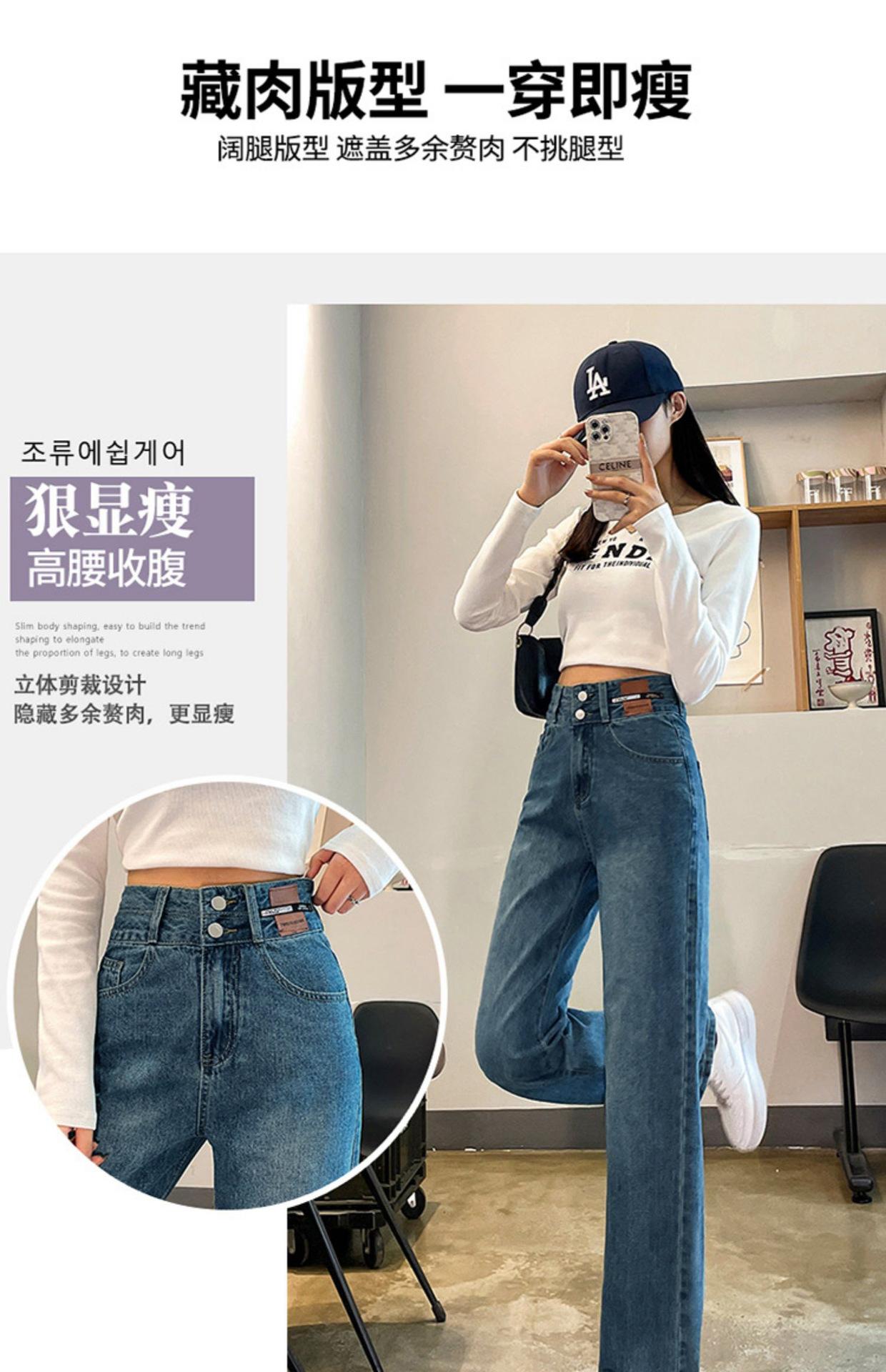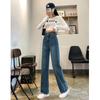 Jeans Retro Azules Ajustados de Cintura Alta para Mujer Distressed Otoño 2025 Adelgazantes Versátiles Pantalones de Pierna Ancha Muestran la Longitud de la Pierna