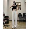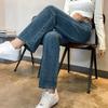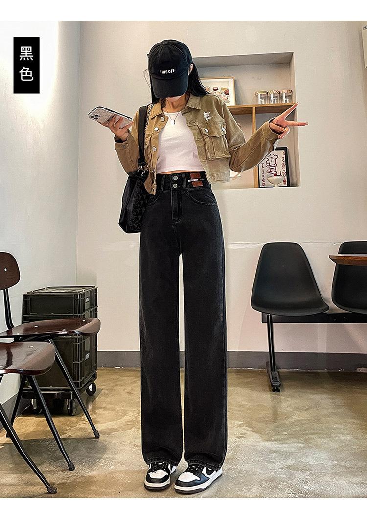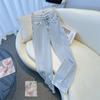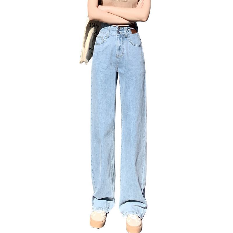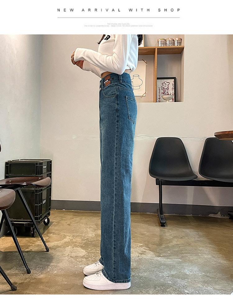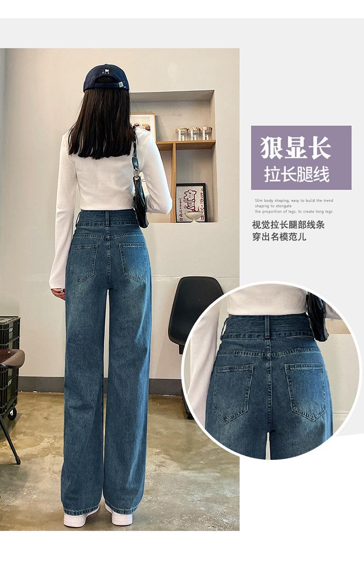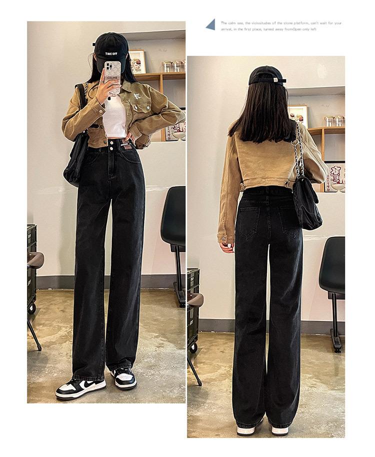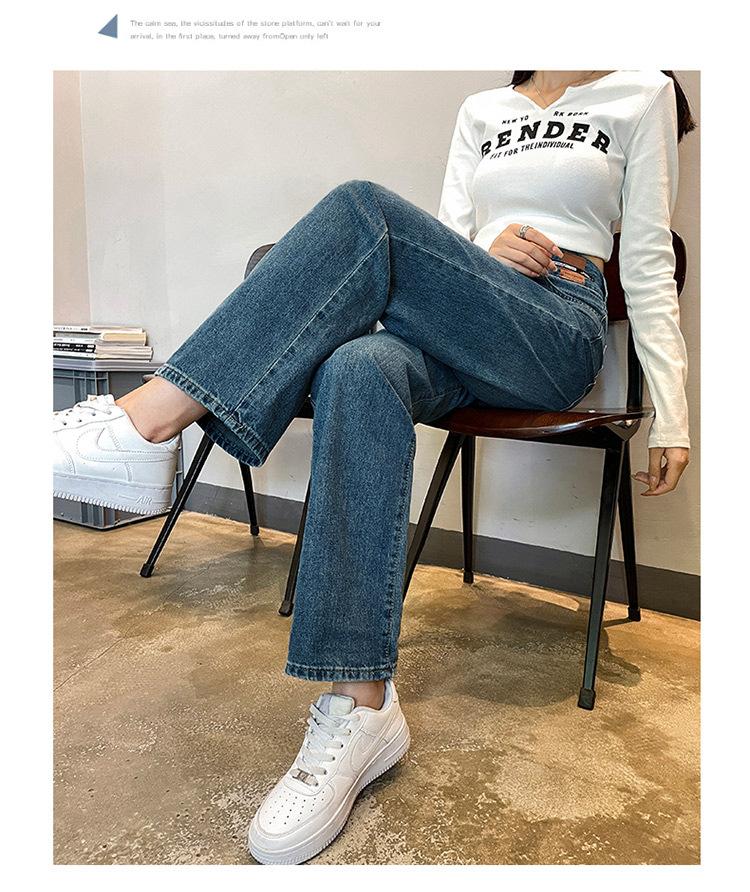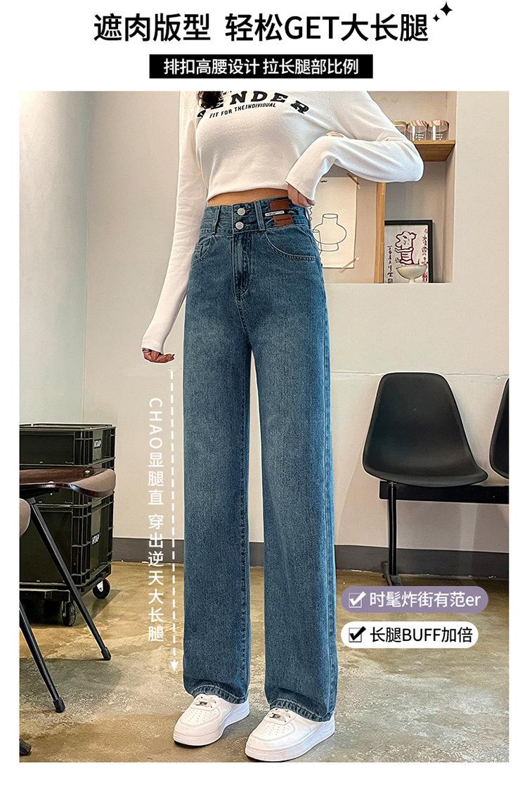 Jeans Retro Azules Ajustados de Cintura Alta para Mujer Distressed Otoño 2025 Adelgazantes Versátiles Pantalones de Pierna Ancha Muestran la Longitud de la Pierna