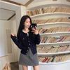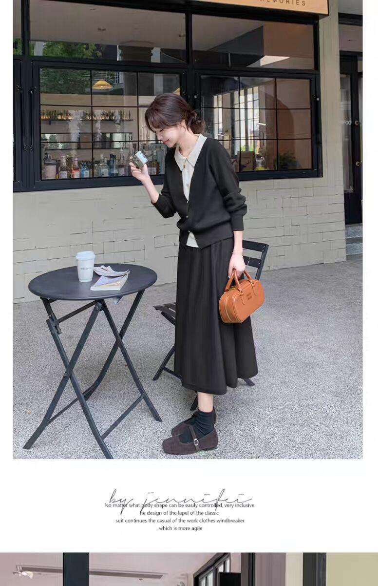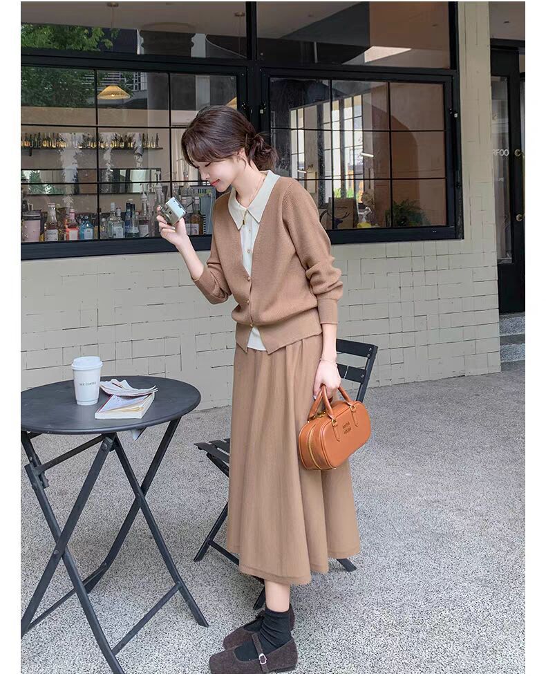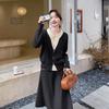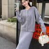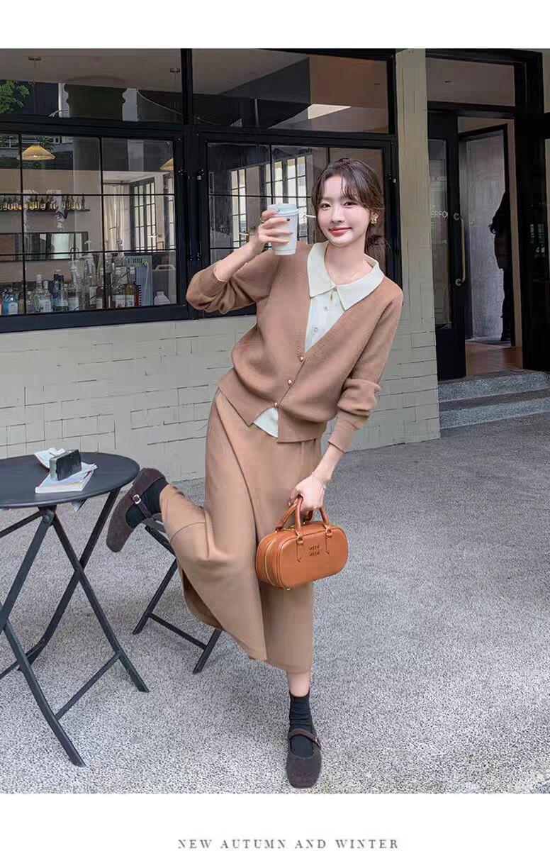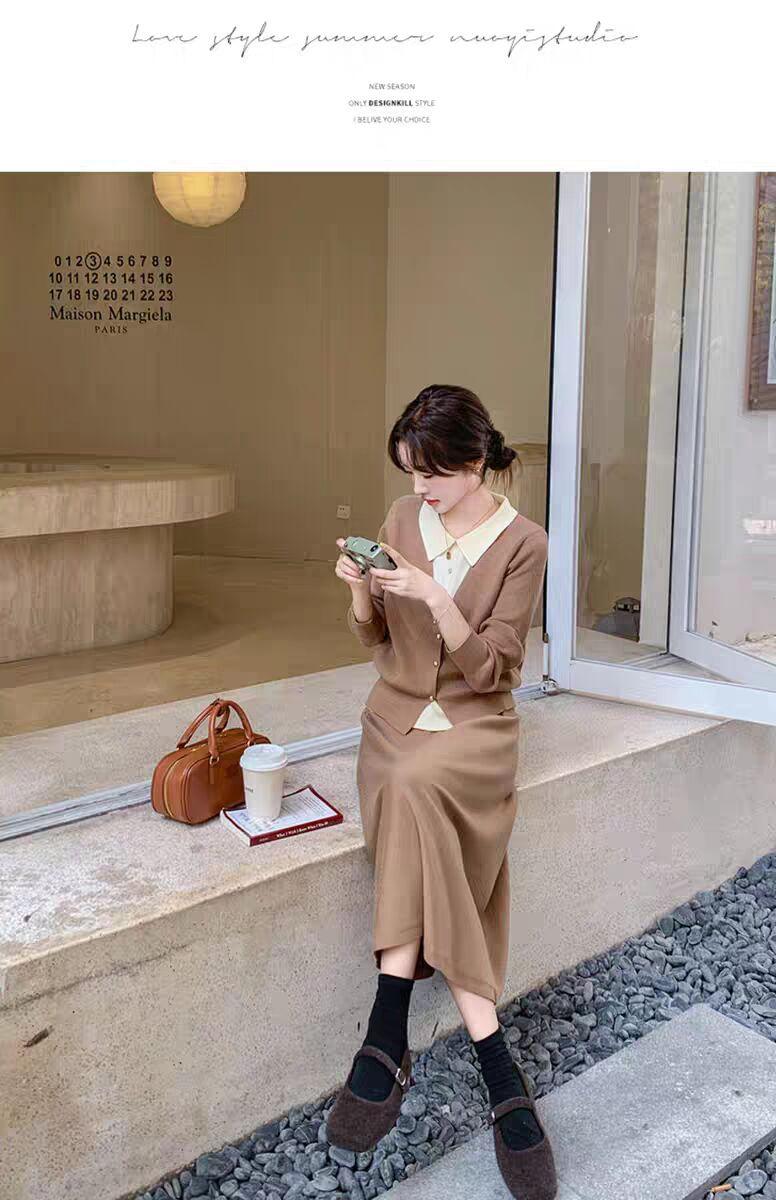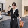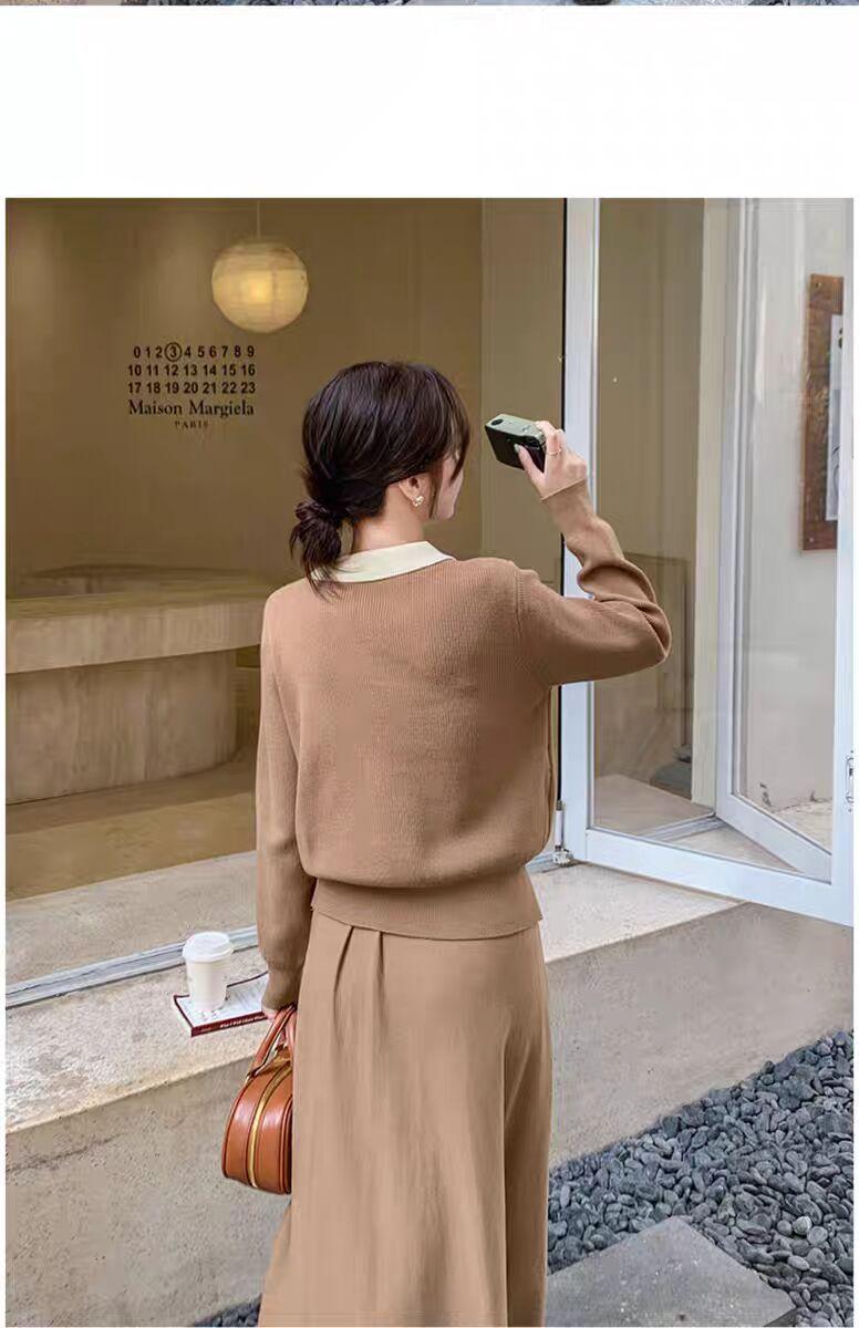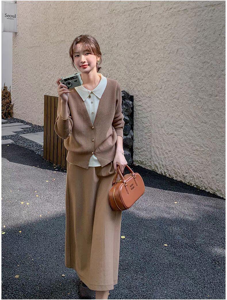 Conjunto de temperamento estilo coreano falda para mujer otoño nuevo costuras suéter de dos piezas falsas falda midi conjunto de dos piezas