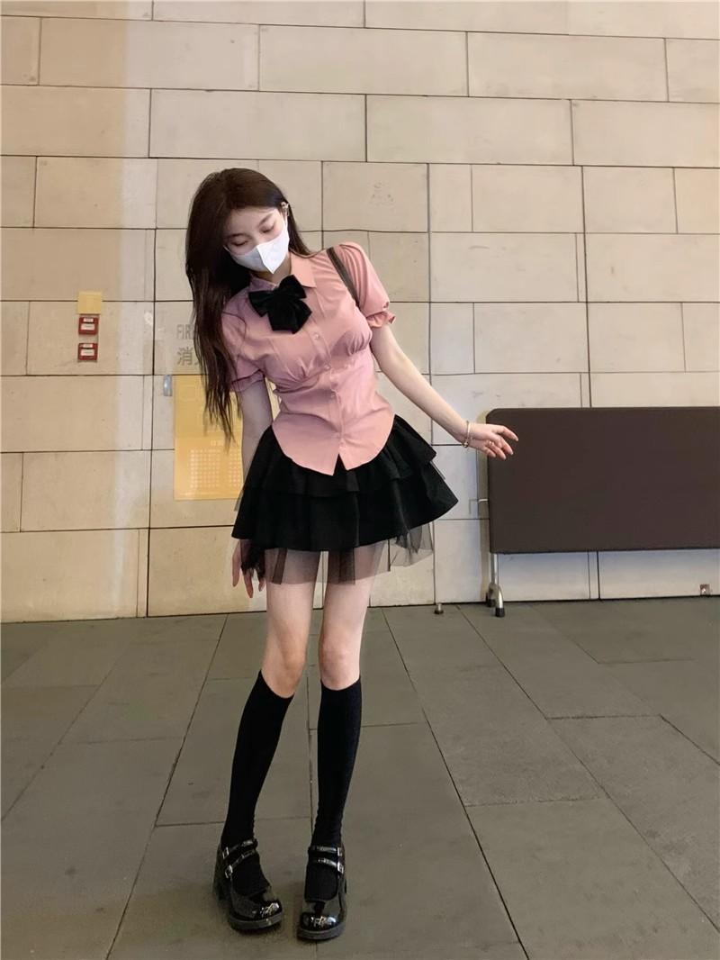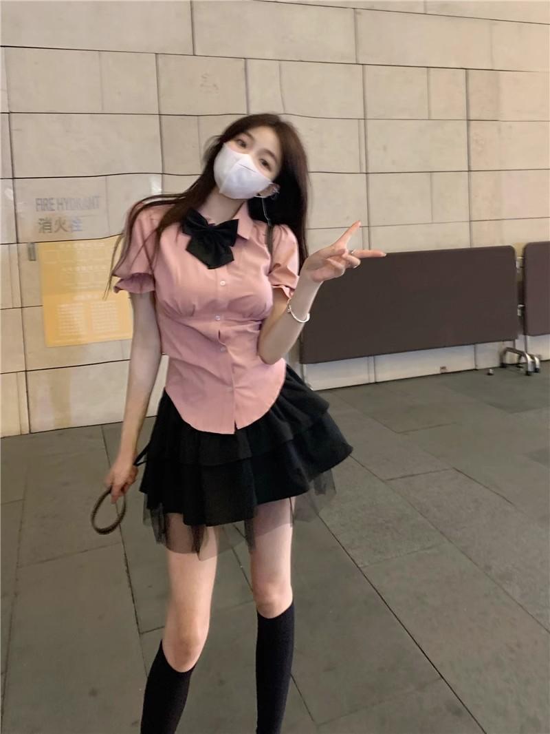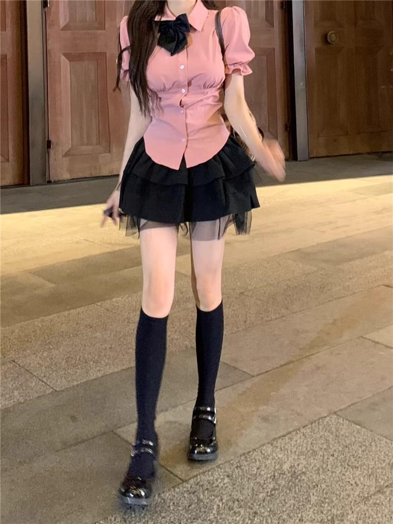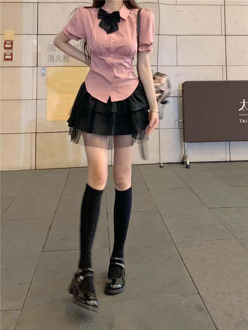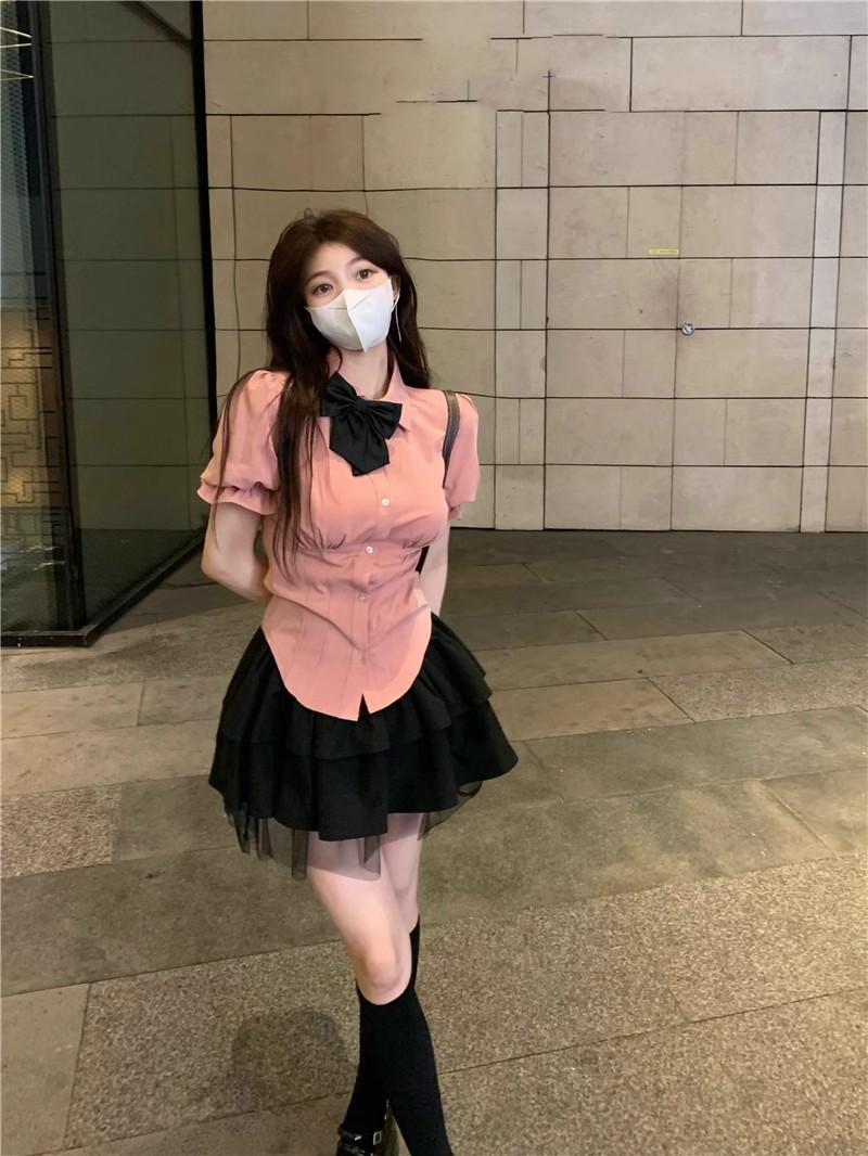 2025 Verano Nuevo Cintura Alta Adelgazante Abullonada Línea A Lazada Ajustada Cadera Falda Mini Pastel para Mujer Negro