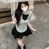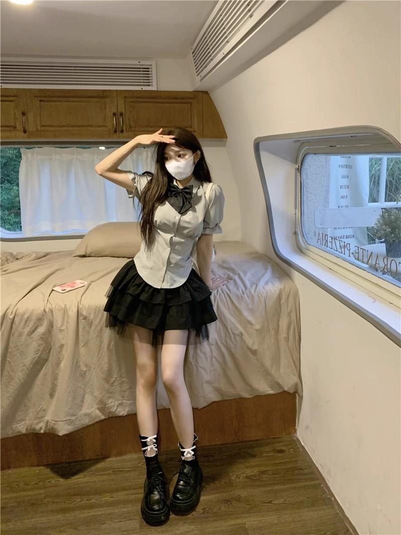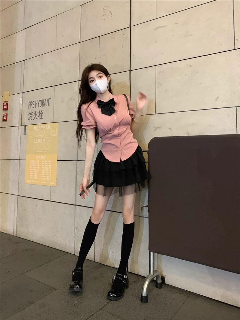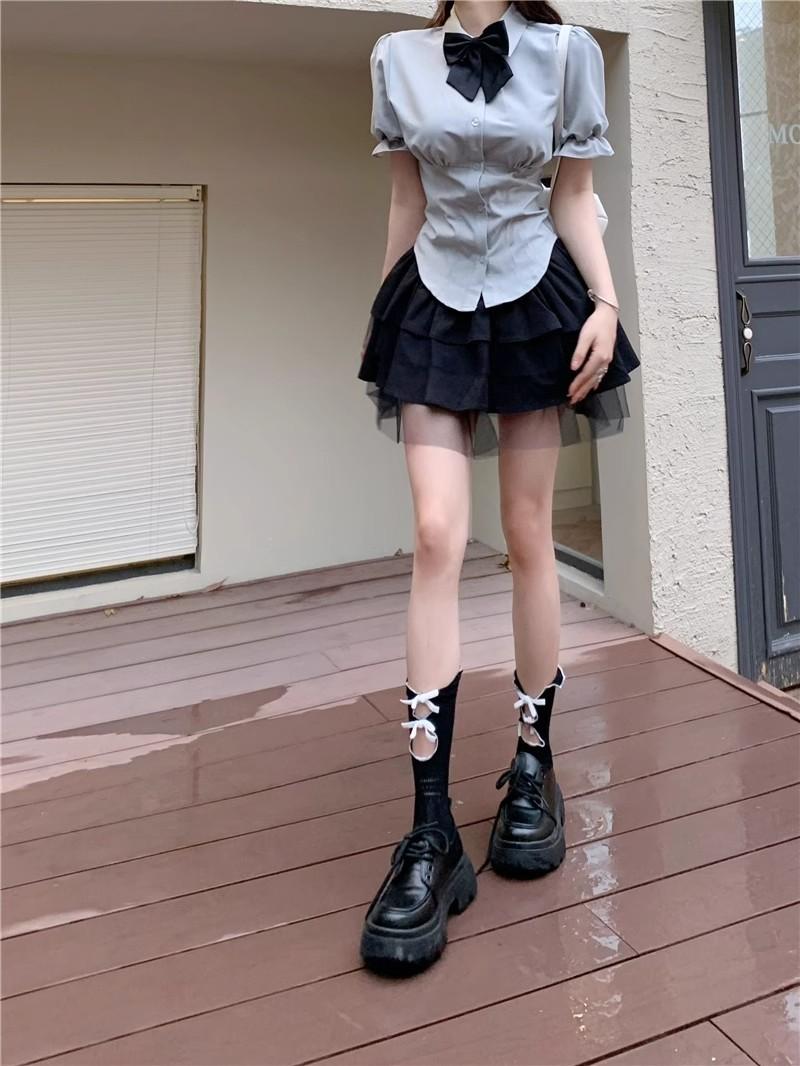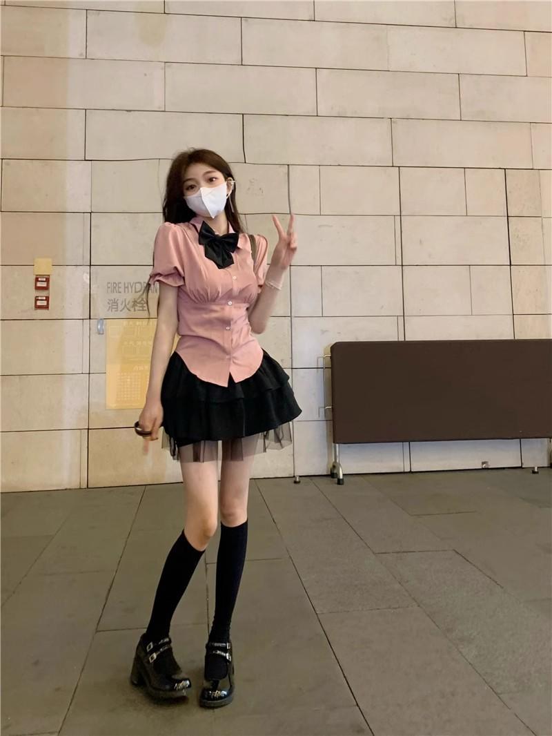 2025 Verano Nuevo Cintura Alta Adelgazante Abullonada Línea A Lazada Ajustada Cadera Falda Mini Pastel para Mujer Negro