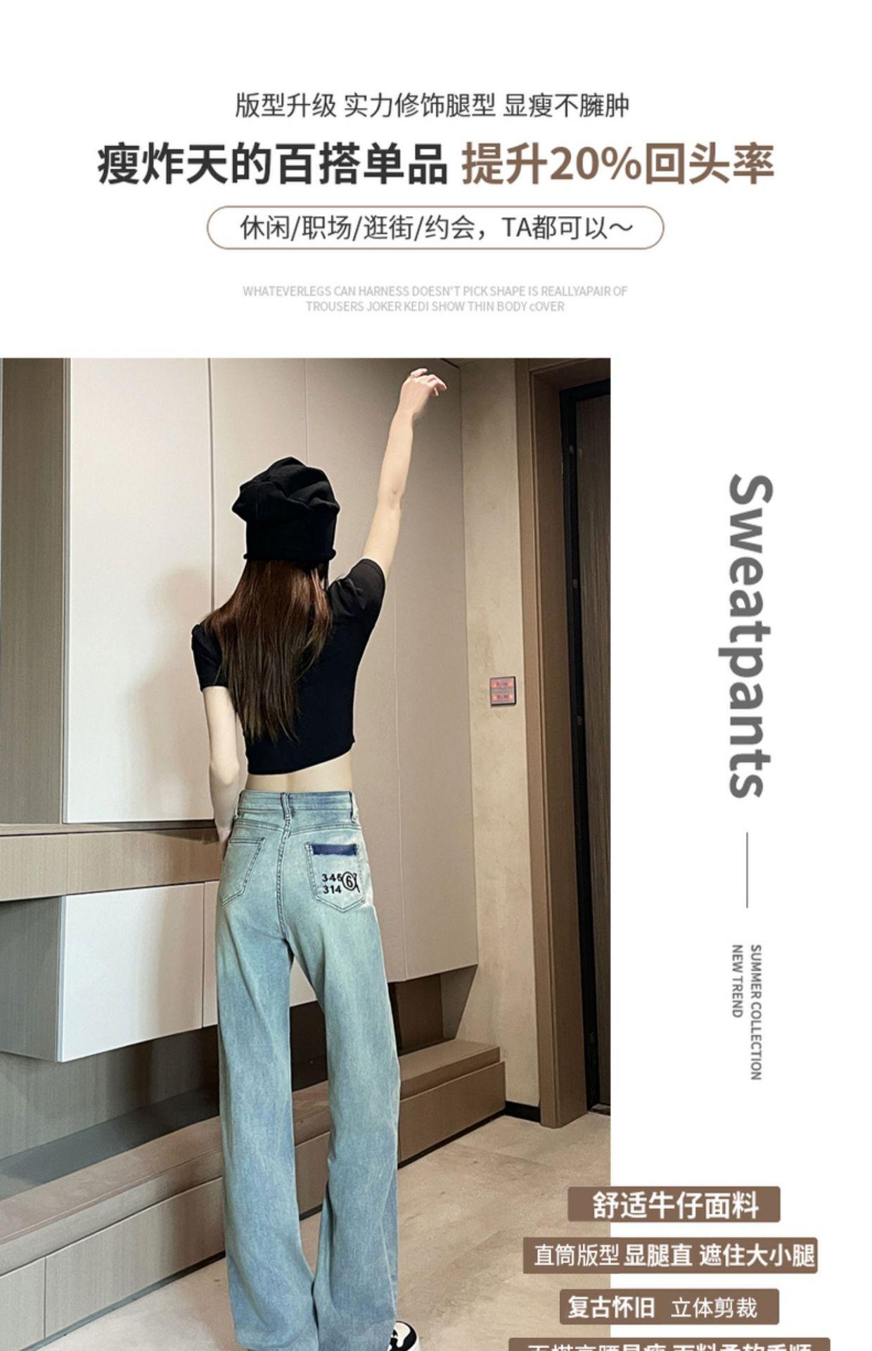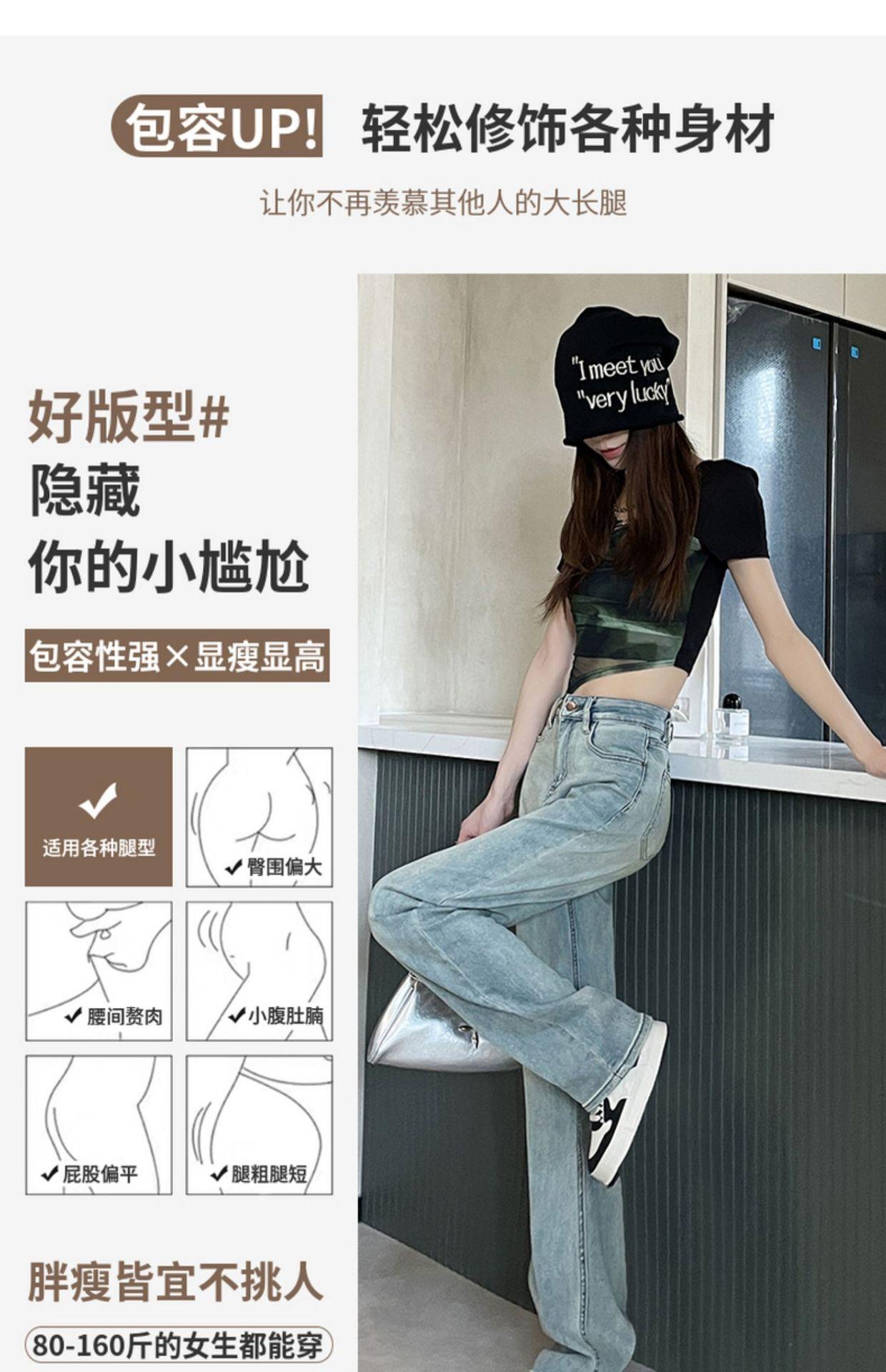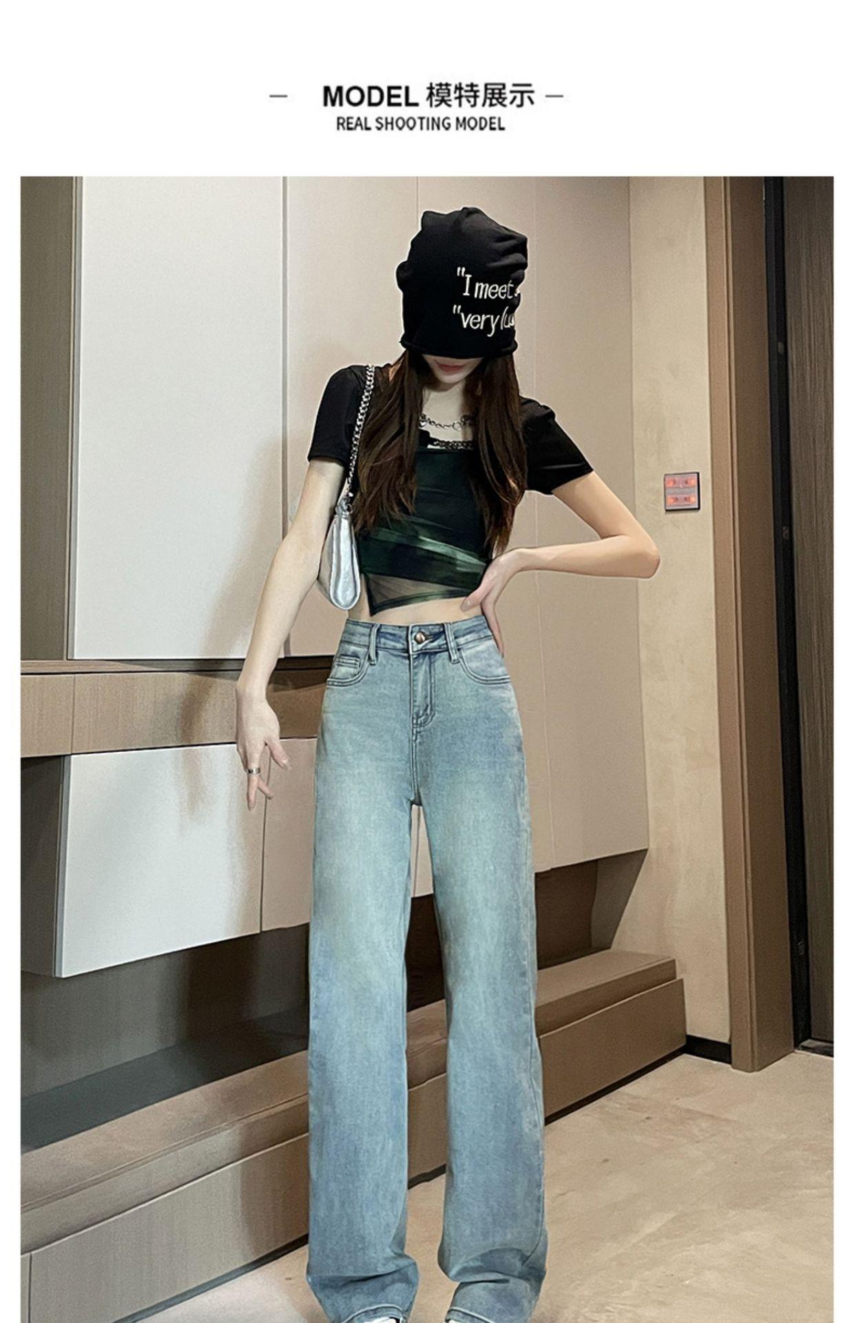 Comercio transfronterizo del Sudeste Asiático Venta al por mayor para mujer Jeans rectos de cintura alta una generación de suministro de fábrica de Guangzhou Xintang