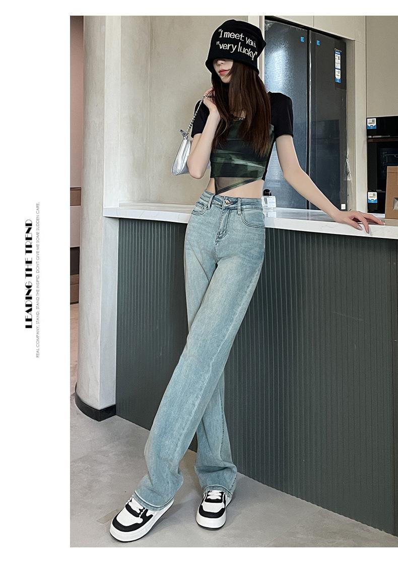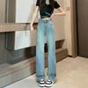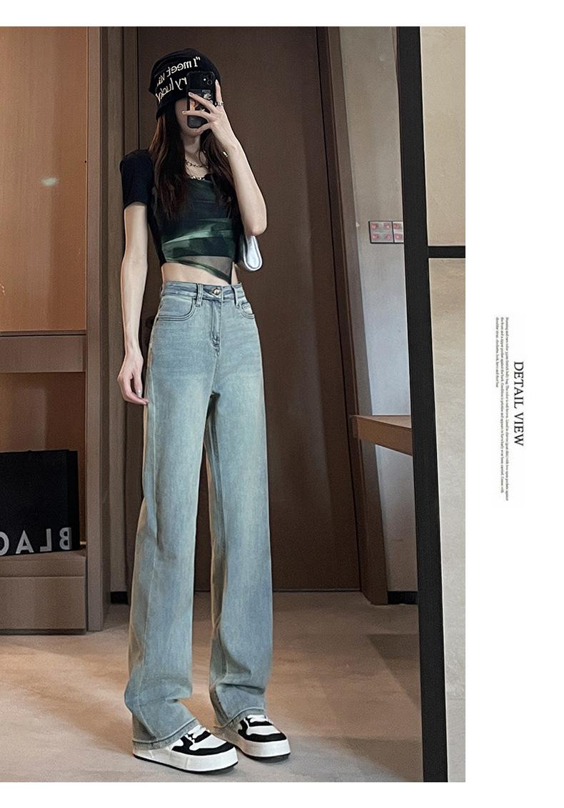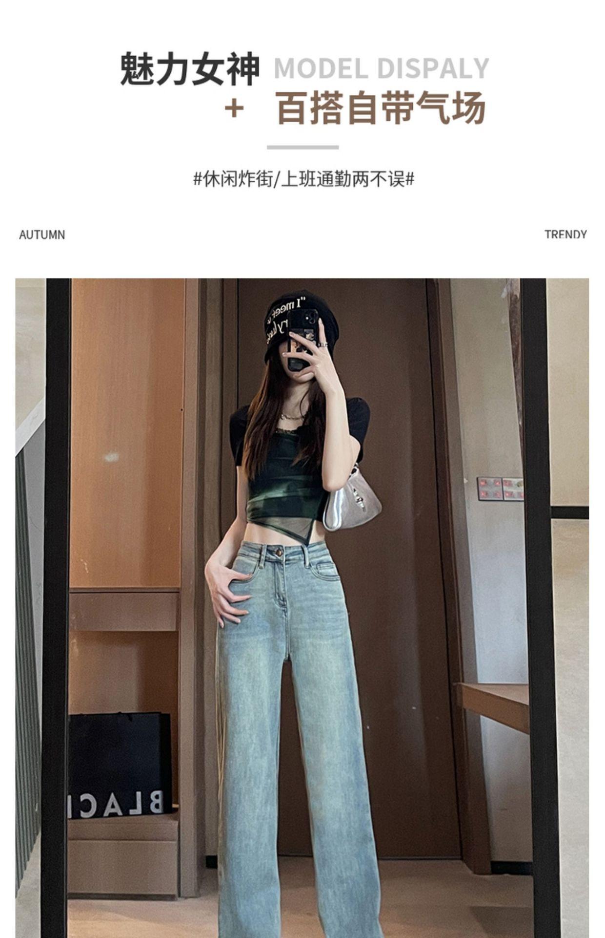 Comercio transfronterizo del Sudeste Asiático Venta al por mayor para mujer Jeans rectos de cintura alta una generación de suministro de fábrica de Guangzhou Xintang