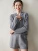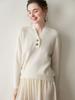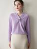 Nueva Camiseta Básica de Punto de Color Sólido con Cuello Cruzado para Mujer Otoño/Invierno Suéter de Cachemira Manga Larga Jersey con Hebilla Top Versátil