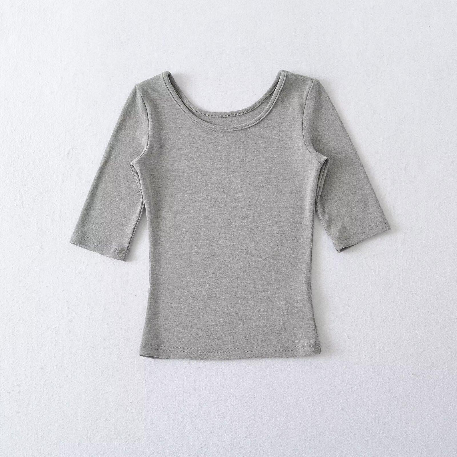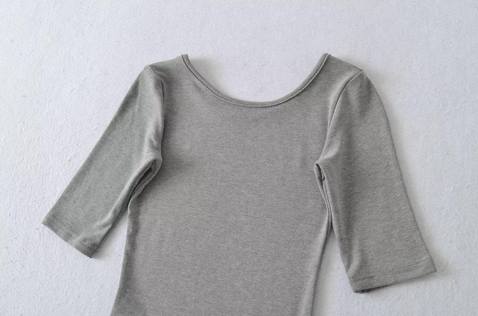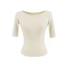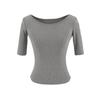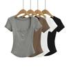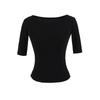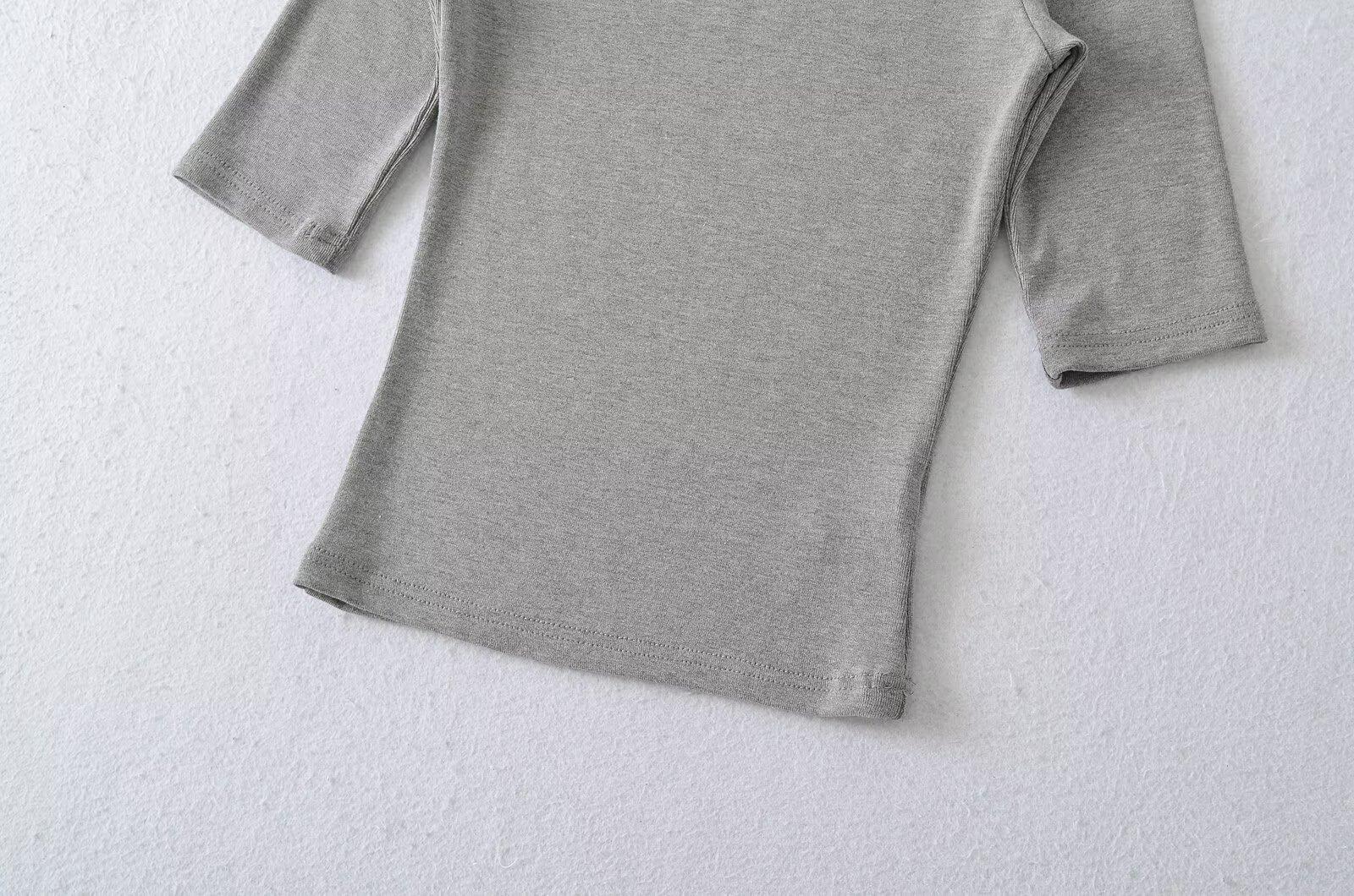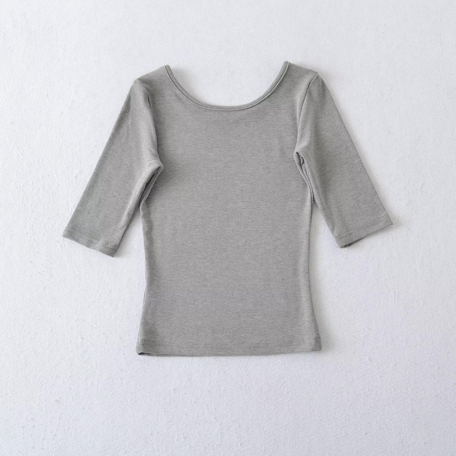 81145-25 Verano Nuevo Estilo Europeo y Americano Sexy Sexy Elástico Ajustado Cuello U Manga Media Top Básico Camiseta