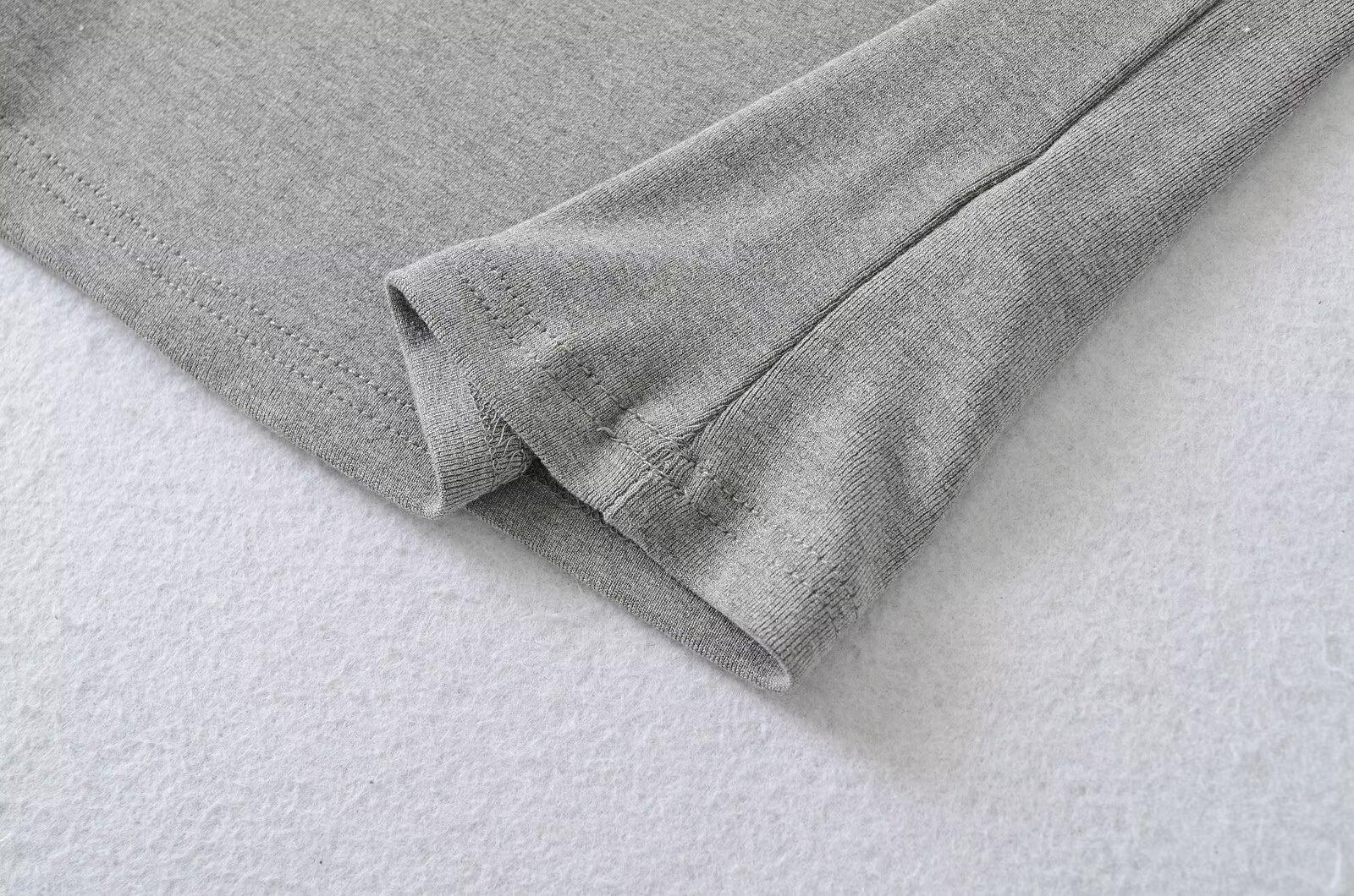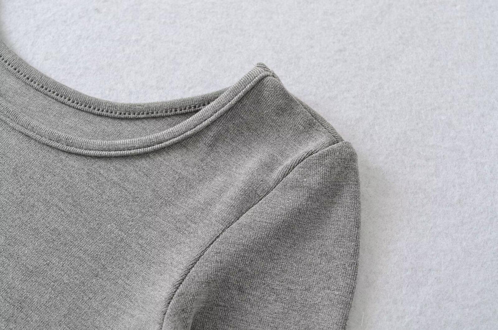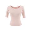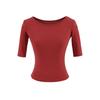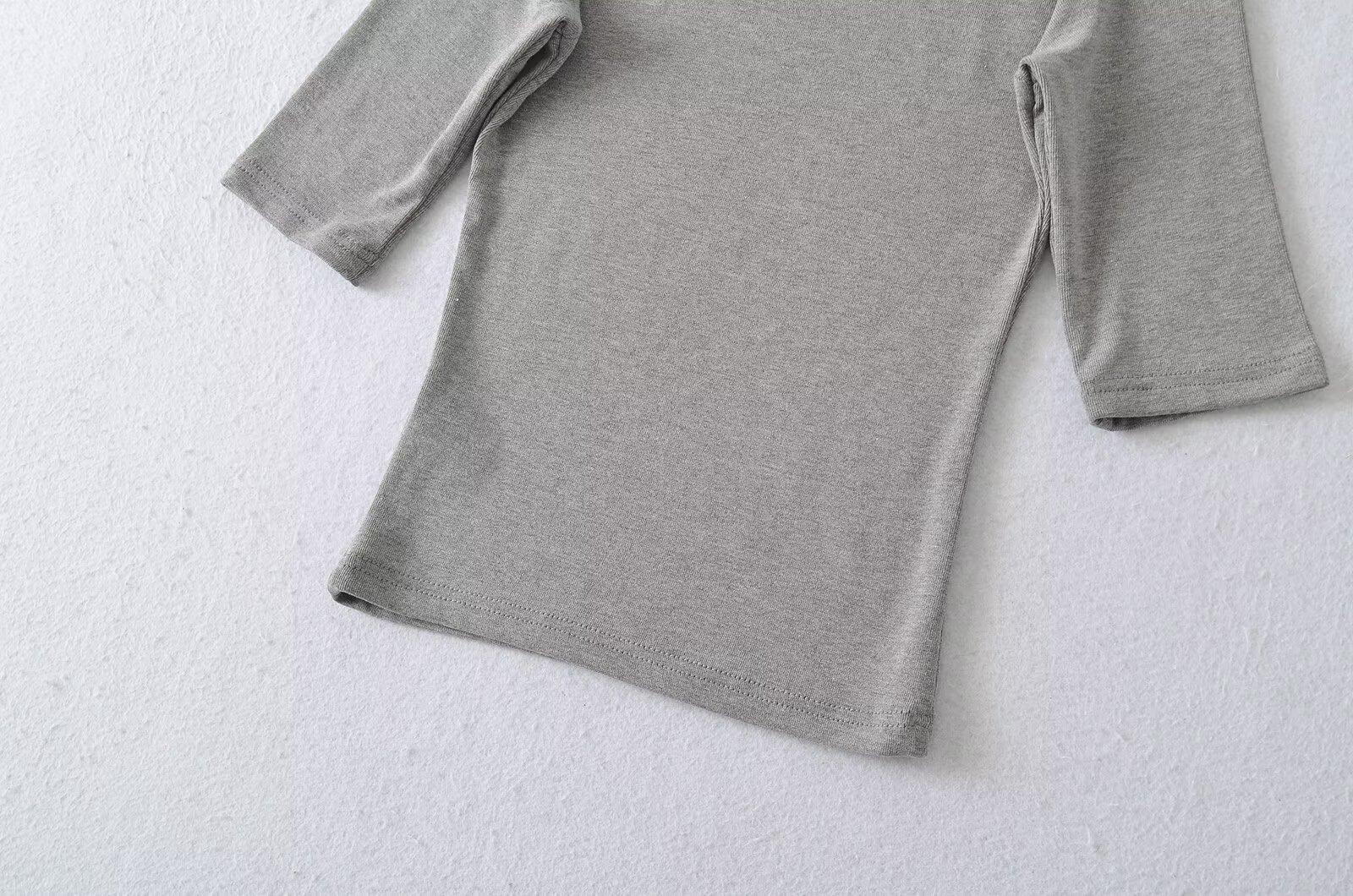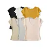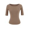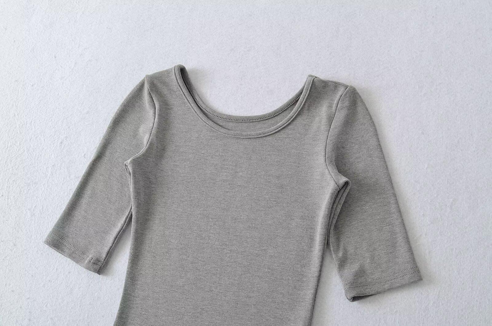 81145-25 Verano Nuevo Estilo Europeo y Americano Sexy Sexy Elástico Ajustado Cuello U Manga Media Top Básico Camiseta