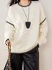 Suéter tejido de cuello redondo para mujer para otoño e invierno Nuevo Amazon transfronterizo Color contrastante Simple Versátil Suéter holgado para mujer