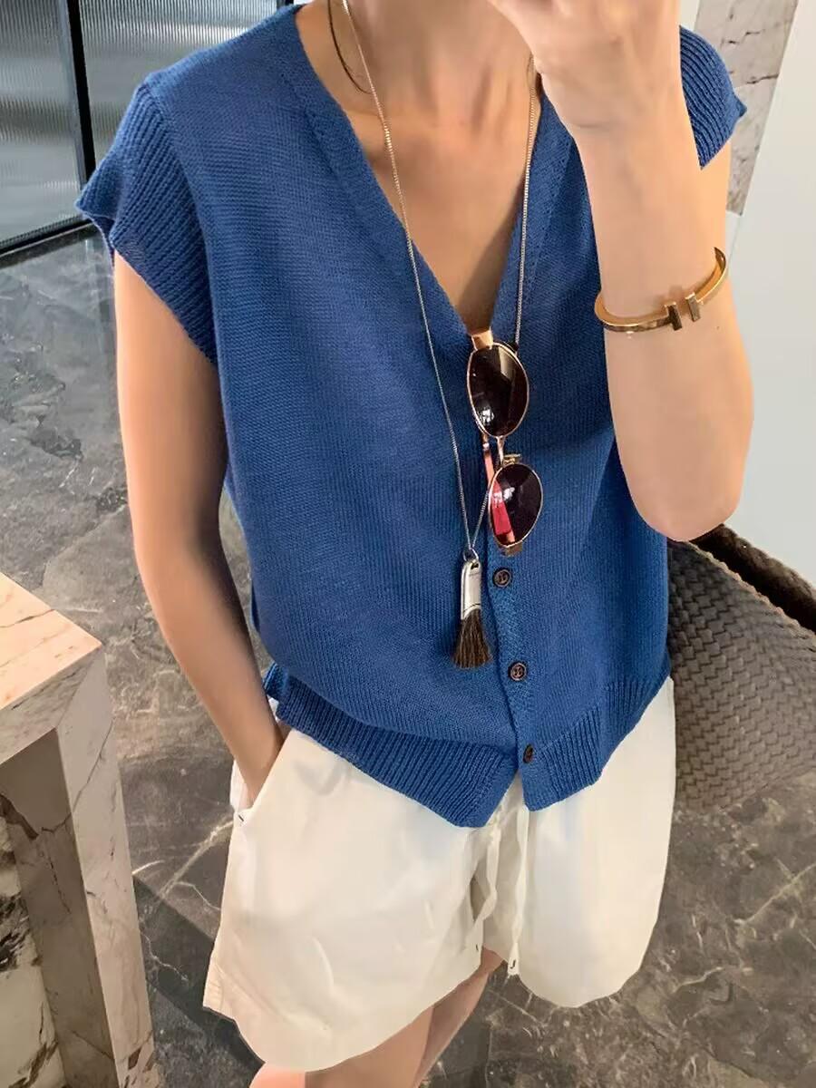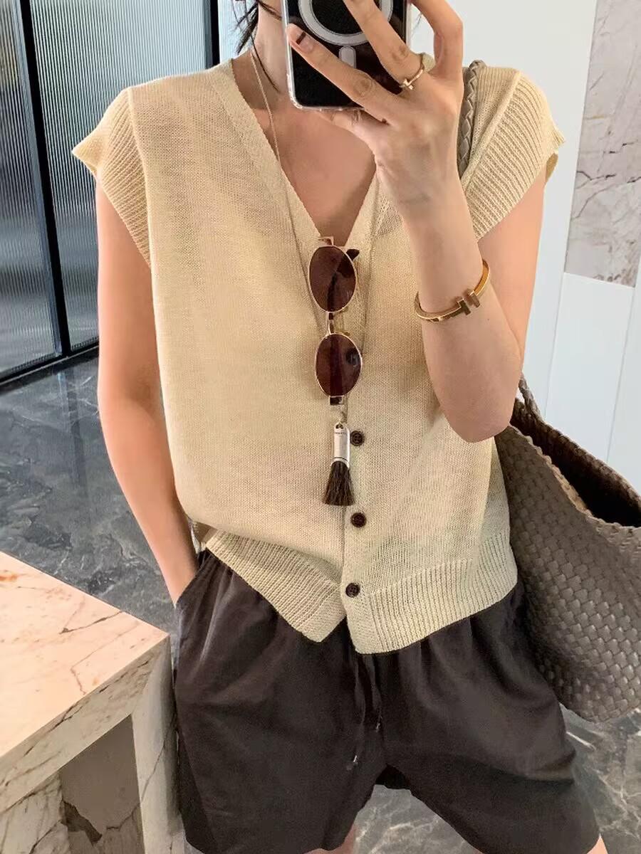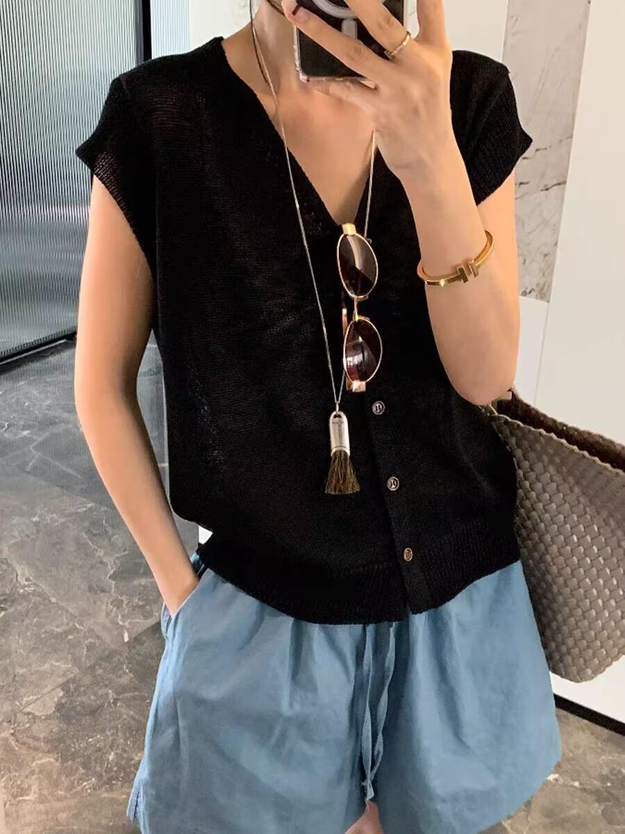 Cárdigan de Punto de Lino y Seda de Hielo de Manga Mariposa para Mujer Estación Europea 2025 Verano Nuevo Productos Europeos Ropa de Mujer Moda Camisa Pequeña Tendencia