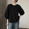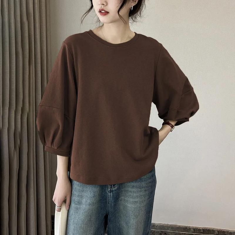 Camiseta Retro Literaria Estilo Hong Kong Manga Farol Casual Manga Tres Cuartos Top para Mujer 2025 Primavera y Verano Nuevo Estilo Versátil