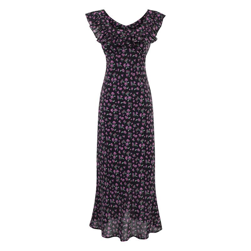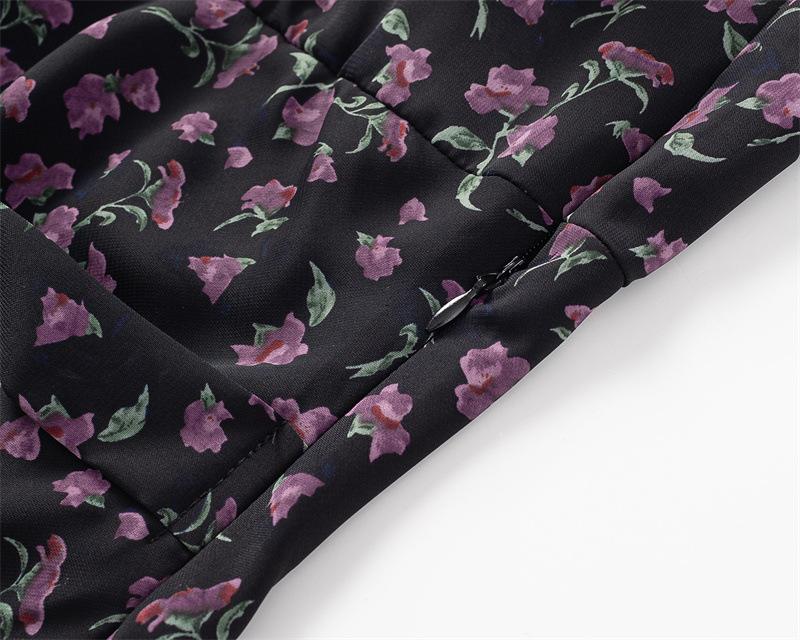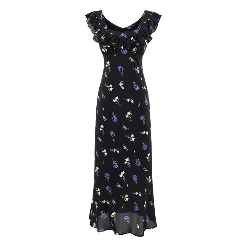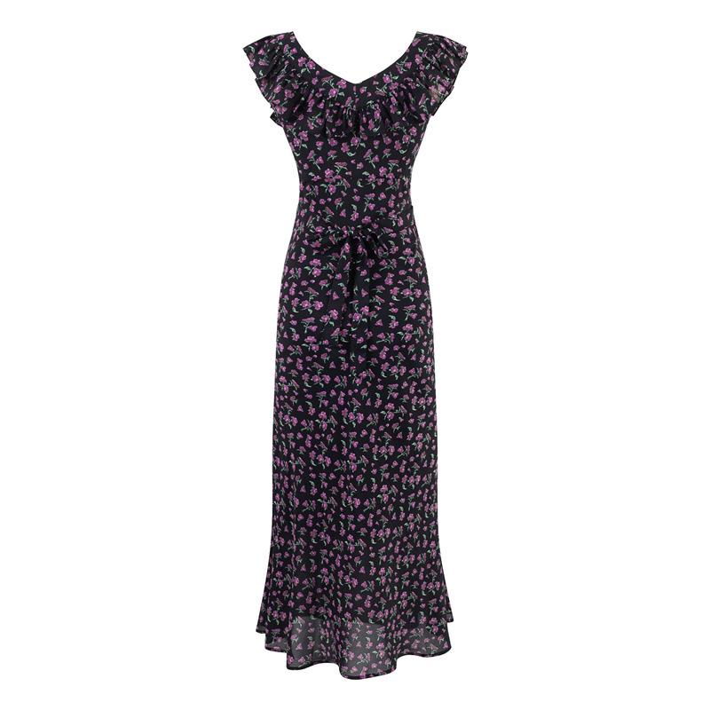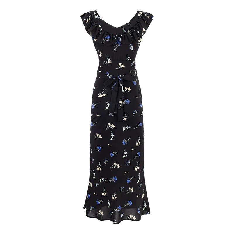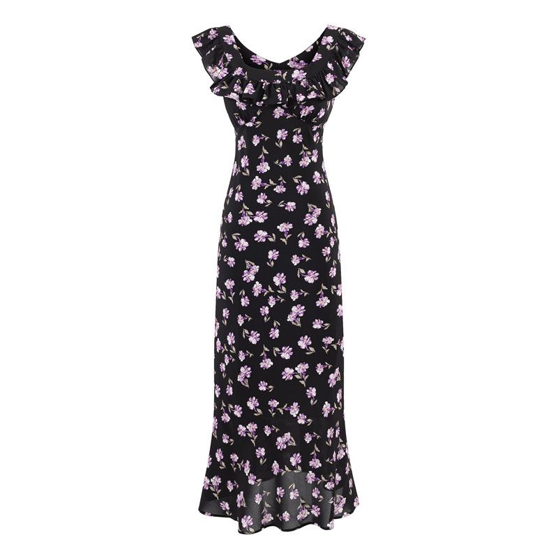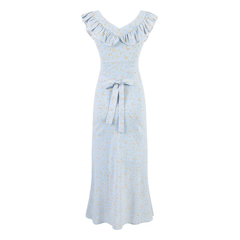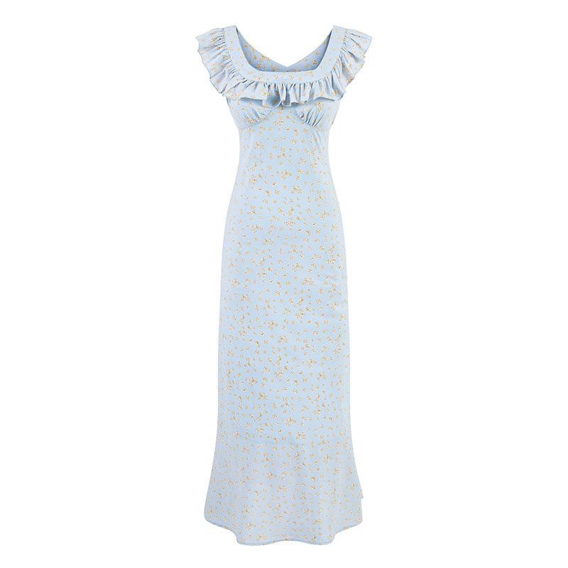 Vestido Floral Estilo Pausa para el Té Francés Verano Nuevo para Mujer Cintura Fruncida de Gama Alta Vestido Largo Slim de Vacaciones