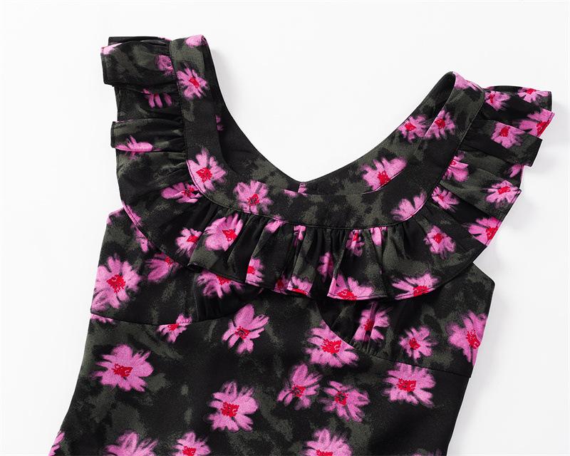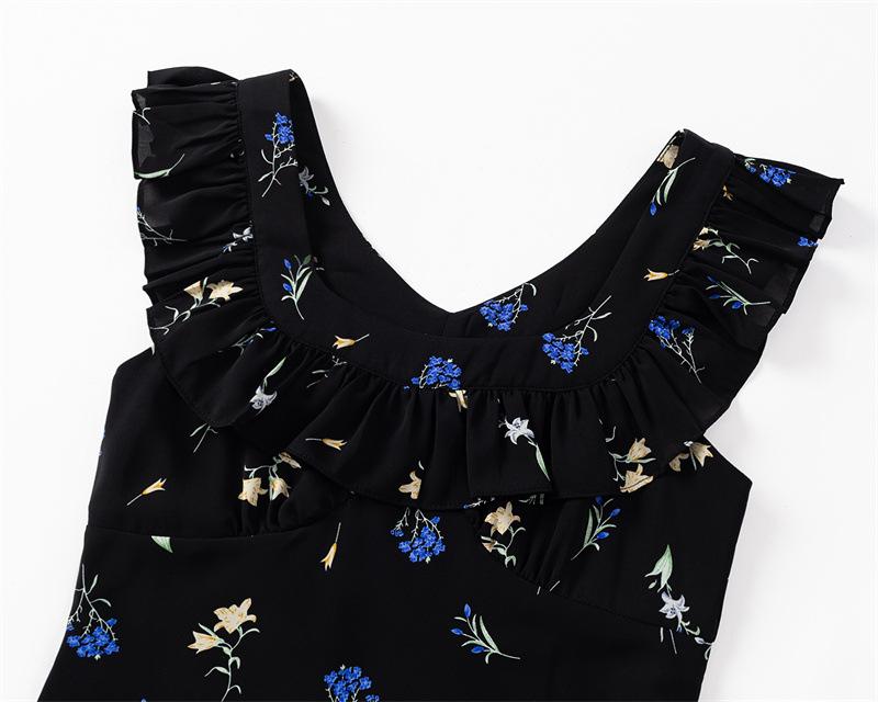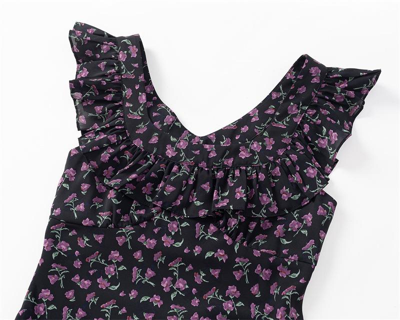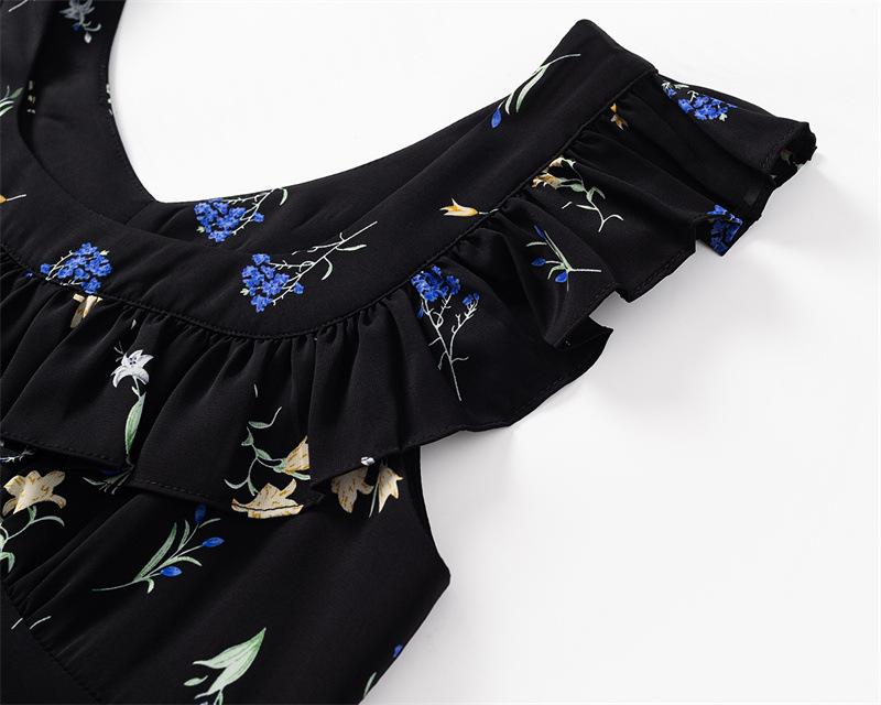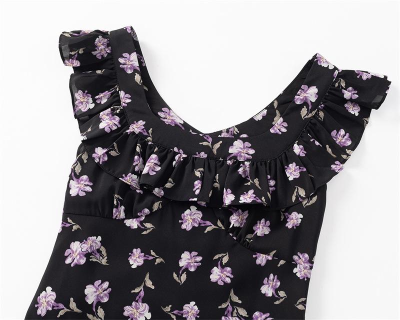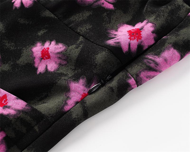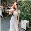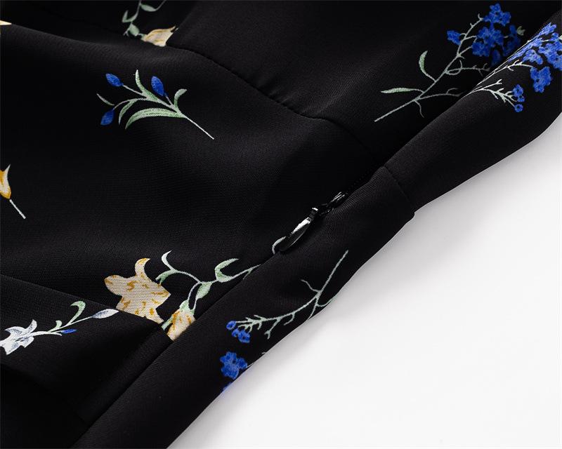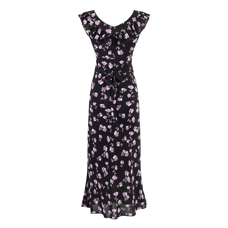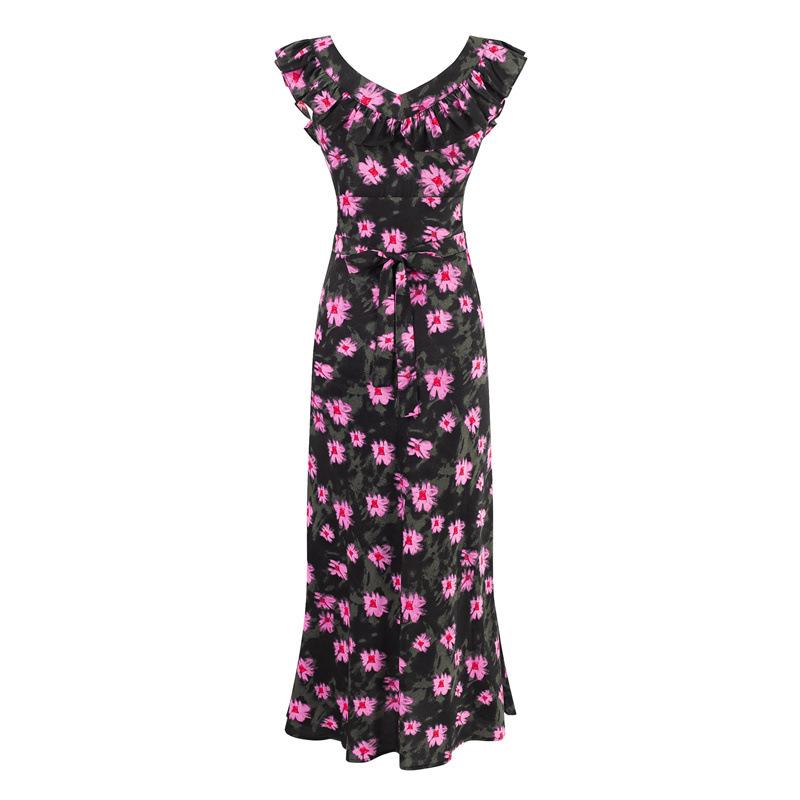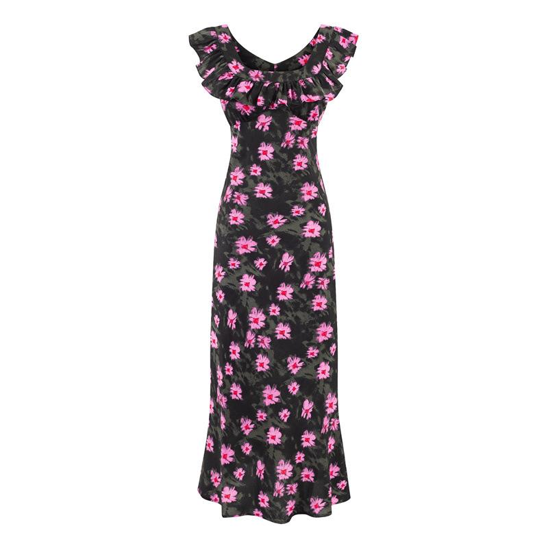 Vestido Floral Estilo Pausa para el Té Francés Verano Nuevo para Mujer Cintura Fruncida de Gama Alta Vestido Largo Slim de Vacaciones